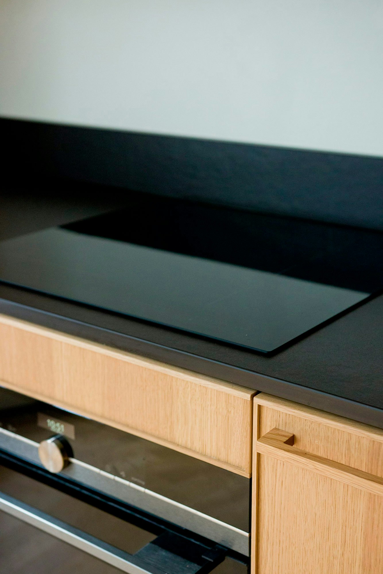 This starting point made it easier for them to limit the number of possible materials, which seemed endless at first. The matte lacquered cabinet doors and marble worktop in the family's previous home were immediately ruled out, as they didn't want the kitchen in their new home to have any materials that were delicate or difficult to maintain.
