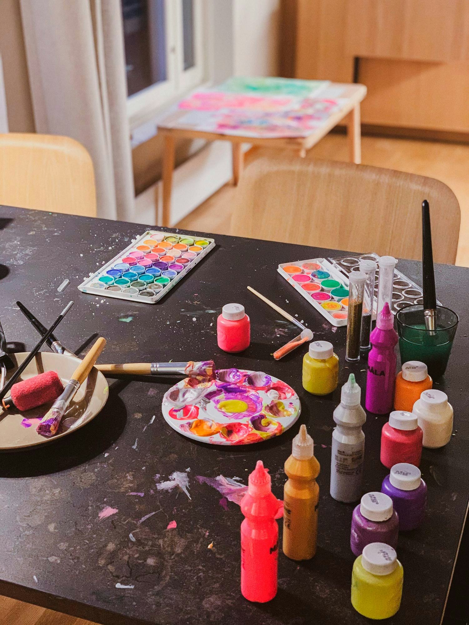 “Our dining table has a Dekton Kelya worktop. Everyday dining and arts and crafts are now more carefree than ever. The worktop's beautiful design is on display in all its glory. Most food stains can be removed with water alone, or, if necessary, a mild all-purpose cleaner. The stains left by our children's water-soluble paints are easy to clean, and, thanks to the material's impermeable surface, even acrylic paint stains and lacquer stains can be removed effortlessly. 16JUIN provided a perfect black metal frame for the table. The stand-alone worktop wasn't lifted onto the frame until both were in our dining room. Combining a worktop with a separate table frame was a great alternative to purchasing a ready assembled table, allowing us to have exactly the kind of table we wanted.”