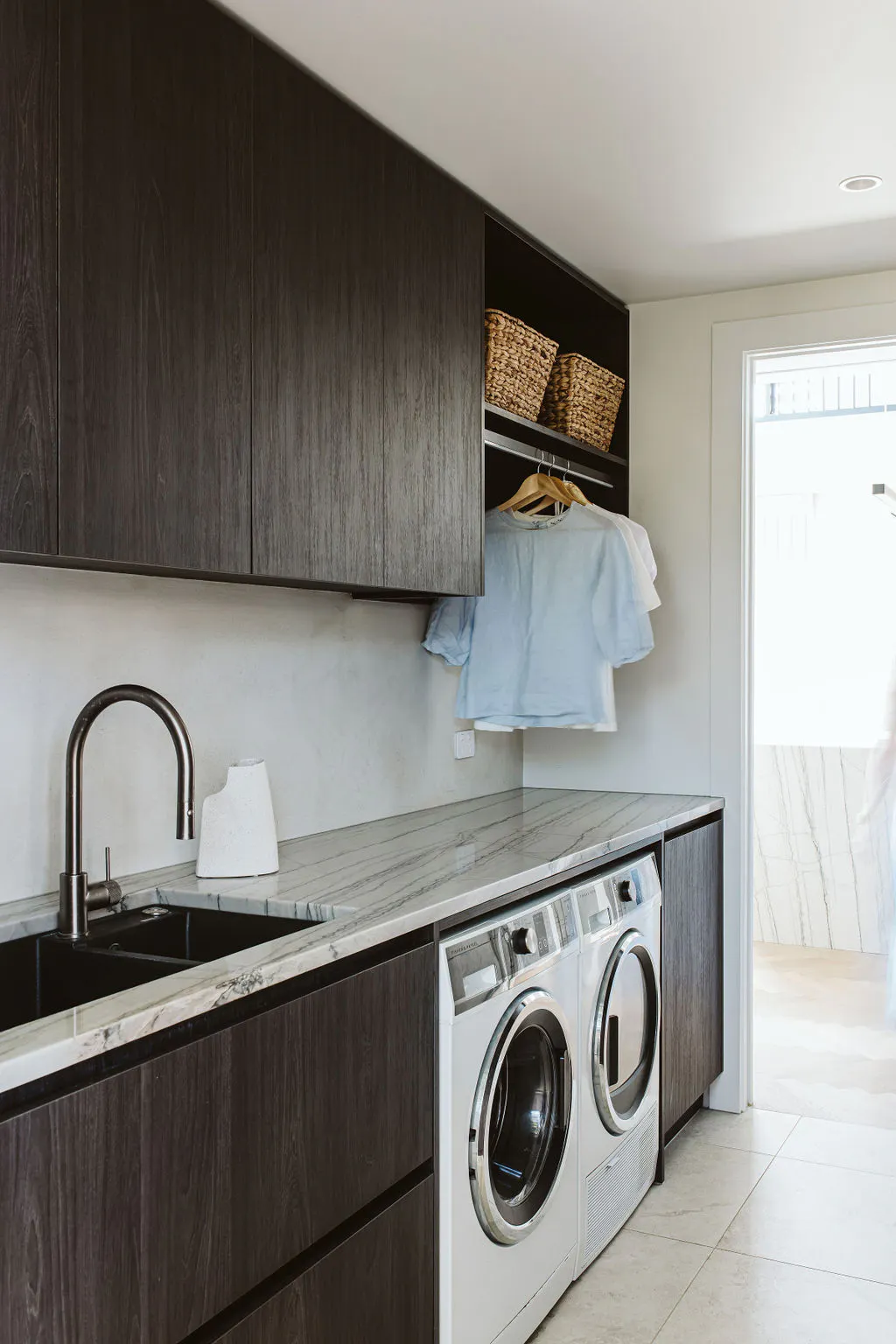 Last but not least, in addition to the kitchen, Sensa White Macaubas was used for the master bathroom, the vanity and the laundry room of this couple with children, bringing a sense of uniformity and distinction to the decoration of this beautiful home in New Zealand.