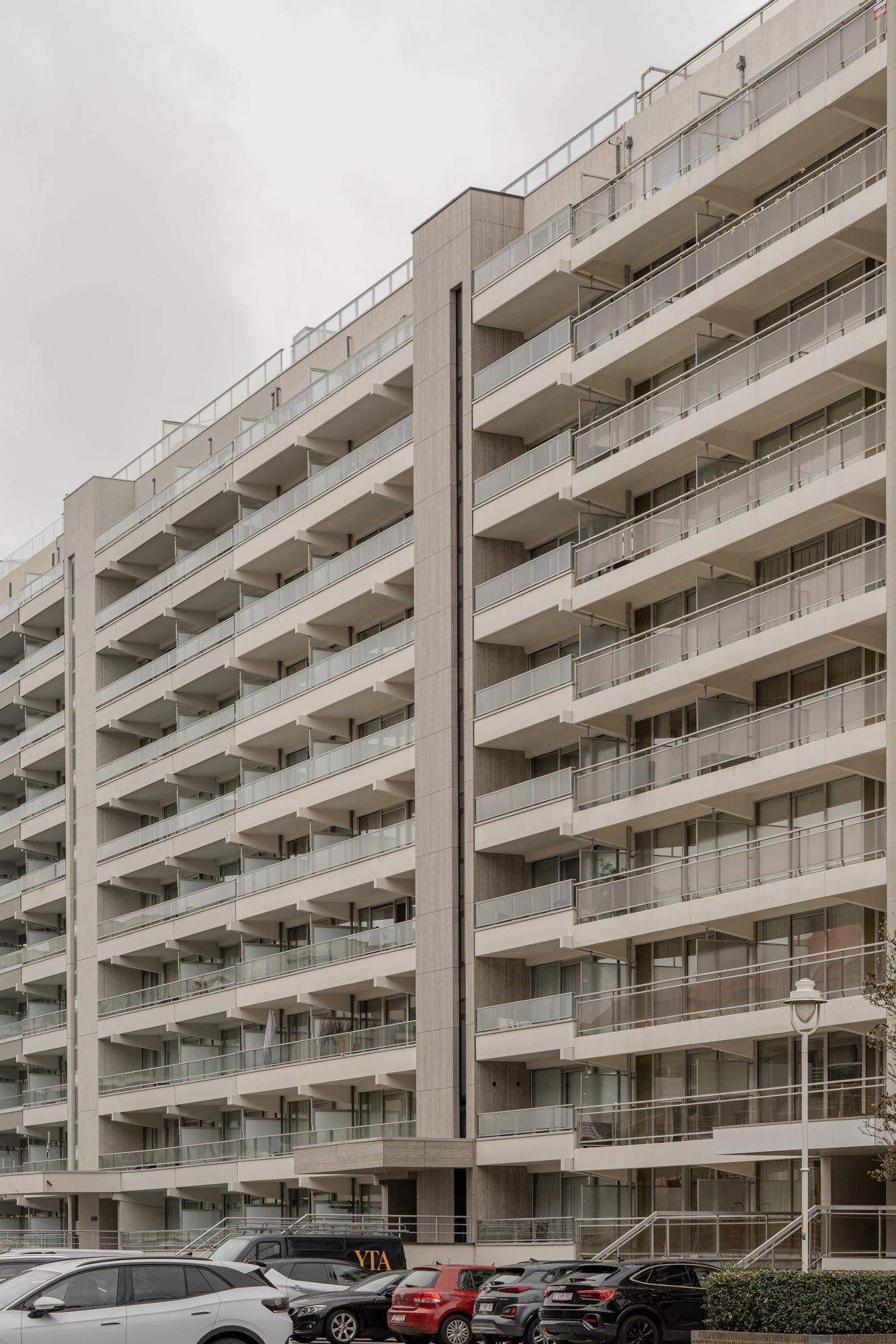 Living by the sea has a certain romantic charm but also, on a material level, requires buildings with high resistance to the climate and coastal environment. In Nieuwpoort, one of the largest ports in the North Sea, the residential project Meeuwenbank II, designed by architect Ignace Deconinck, offers a refined architectural response to this setting. “The intervention on the façade focused on enhancing both durability and visual coherence, ensuring the building can withstand the demanding conditions of the maritime climate without compromising on a contemporary and elegant identity,” he explains.