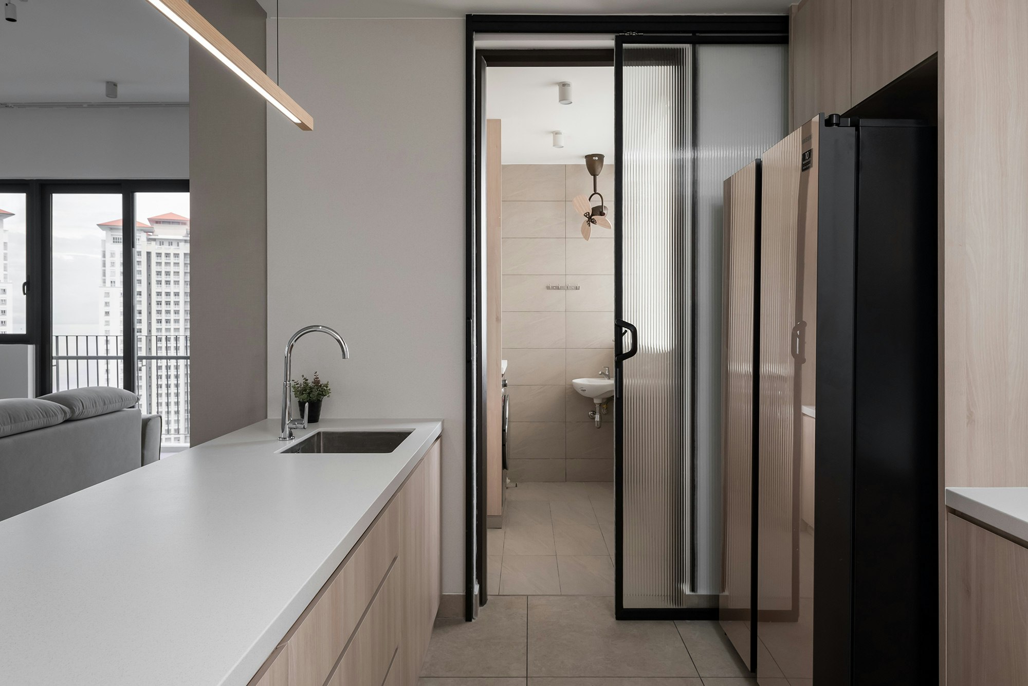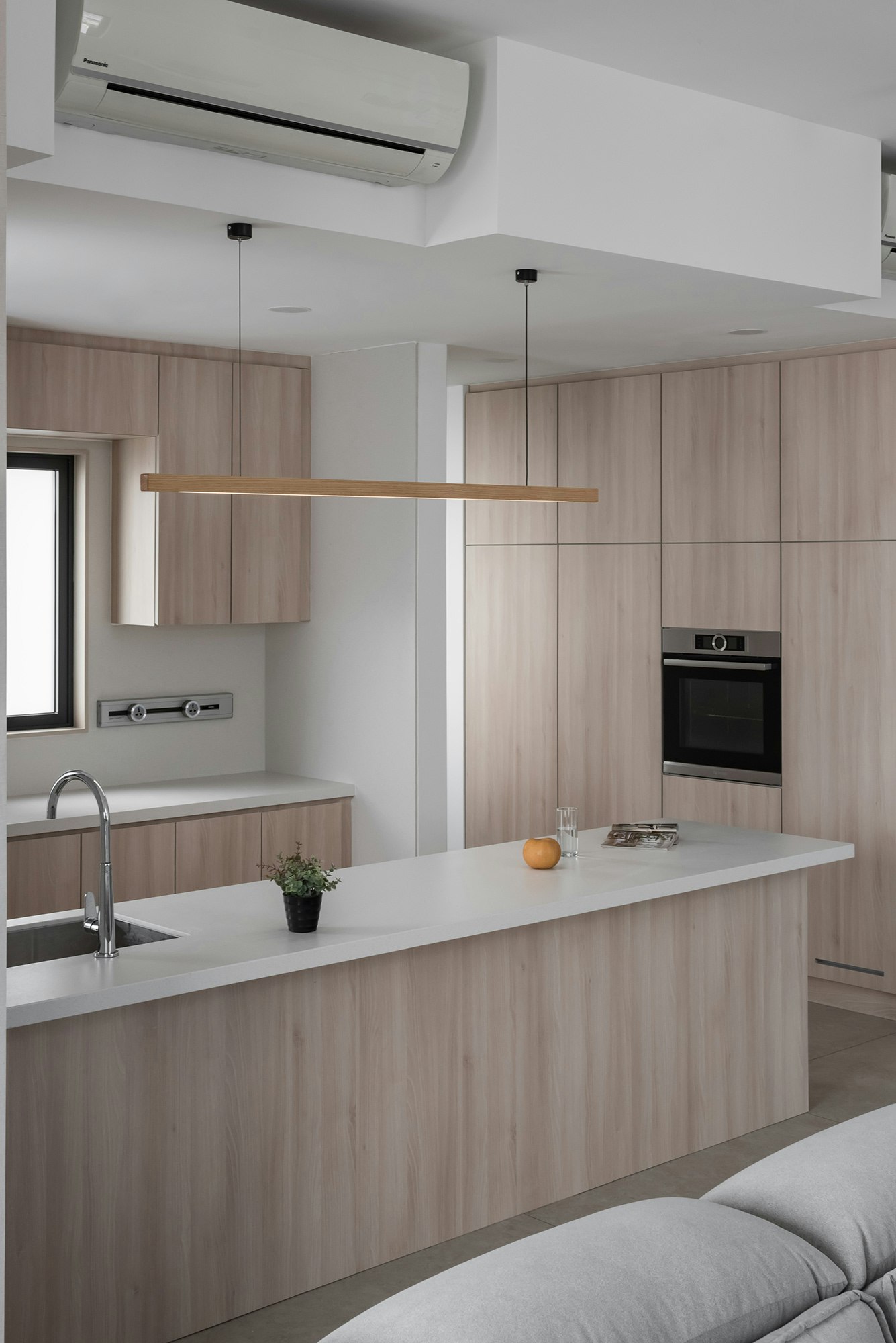 A seaside flat with a relaxed atmosphere, which enhances the brightness thanks to the off-white tone of Dekton Nayla