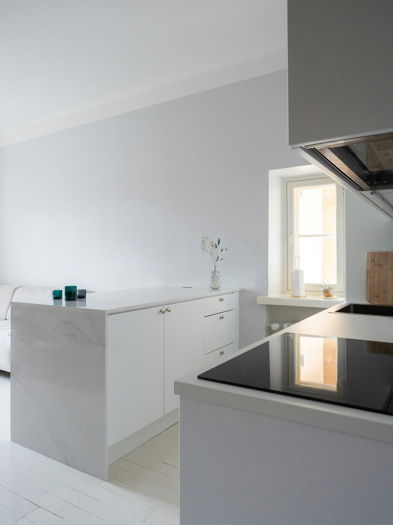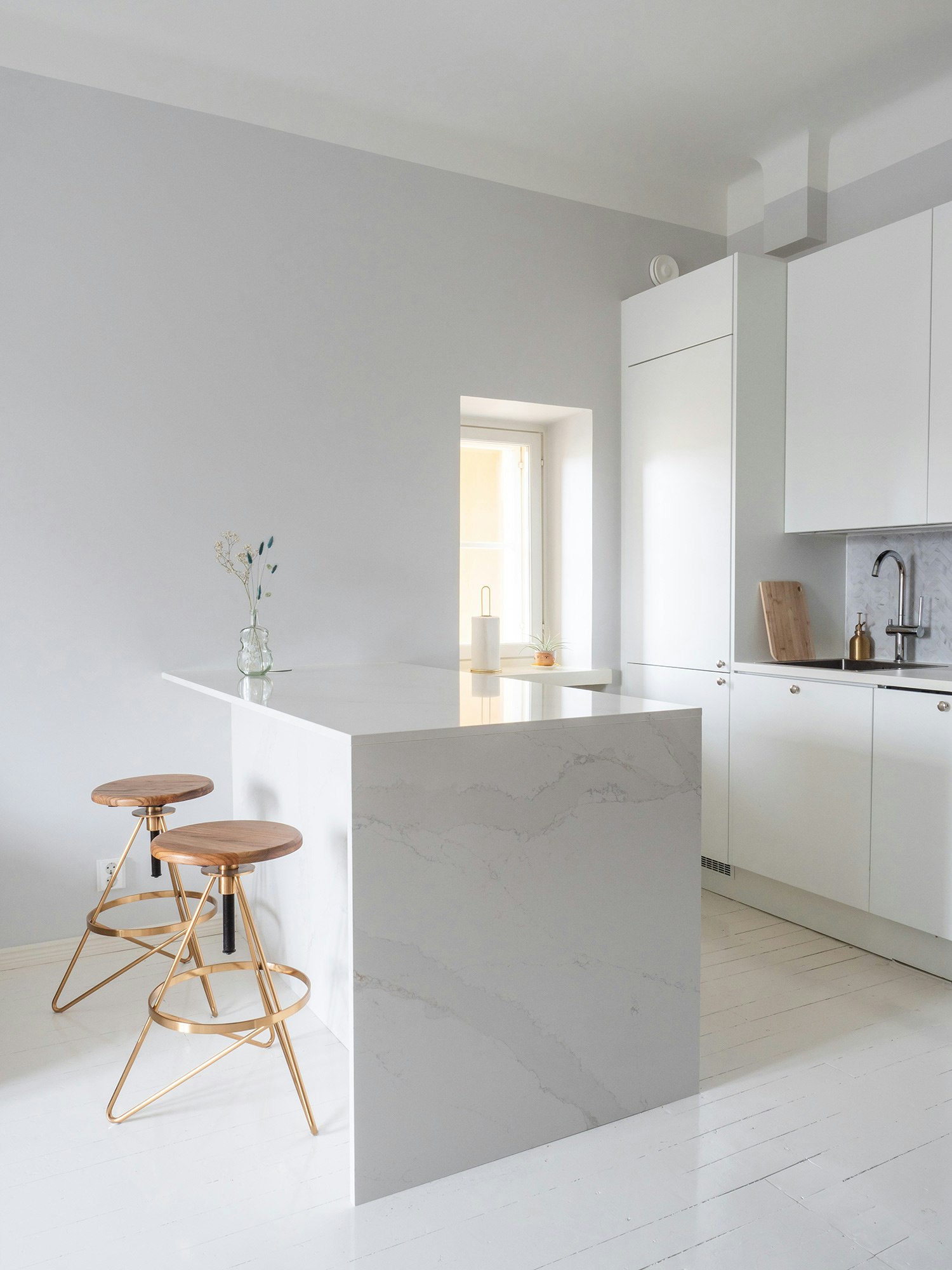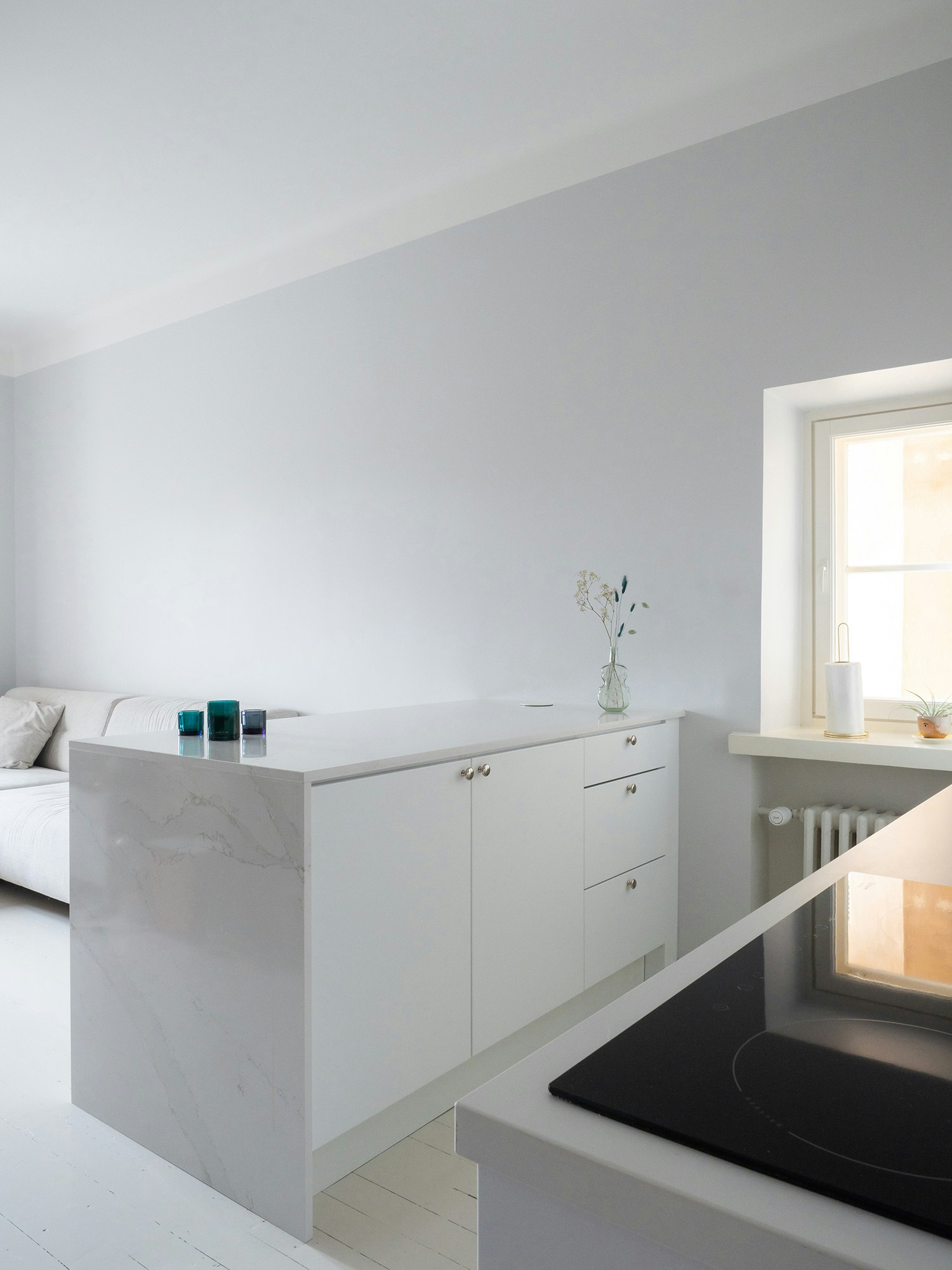 ‘A beautiful kitchen island has been a dream of ours for a long time,’ says Finnish actress Alina Tomnikov. ‘Our wish finally came true when we moved into our first flat of our own last spring. However, the existing kitchen island in our new home was too small, there was no room to sit and the surface area was not large enough for cooking or eating,’ she explains. From that moment on, it was clear to them that they wanted to refurbish the kitchen and turn it into a space for gathering and socialising, where they could cook and enjoy breakfast and dinner at the same time.