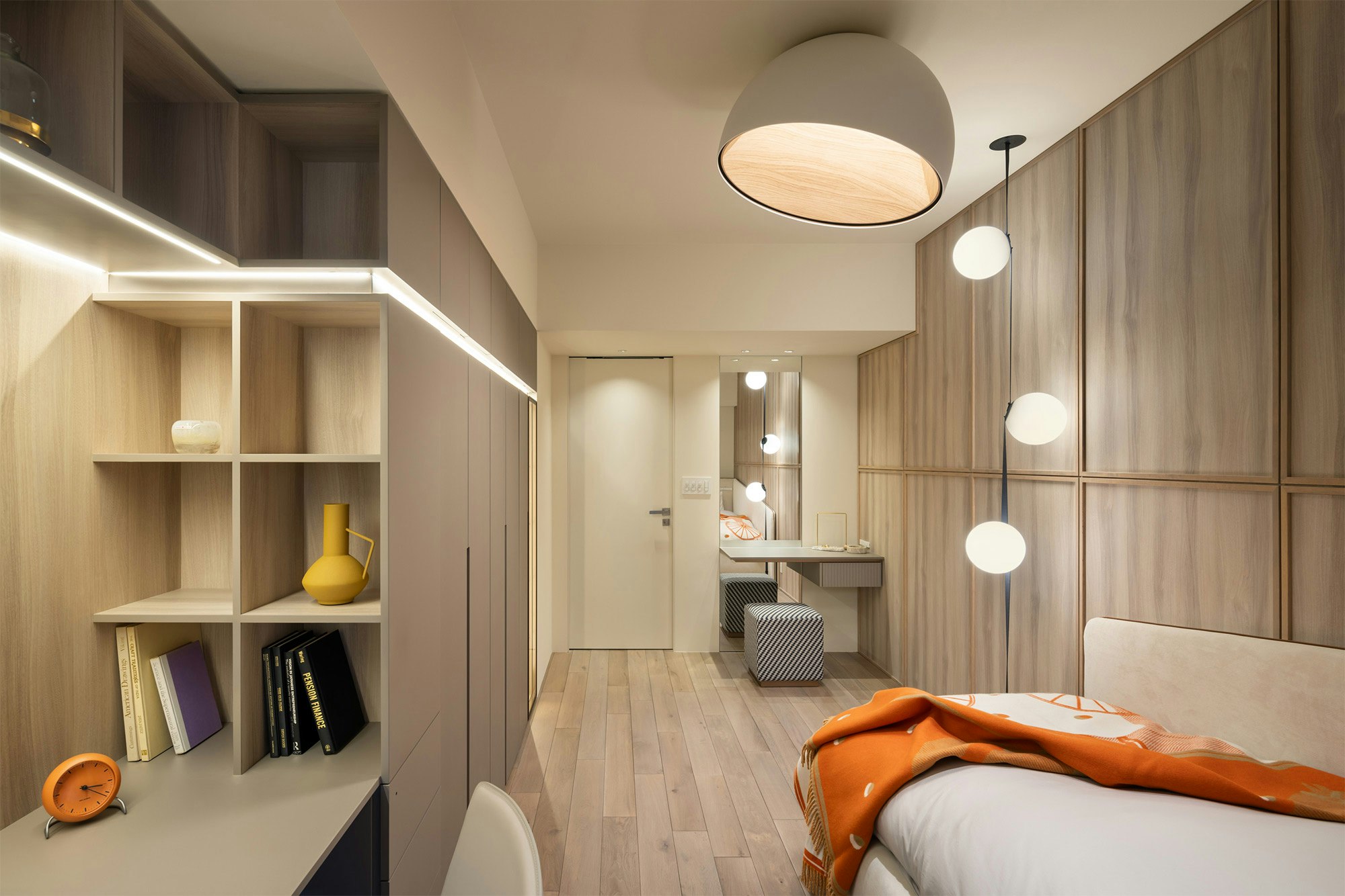 Regarding the use of colour, the designer chose a deep and carefully balanced colour range: “The colour palette was carefully selected to maintain neutrality in shared spaces and add sophistication to private areas, using darker tones to create a more intimate and elegant feel.”