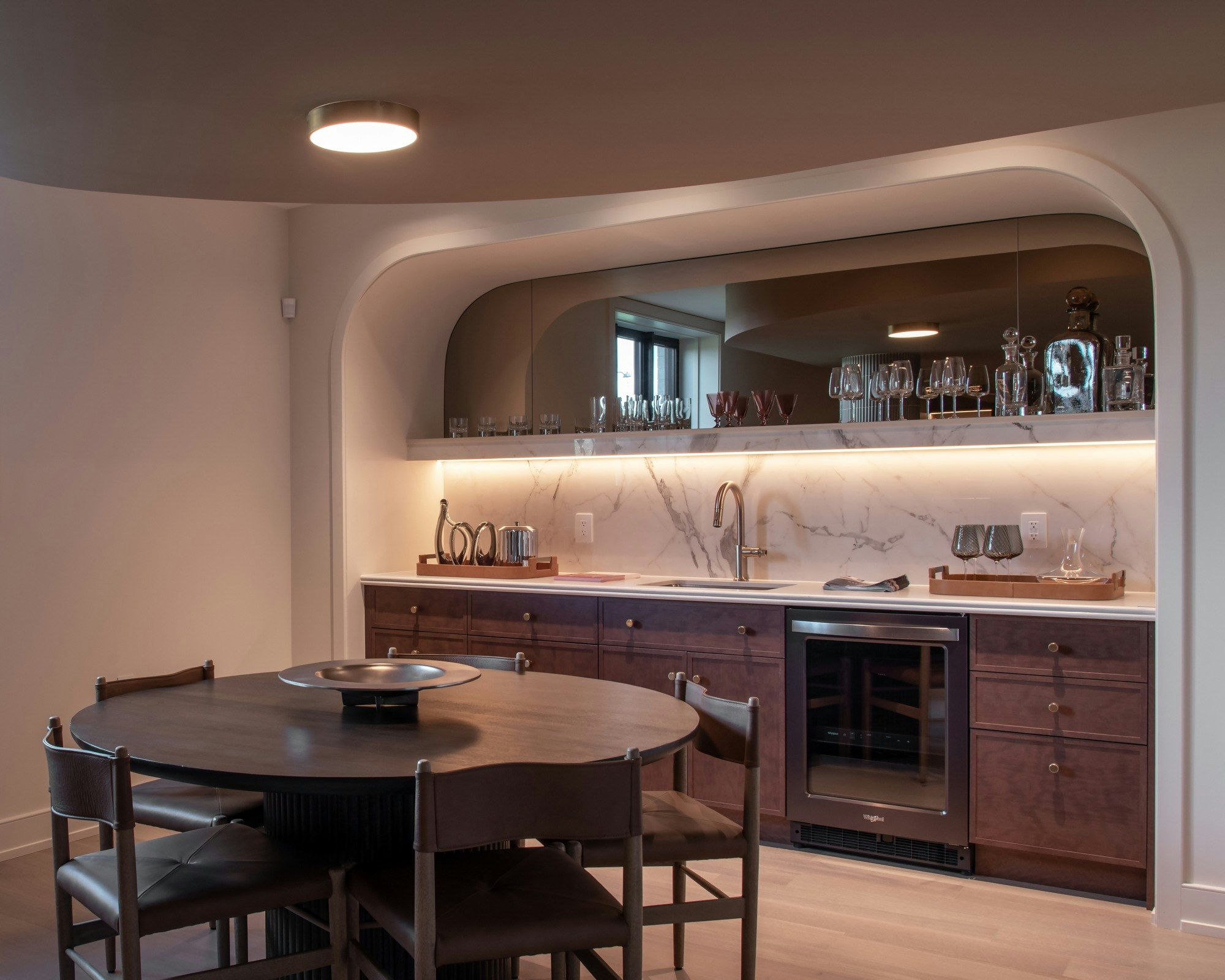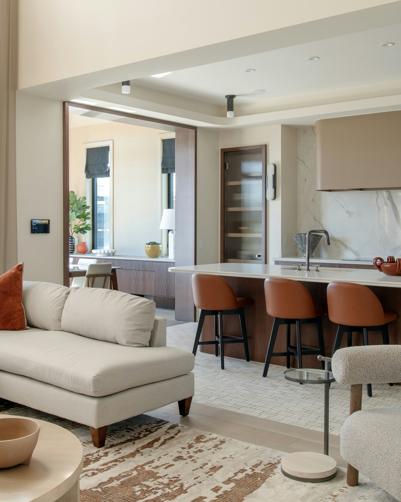 In this new edition, Vine has decided to reinterpret the glamorous art deco style. “From the moment you enter, you are greeted by the clean lines and geometric elegance that defined the 1920s, now reimagined with modern materials and a softer, more liveable feel. This is evident in the subtle interplay between curves and symmetry and in the rich yet restrained material palette, featuring lacquered woods, layers of warm and neutral textures, fluted glass, and polished metals. All these elements create a harmonious blend of vintage charm and contemporary sophistication,” he explains.