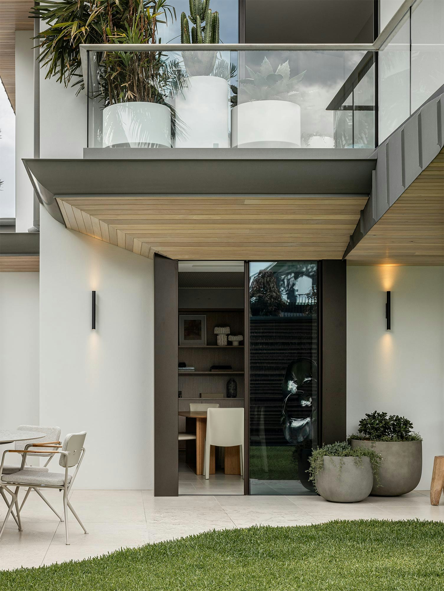 One of the outstanding features of Barda House is the way the materials create a seamless transition between indoor and outdoor spaces. According to architect Adrian Walter Ball, “the design of the tiles, which fold towards the pool area, creates a smooth transition that enhances the overall aesthetic”. This detail, far from being purely functional, is a statement of intent: seamless, uninterrupted spaces that enhance the aesthetics of a contemporary home.