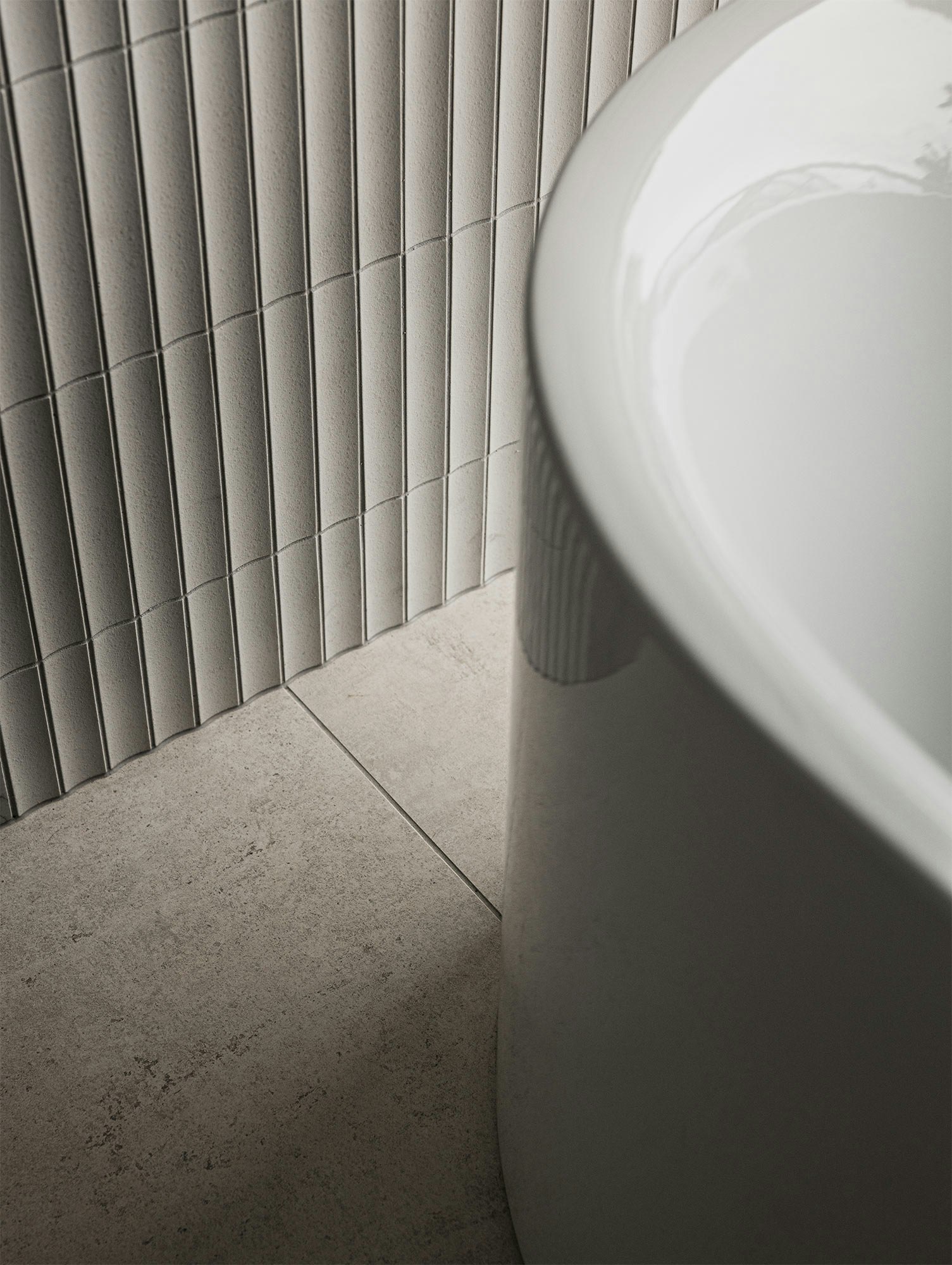 A key moment in the design process was the choice of materials, where the use of large format panels allowed a clearer visualisation of the project. According to Ball, this practice is fundamental because “it provides a realistic view of how the materials will appear in the actual space, helping to make informed decisions about colour, texture and overall aesthetics”. It also allows critical factors such as durability and performance in demanding conditions, such as exposure to water and heavy foot traffic, to be assessed.