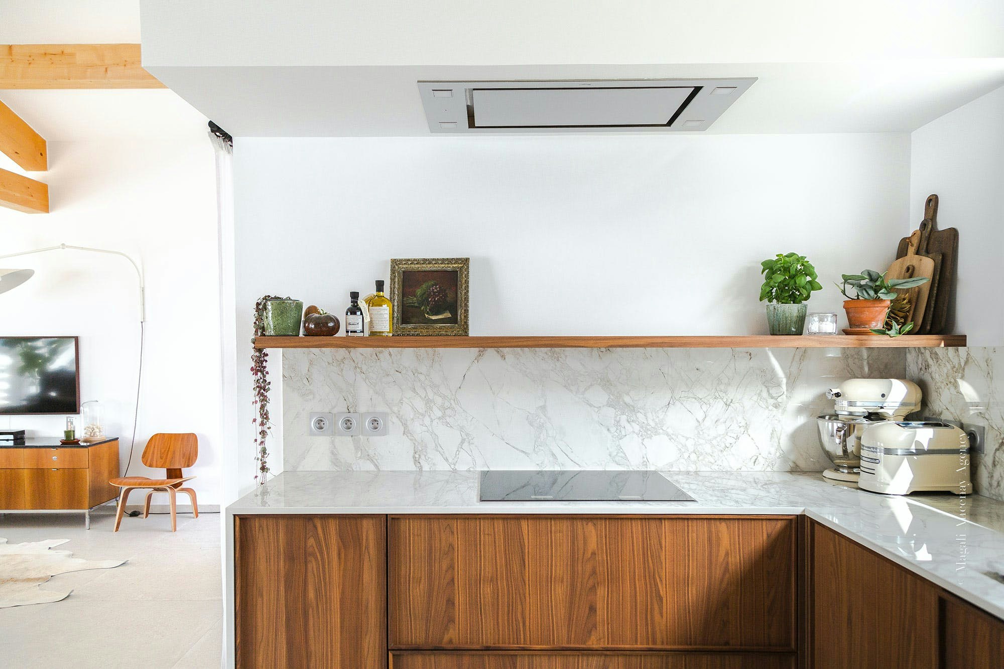 - White is perfect for integrating the kitchen with the rest of your home, facilitating the interconnection of spaces thanks to its versatility and neutrality.