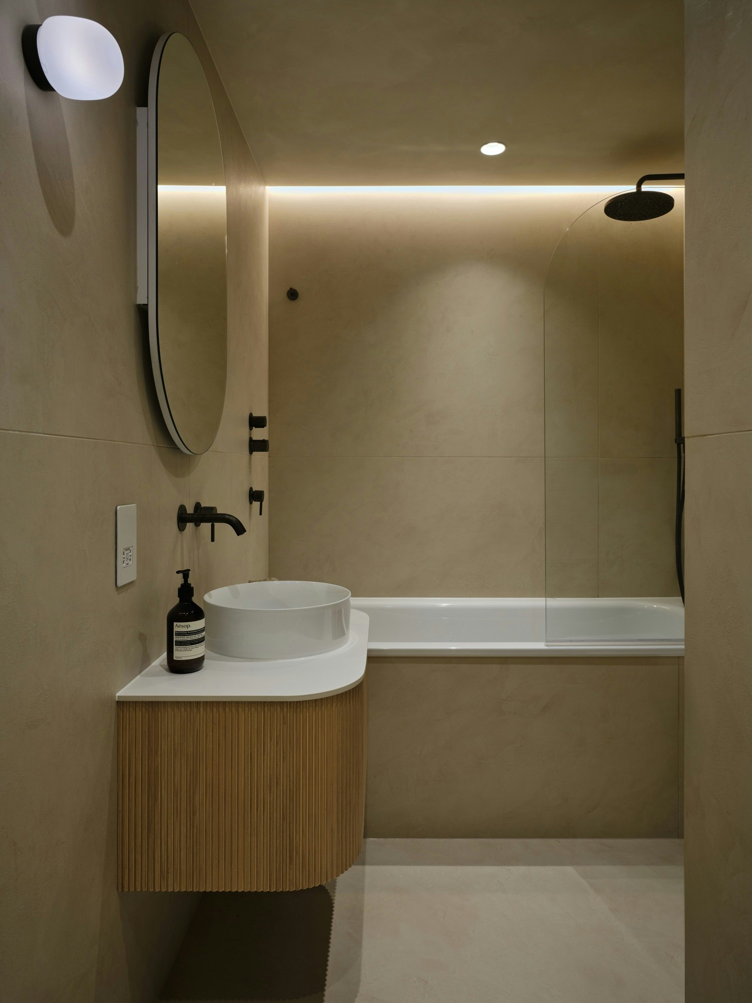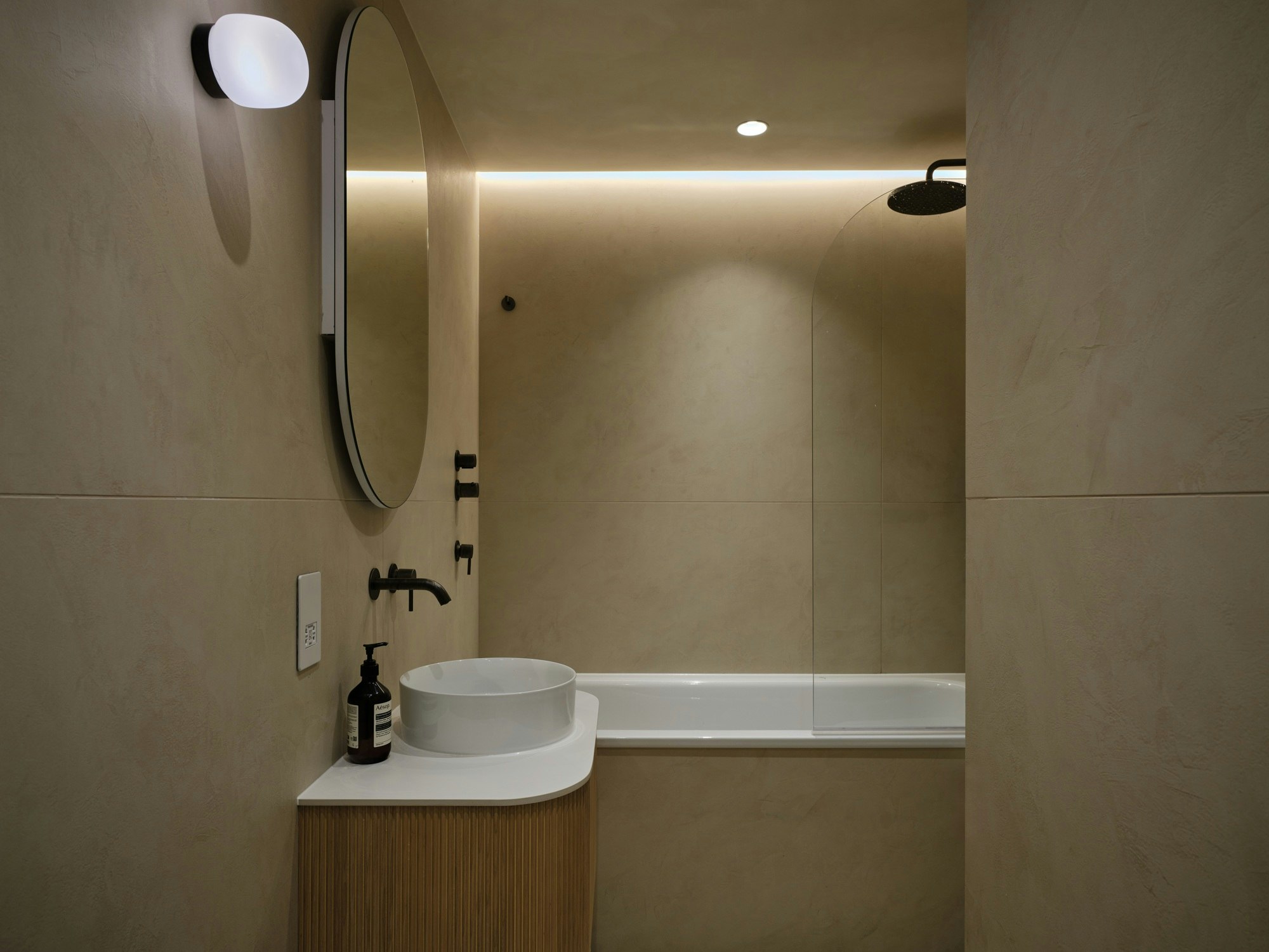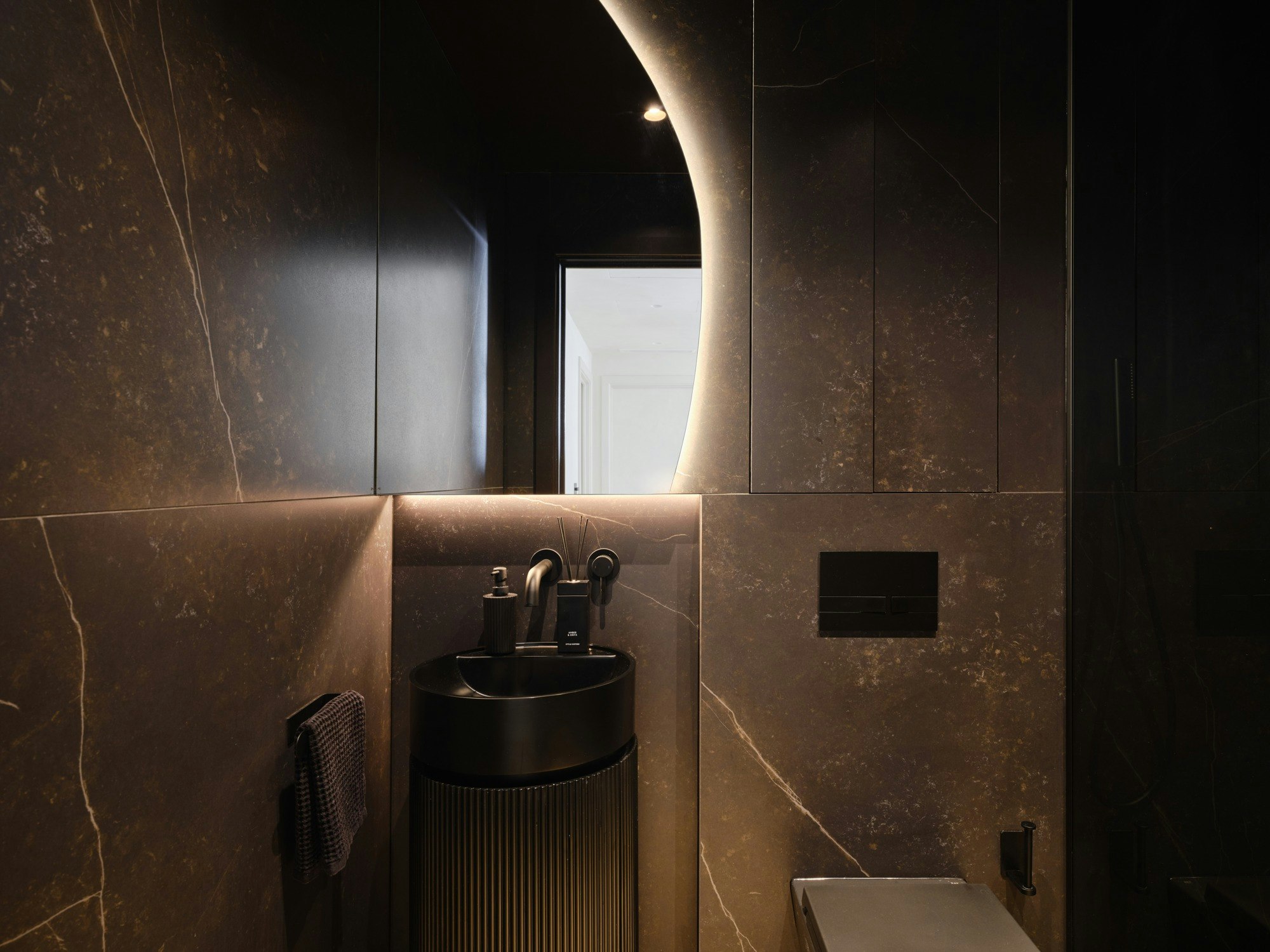 Dekton Nacre and Dekton Kelya in the bathrooms
