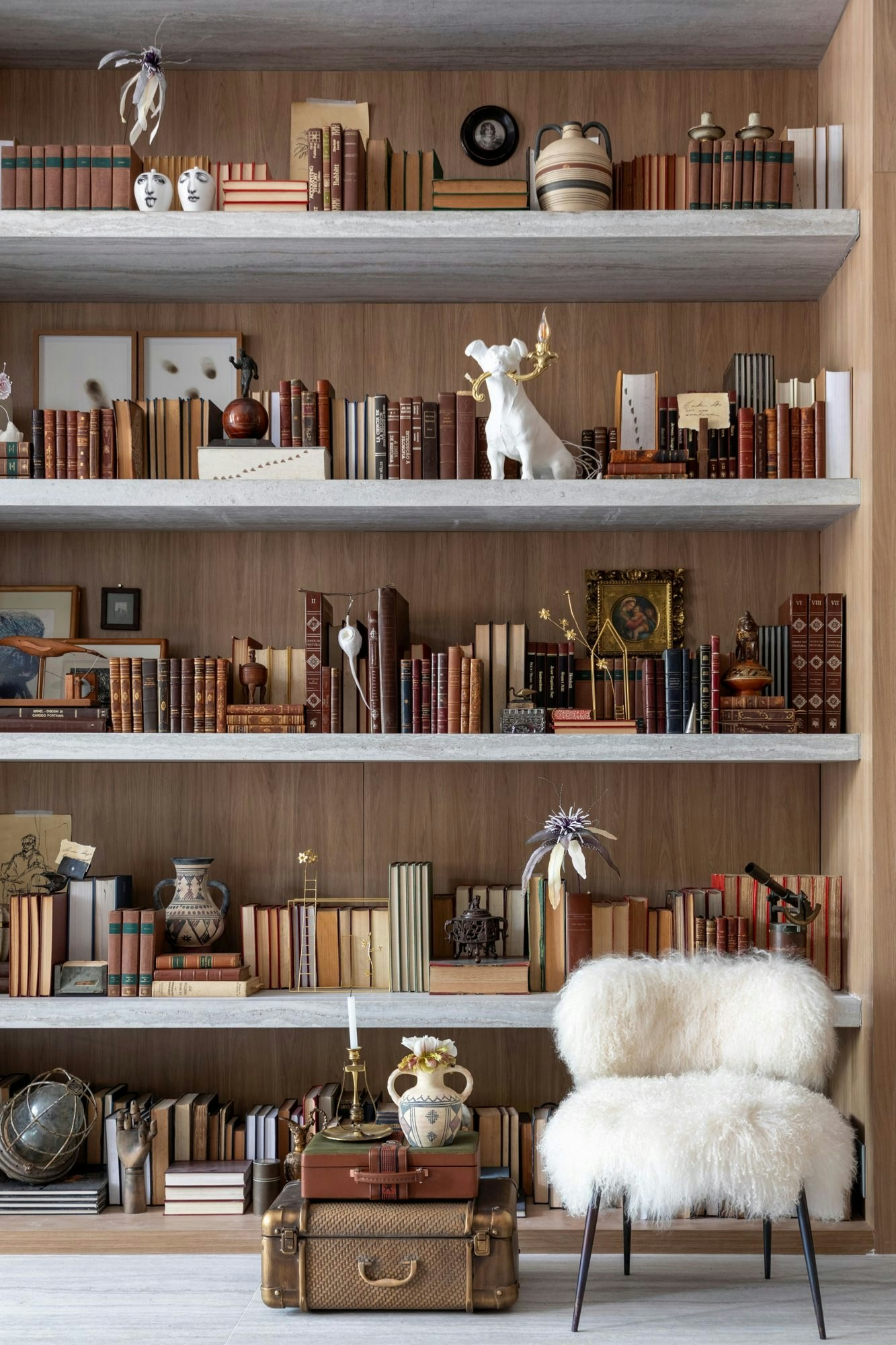 The inspiration for the project comes from an imaginary male figure: a traveler passionate about antiques, a collector of books and objects who carries within himself the sweet weight of the stories he has lived and those he still wants to tell. This character was the guiding thread of the spatial narrative: someone who enjoys being by himself, but wants to share his discoveries with the world.