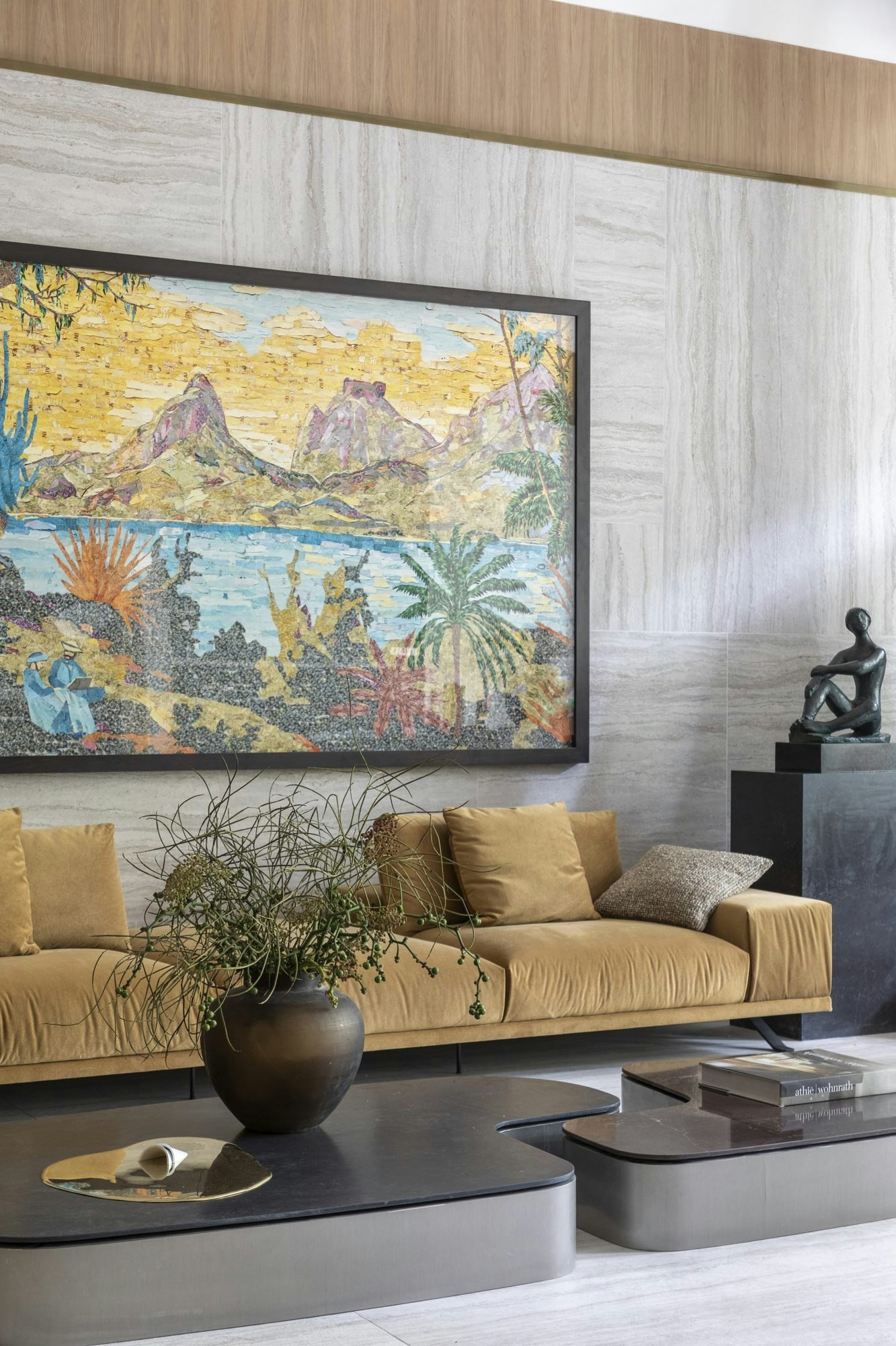 “The idea was to create a space that would welcome both objects and people. A place where silence, old books, affection, art and life fit in”, explains Romário. More than a design showcase, Cosentino House is a manifesto about living with intention. The contemporary fireplace, the reclaimed and reconfigured furniture, the pieces by Brazilian designers such as Jader Almeida and Roberta Banqueri, and the bookshelf full of books, knick-knacks and memories create a setting for permanence and contemplation. The passion for art and the emotional investment it represents are also evident, with works by renowned names such as Vik Muniz and Ernesto Neto, punctuating the space with layers of meaning, history and Brazilianness.