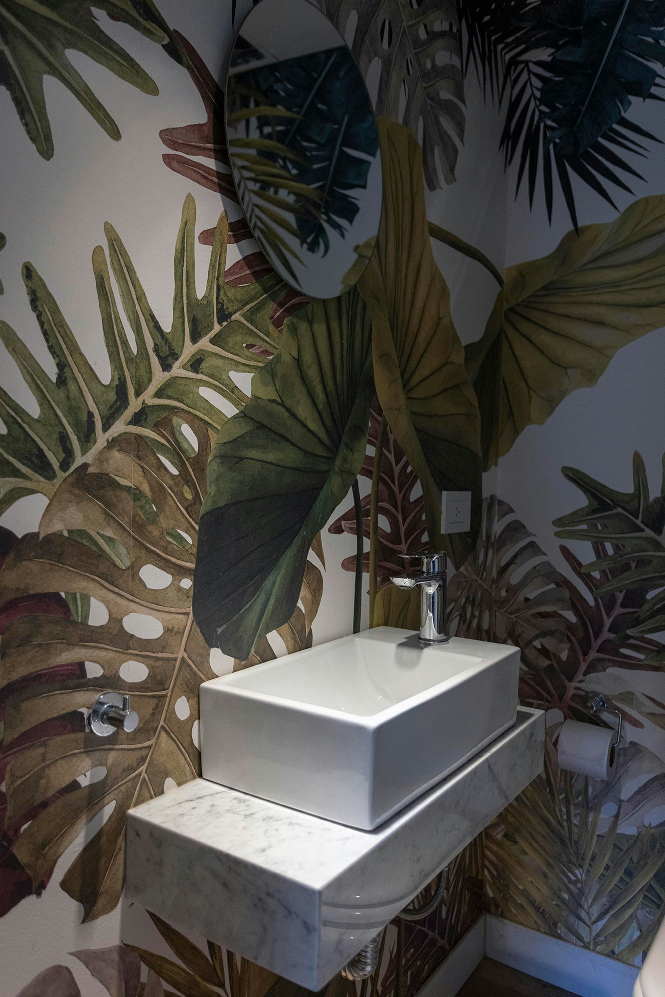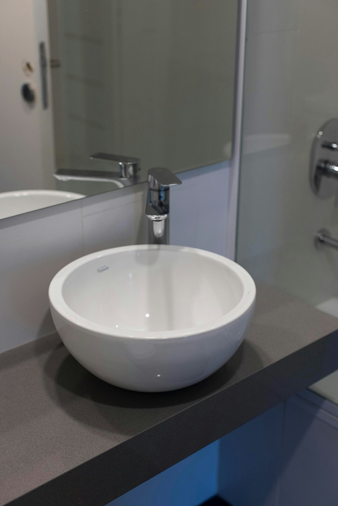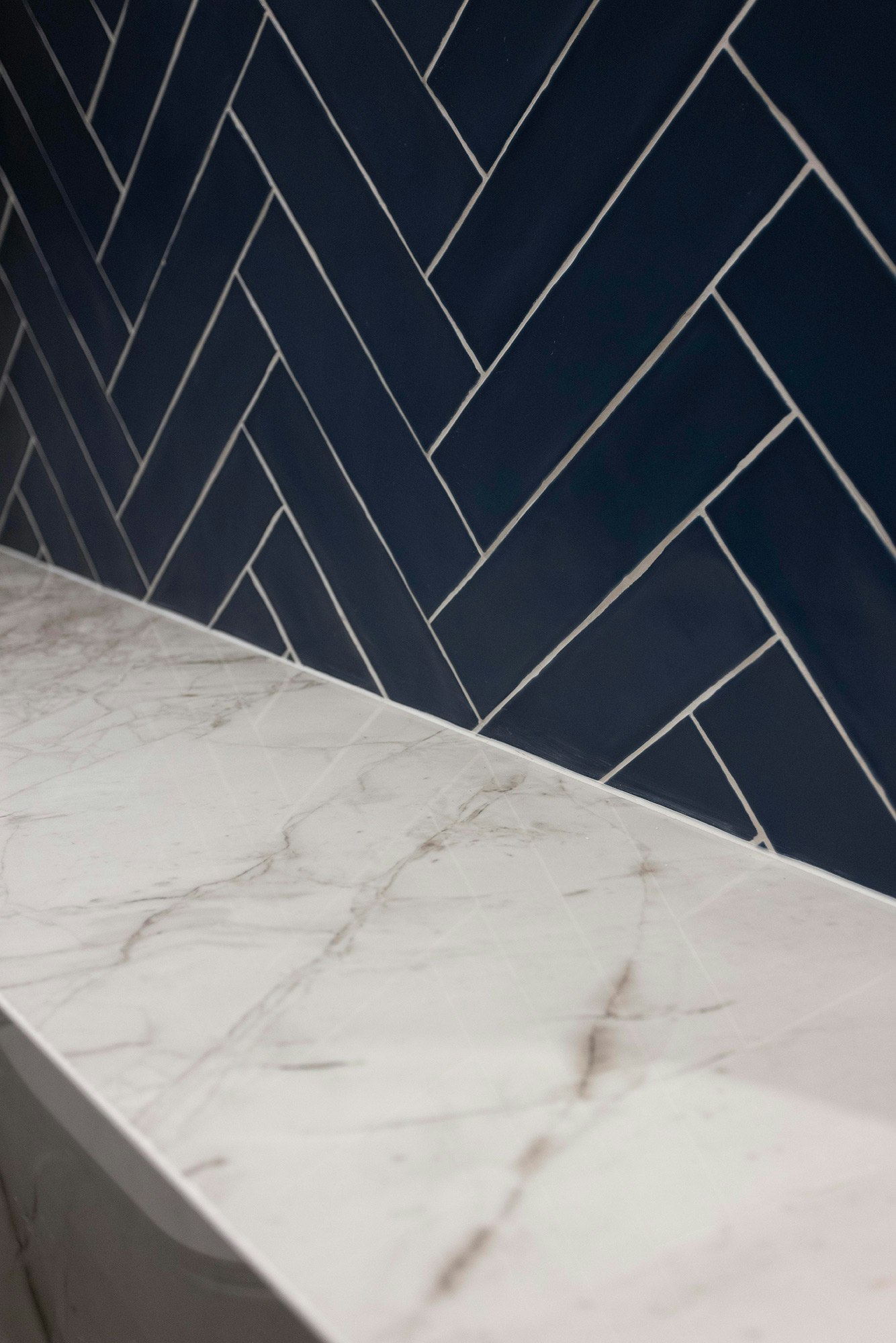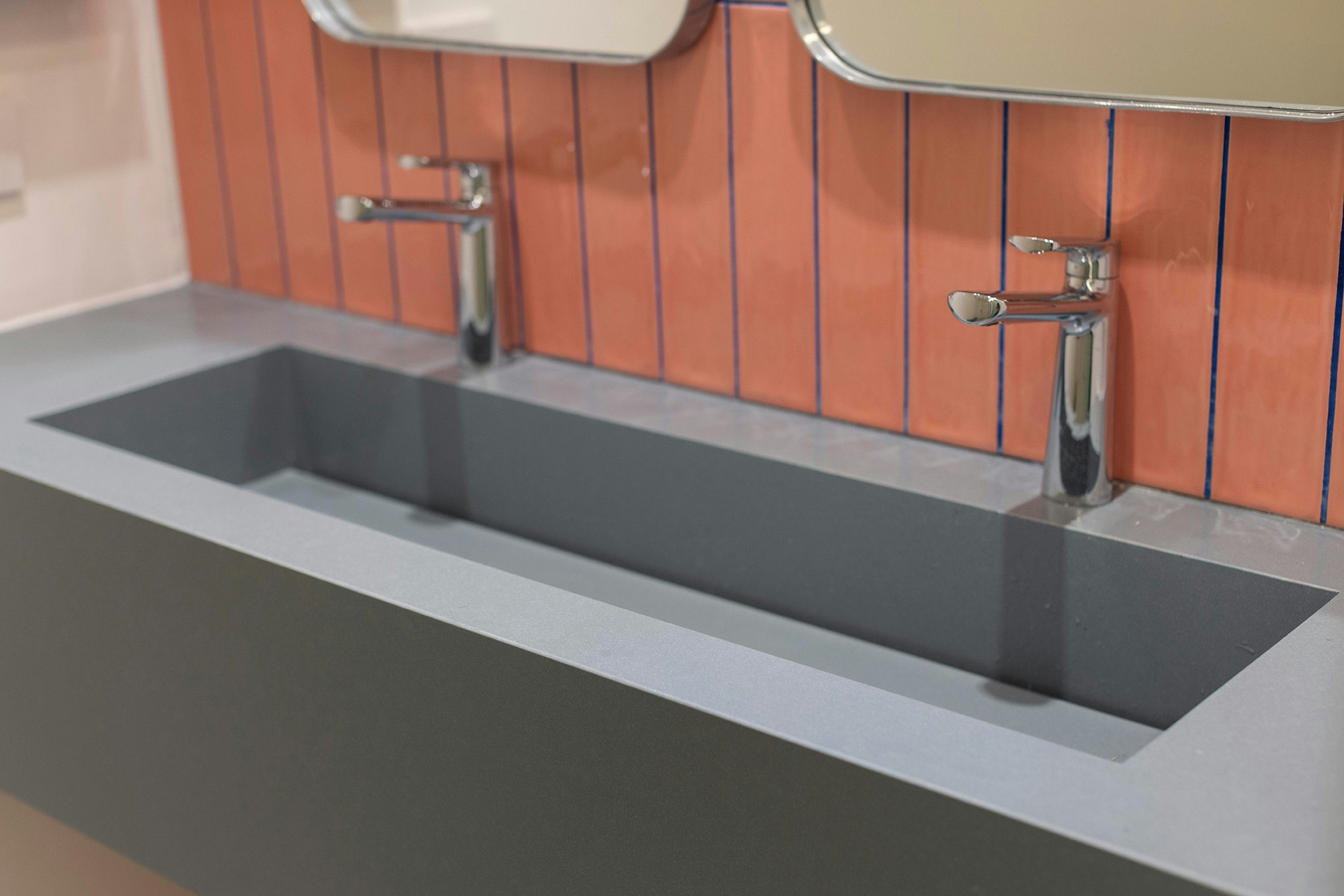 As for the rest of the bathrooms in the building, the material of choice was Dekton. Specifically, Dekton Bergen was the surface chosen for the countertops of the integrated washbasins. “We chose it for its veining and elegance, which matches the blue cladding used on the walls”, the studio says.