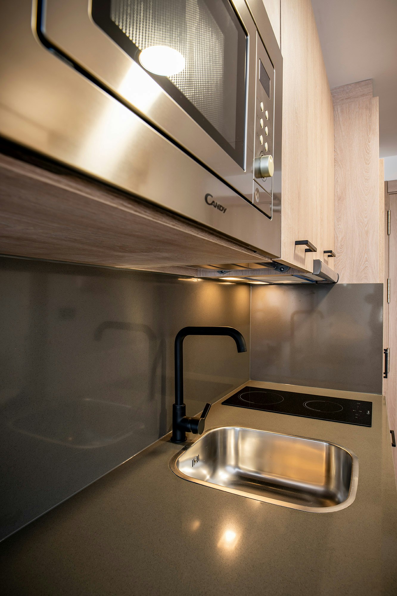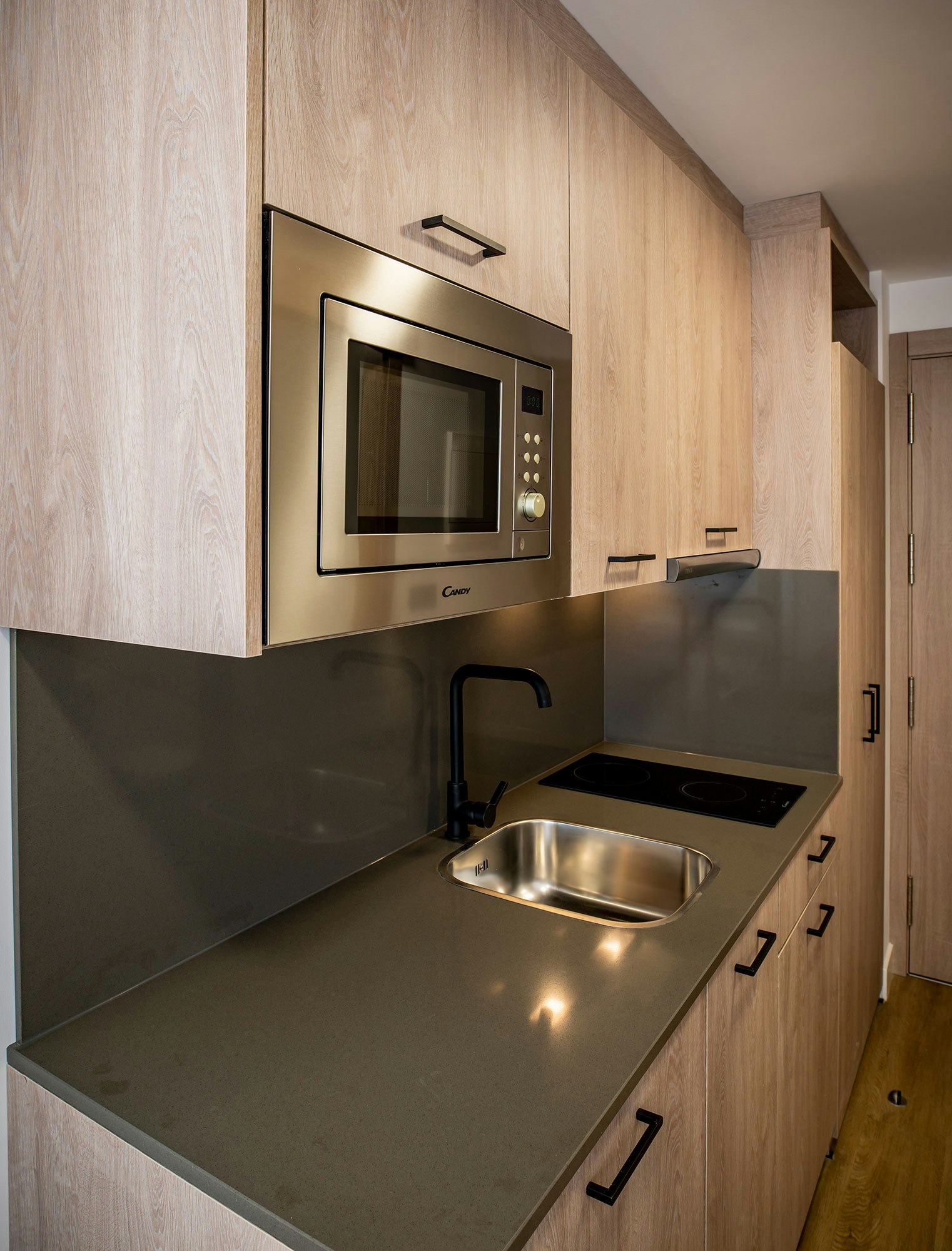 Due to its technical features, Silestone is highly resistant to scratches and knocks as well as to stains and acids common in everyday kitchen use. It is very easy to maintain and a very hygienic surface, making it the ideal solution for the kitchens of Micampus student flats.