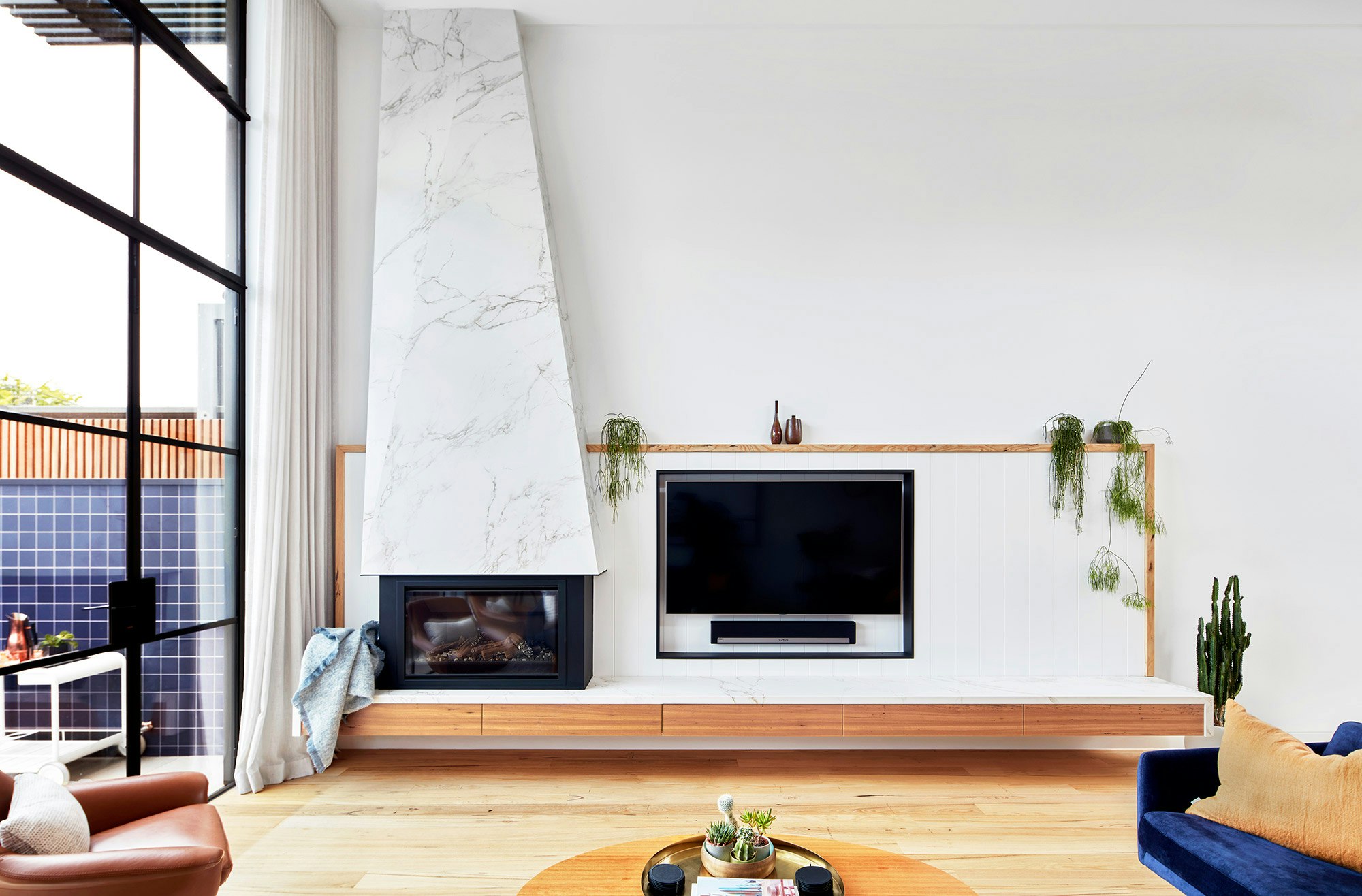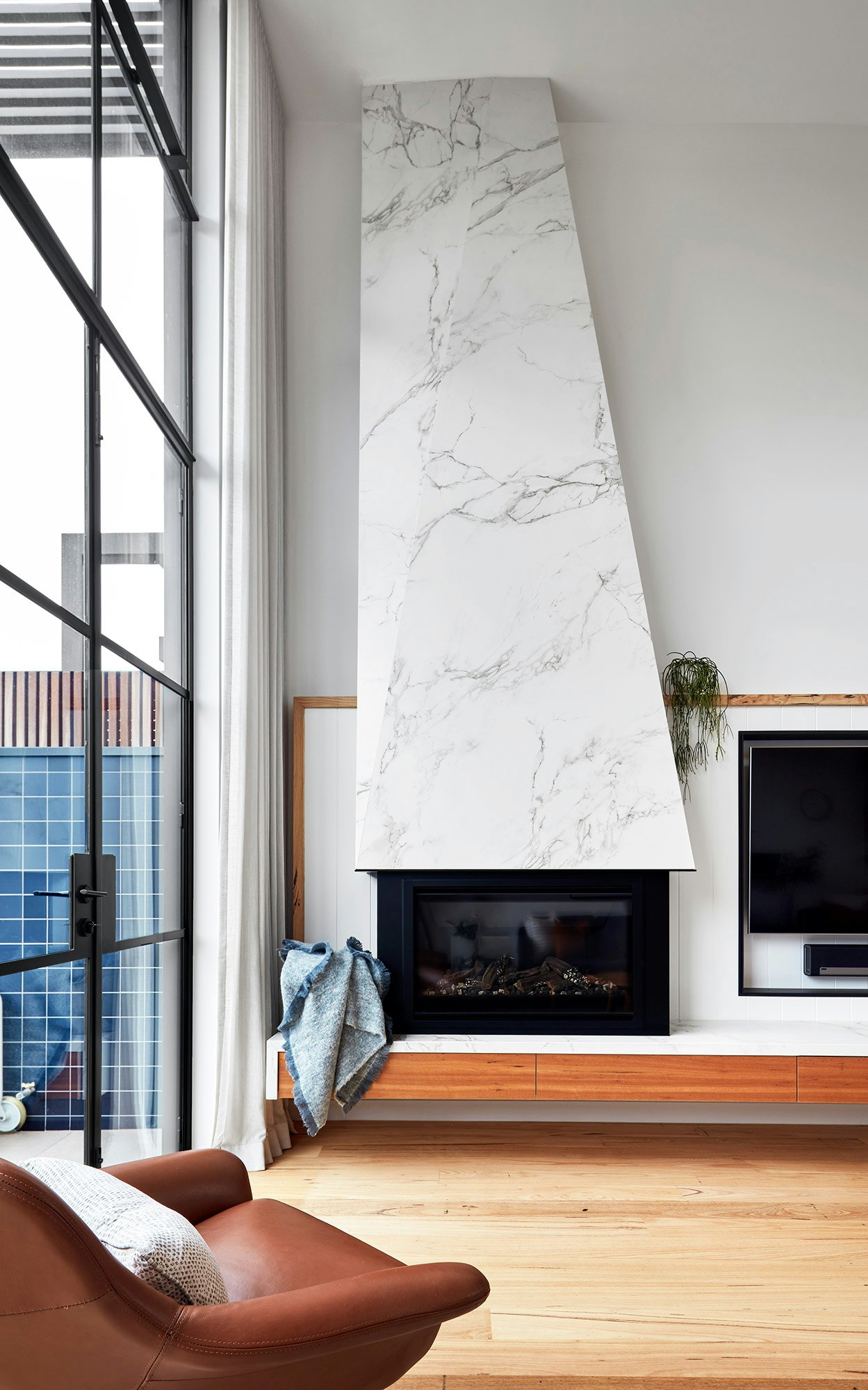 An eye-catching fireplace
