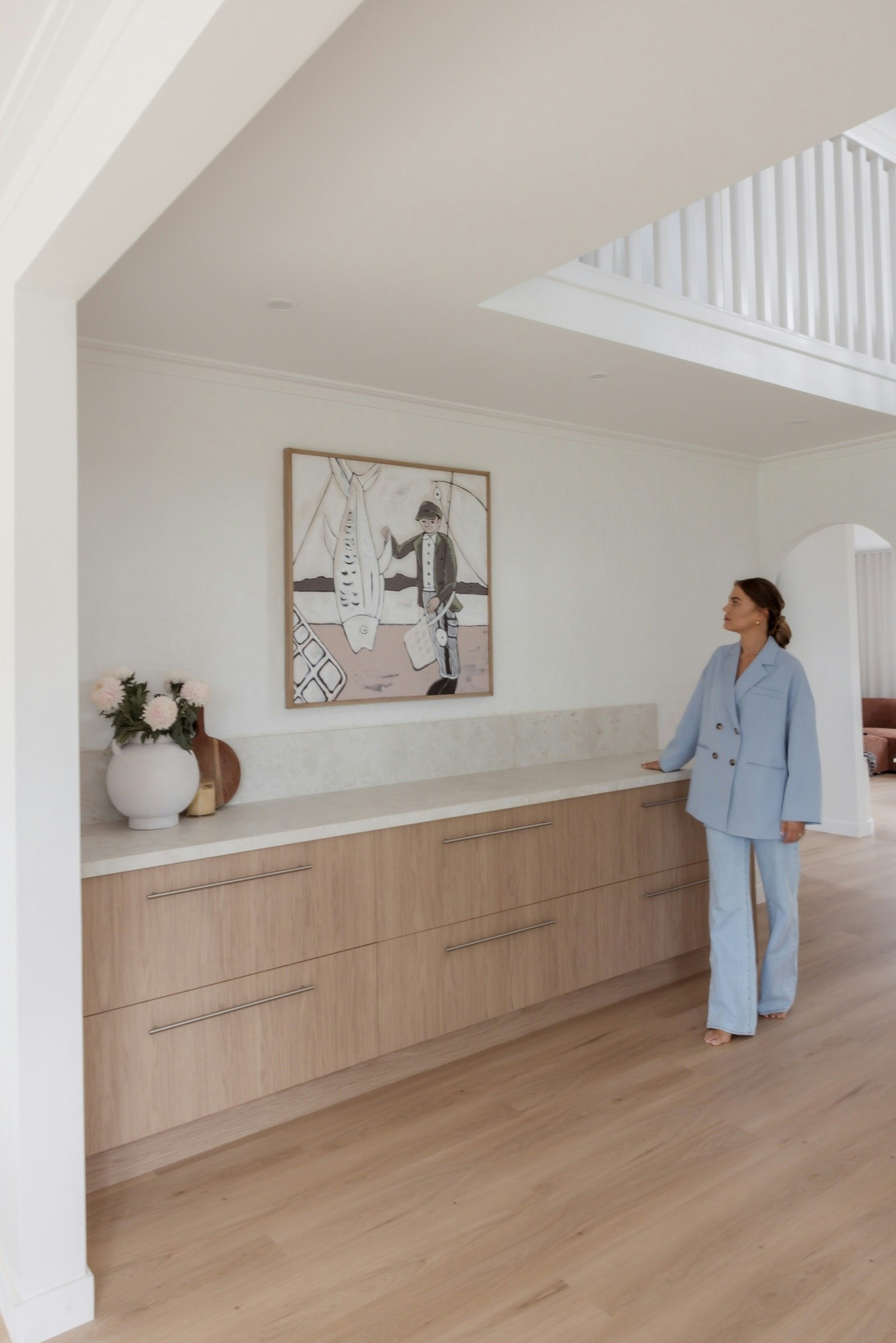 Located in Queensland, her home is a beautiful house with the kitchen area as the main feature, as she describes herself: “I love the double-height space that allows you to look towards the kitchen island, as well as the gorgeous arched niche where we’ve placed the bar and coffee station.” The model and her family are in the process of renovating their home, but the kitchen and laundry were no-brainers when it came to the surfaces they decided to install.