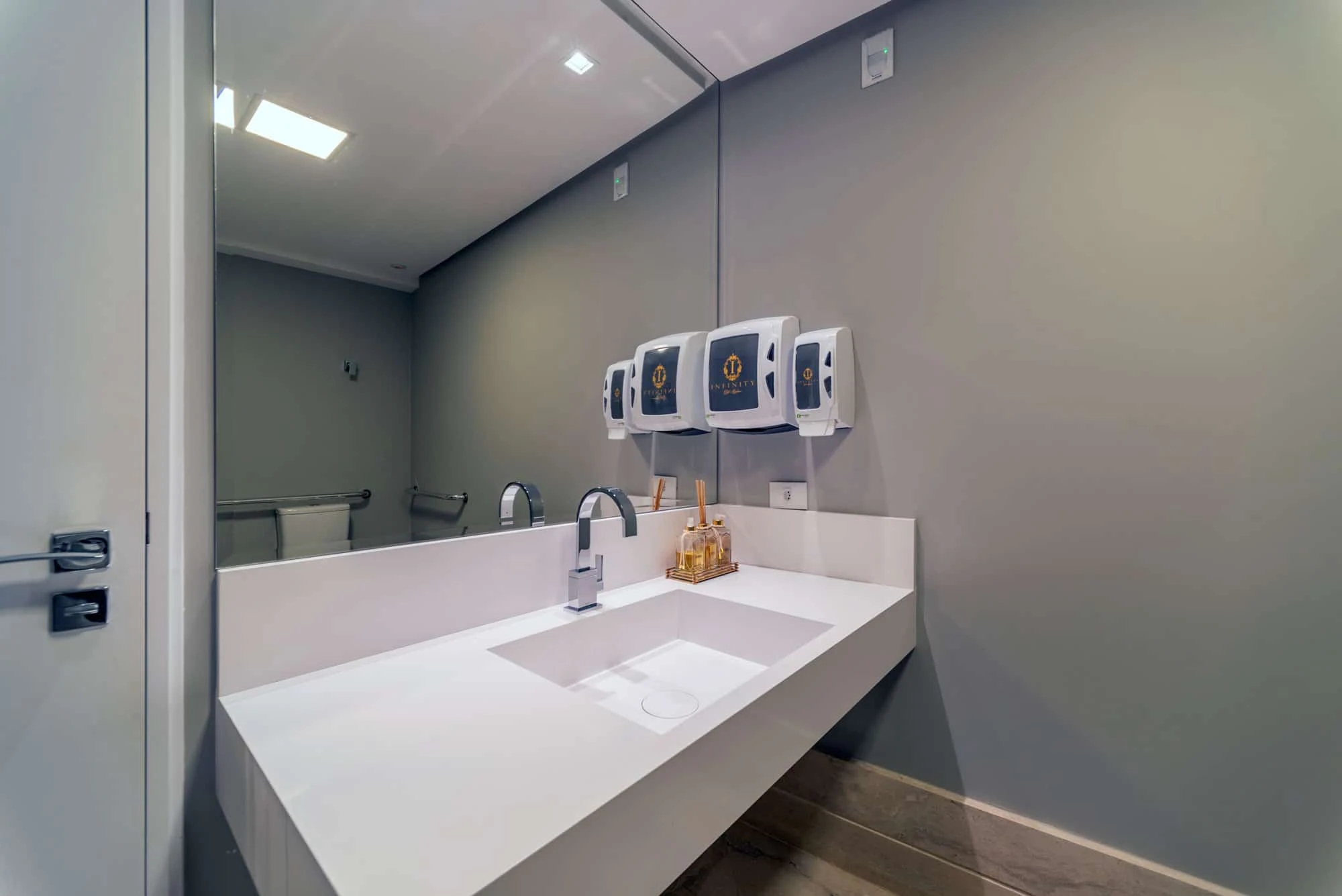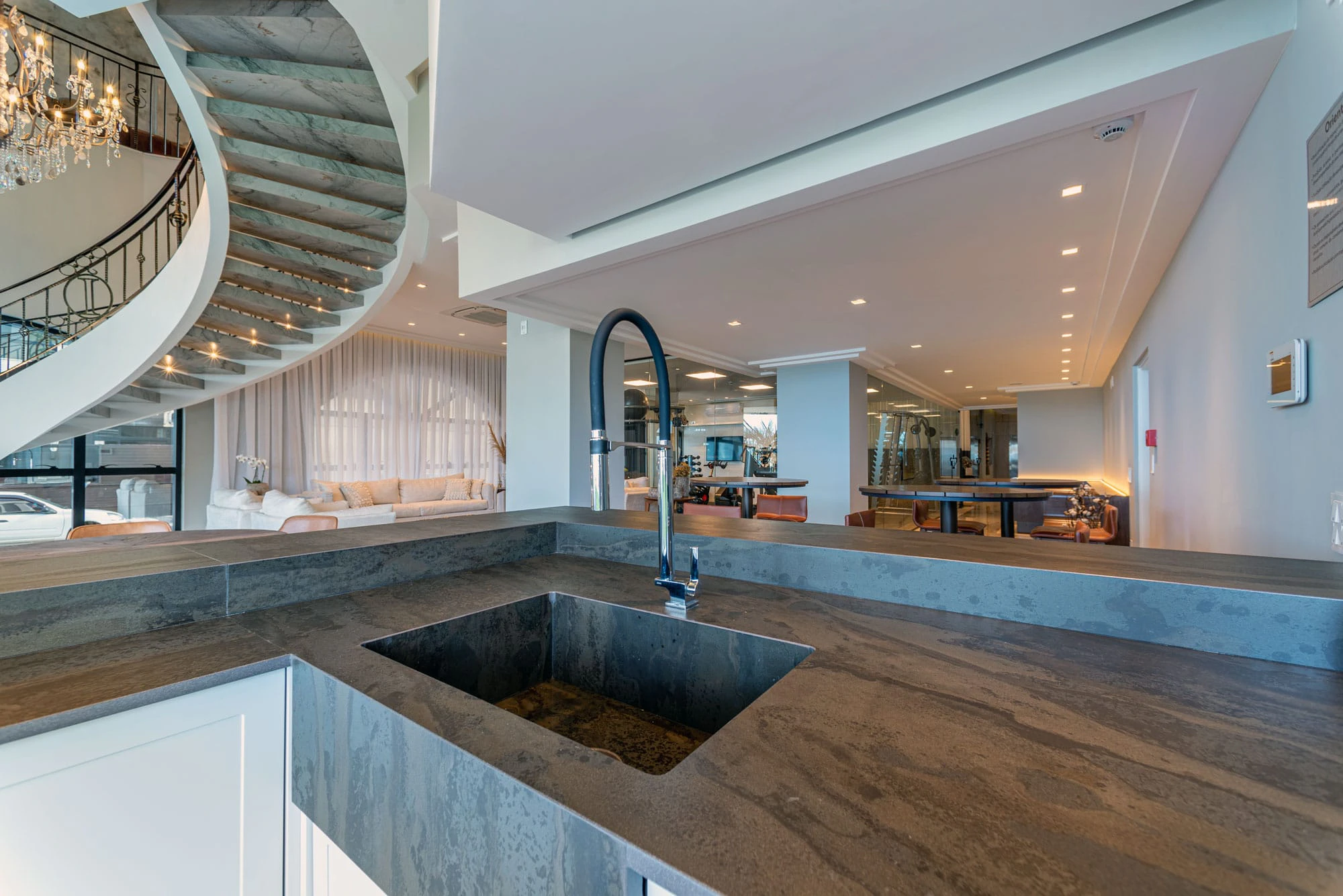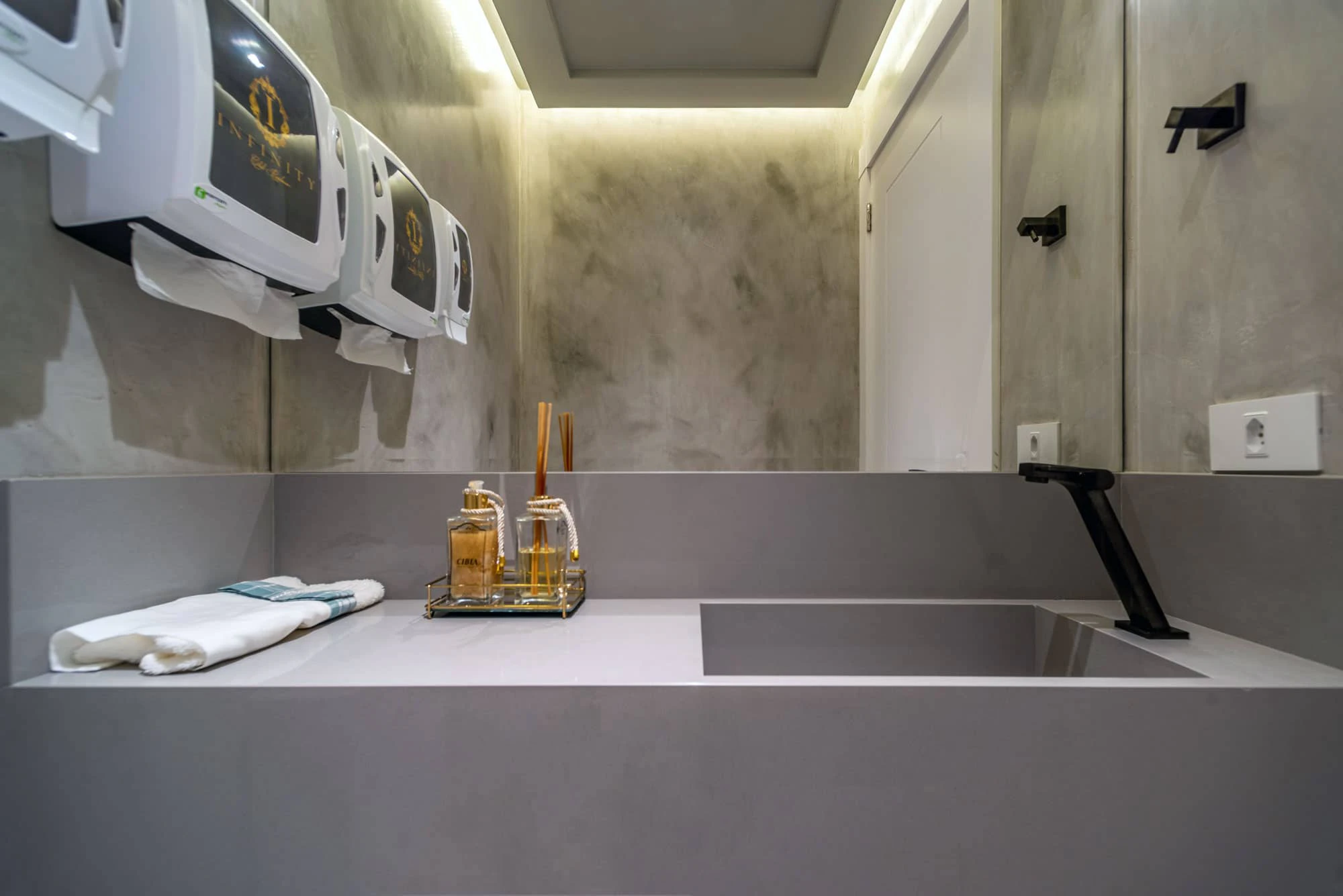 An elegant colour with a clean and flawless finish was chosen for the suites’ bathrooms. Zeus White by Silestone in Suede finish is a failsafe choice for areas where hygiene and cleanliness are paramount.