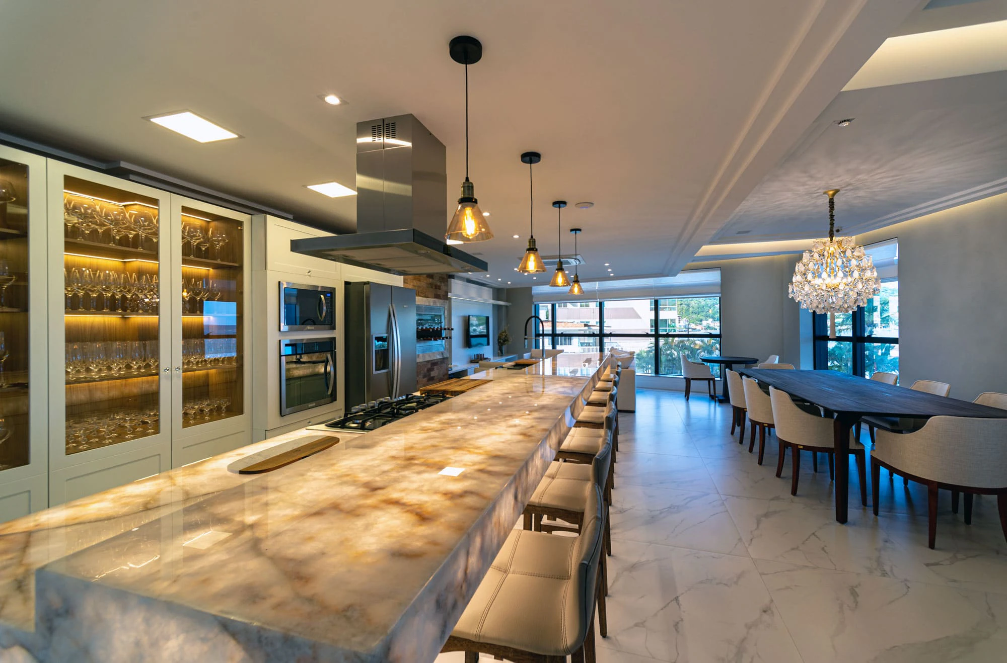 The Infinity Club Residence in Itapema has made optimum use of Cosentino's wide range of shades and textures while benefitting from the first-class technical features of Dekton and Silestone as key elements in the home.