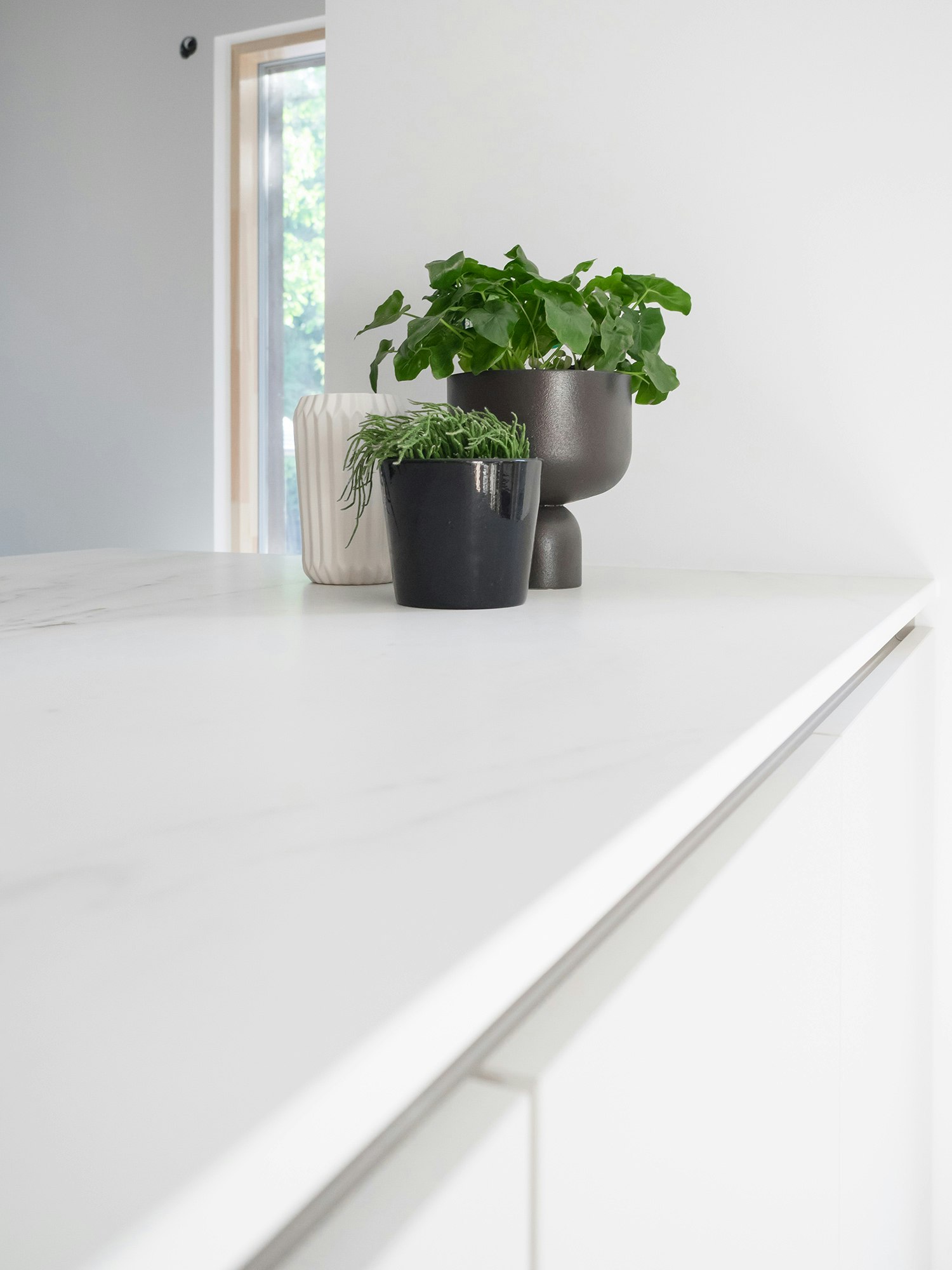 “The Dekton worktops have proved to be very low maintenance. I was a little cautious at first and took care not to place anything hot on them without using a trivet. Since then, I've noticed that I can use the worktops for chopping off the stems of a bouquet or even place a hot pan directly on their surface. The worktops’ lovely matte finish feels soft and velvety to touch. I've found convenient ways to clean the worktops and can now even easily remove greasy fingerprints with a scouring pad and a cleaning stone. Luckily these are rarely needed, as everyday cleaning requires only water. I have truly fallen in love with this kitchen.”
