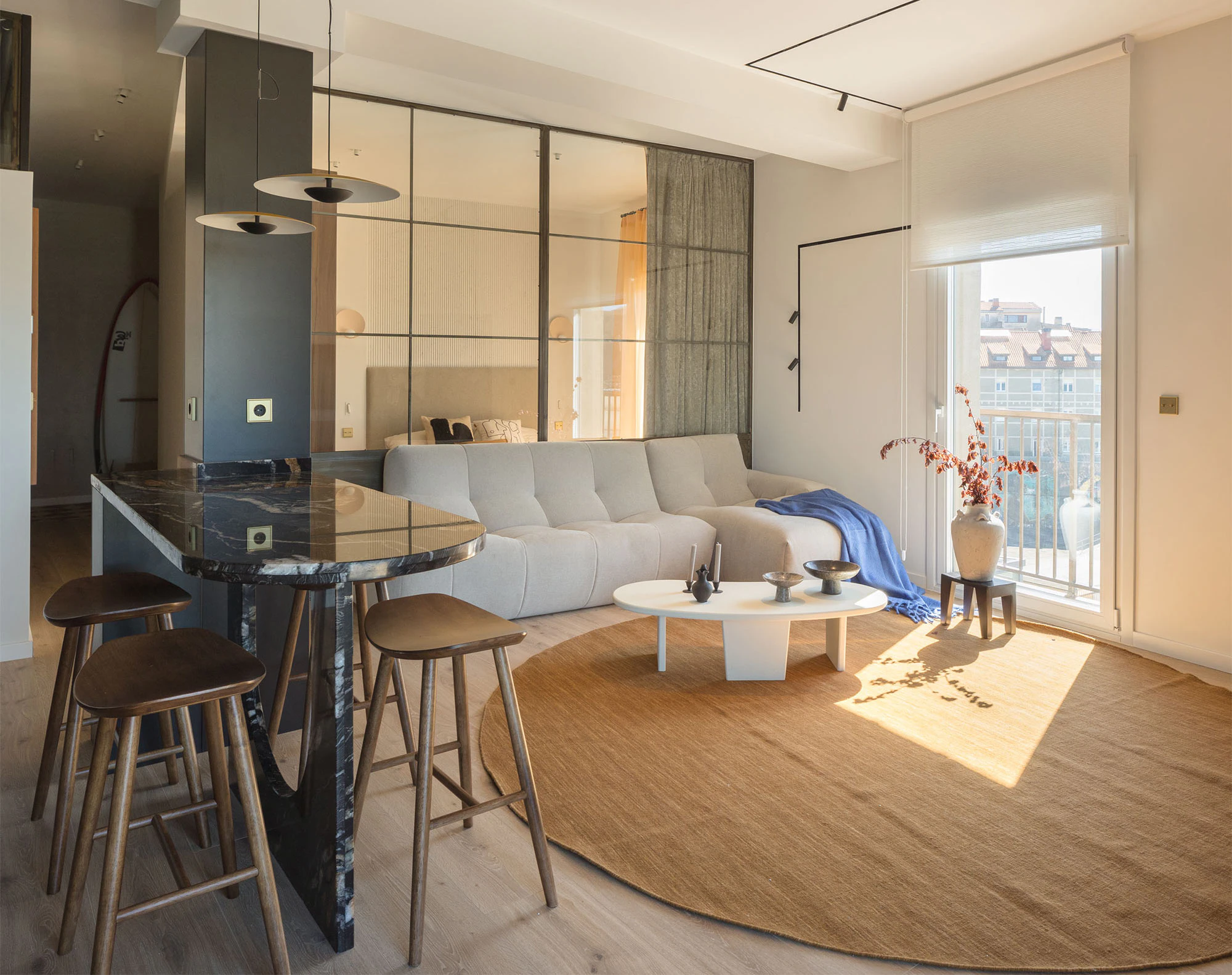 In the world of architecture and interior design, there are spaces that, despite their small size, make a big impression. The latest renovation project carried out in San Sebastián by Amai Studio, the studio founded by Amaia Elias, is one such case. With spectacular sea views, this 58-square-metre flat is proof that thoughtful design can transform a small space into a functional, welcoming and aesthetically surprising home.