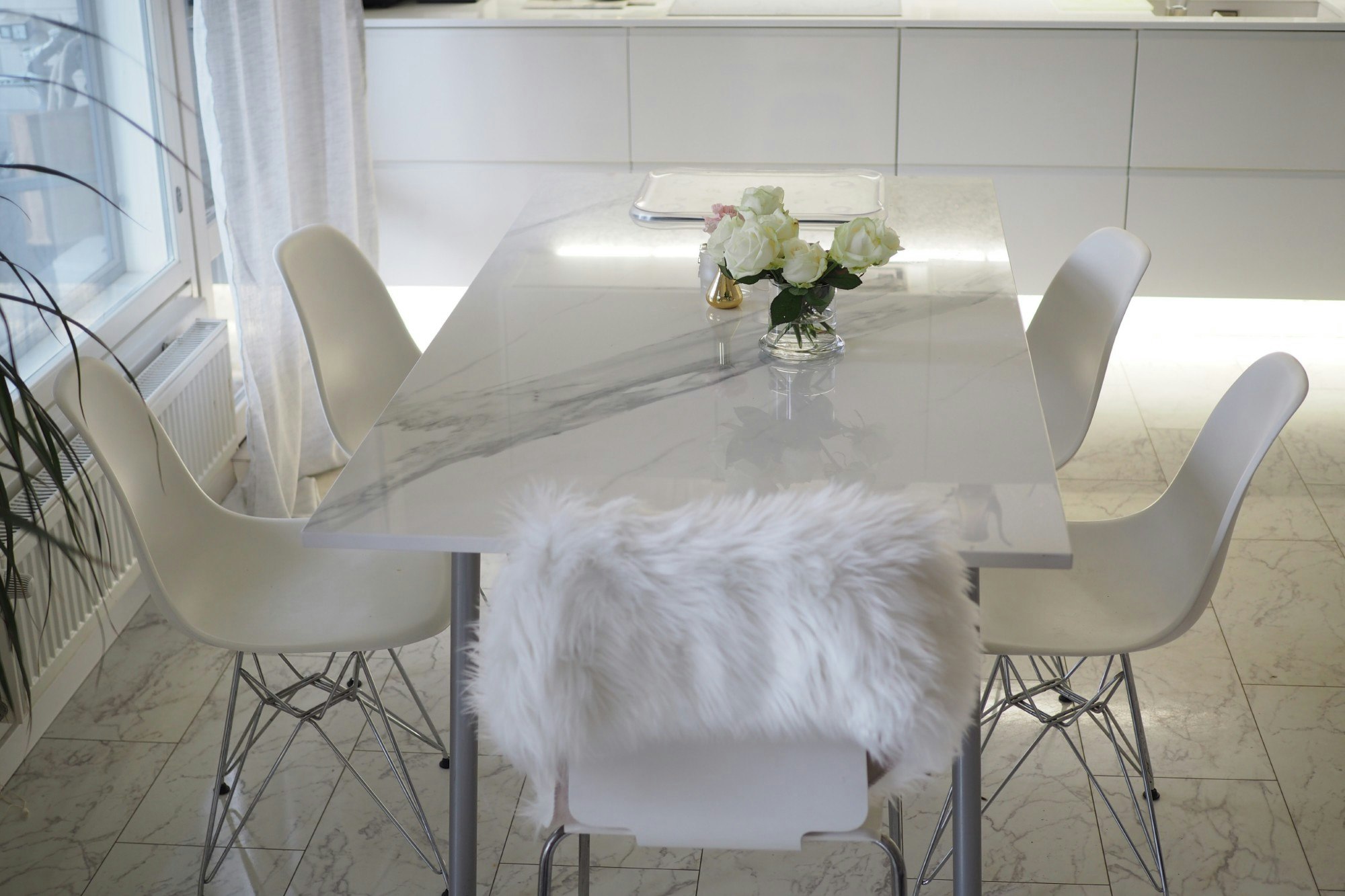 With the dining table Jessica also took the chance of enlarging the size of it: 'Our updated table top is made of Dekton Olimpo and we arranged for it to be made slightly larger than our previous one. I dream of having new table legs attached to the corners of our new table top, but I'm still very pleased with our new dining table as it is now.'