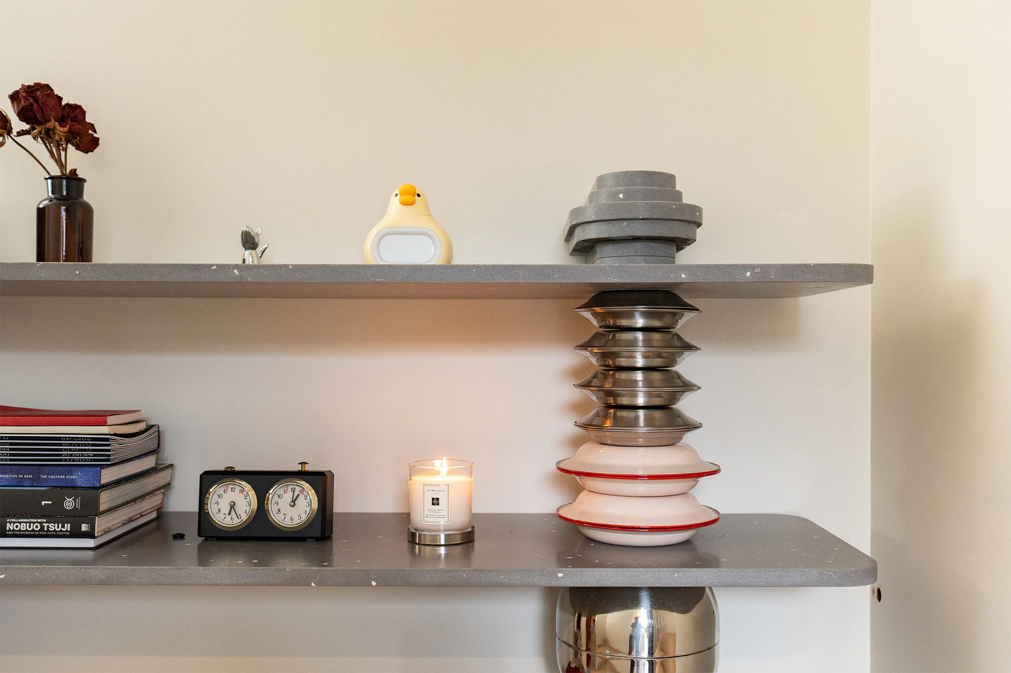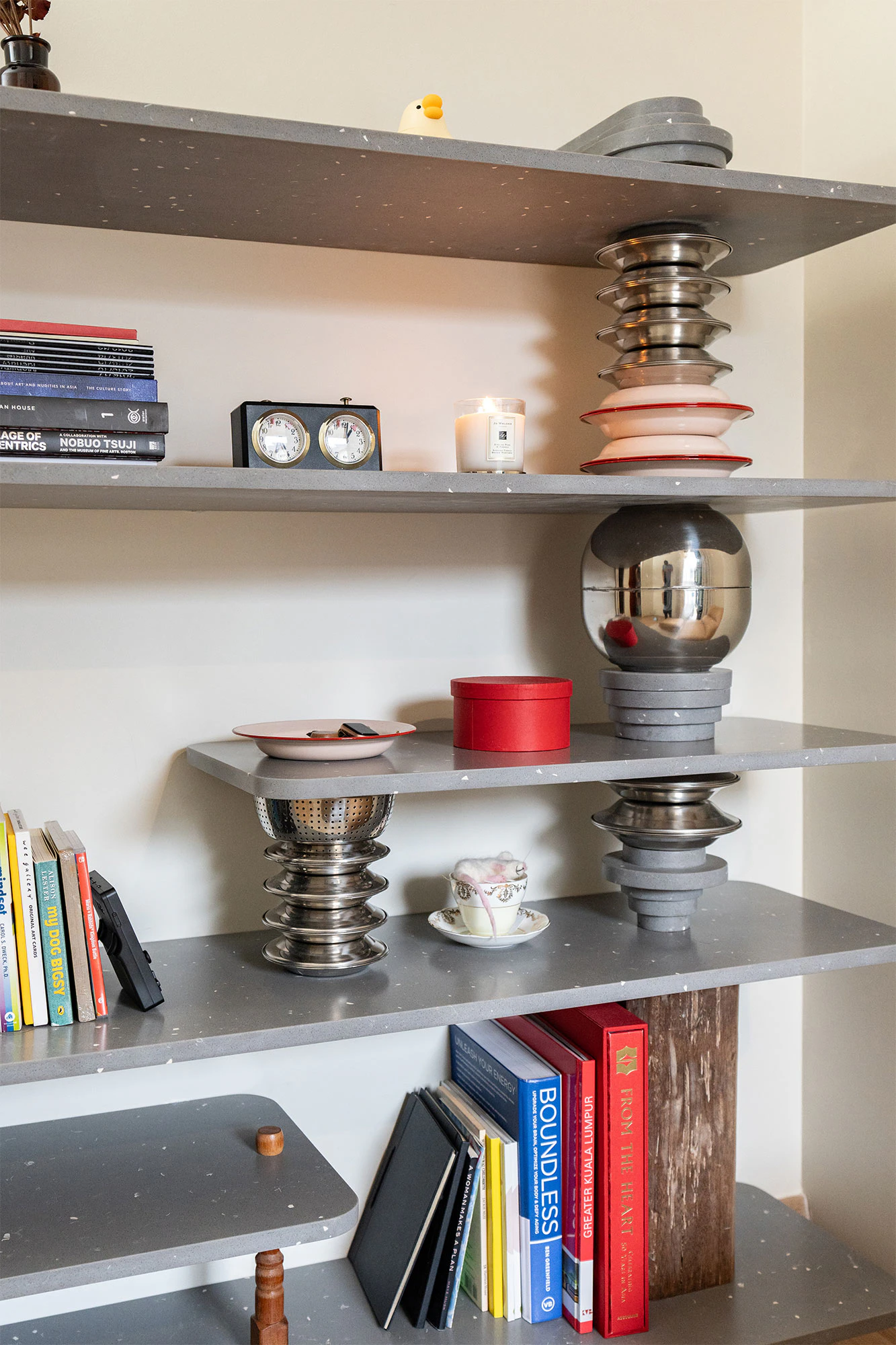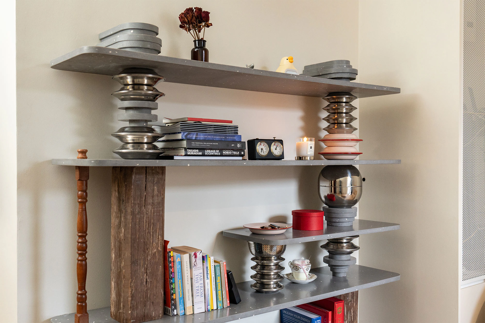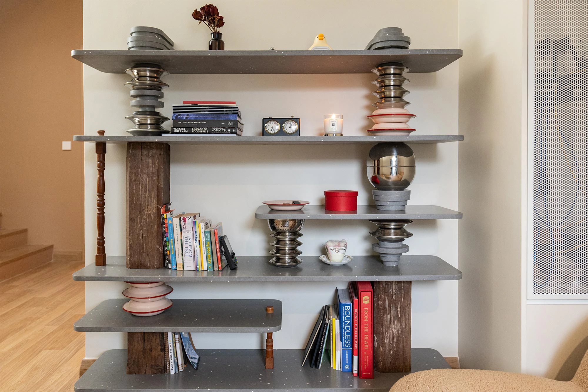 In addition to the kitchen, Red also designed a very special corner in her home, using Silestone Ffrom02 to create a very personal shelf, which she has named ‘Totem Shelf’. Situated in her studio, it has become a focal point where she keeps her favourite books and small objects of great sentimental value. “It is a place I go to relax and I love being able to unwind, read and see a piece I have designed become a special part of my home,” she concludes.