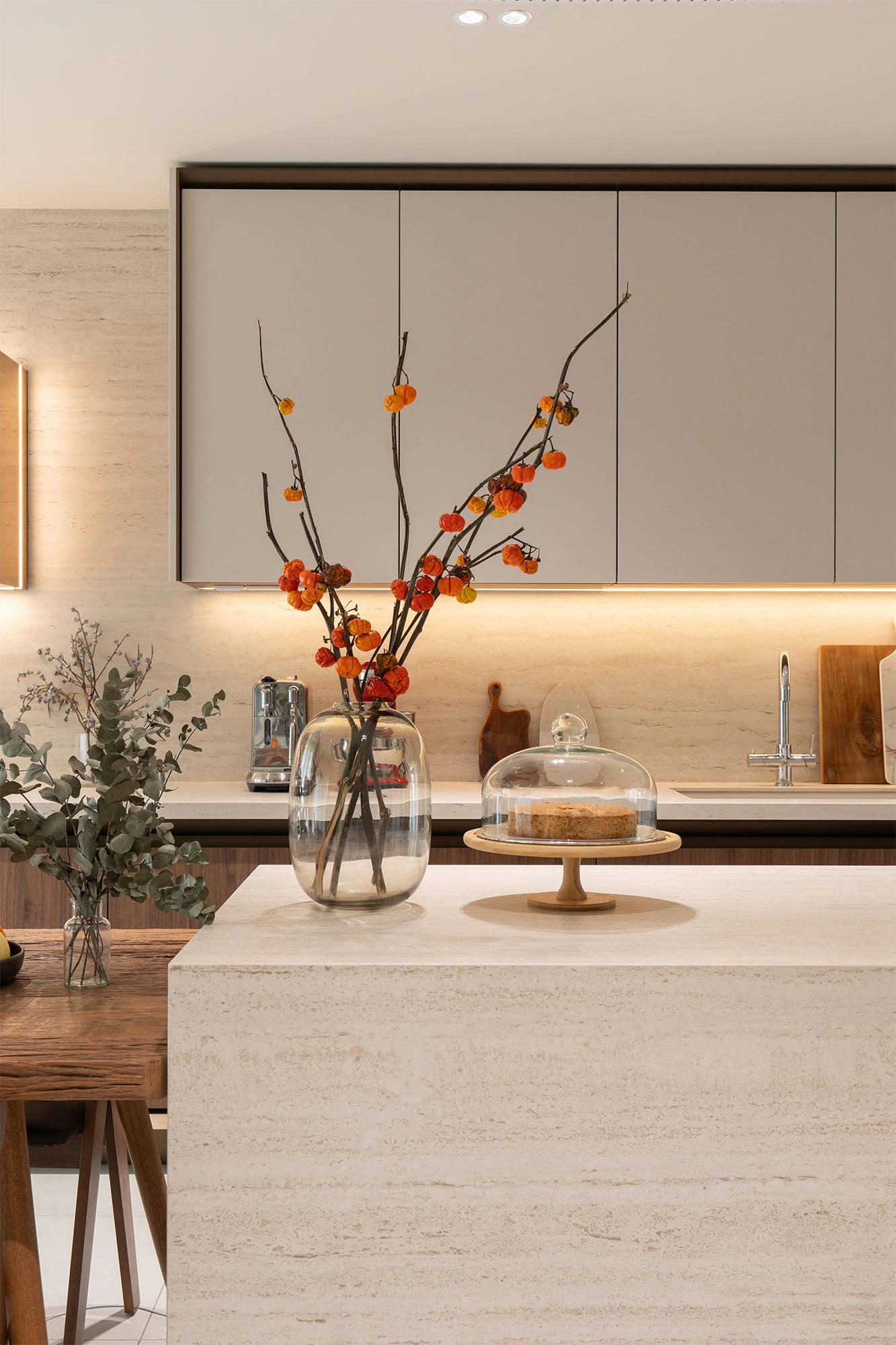 The result is a kitchen in neutral tones that conveys serenity. “I wanted it to be welcoming and relaxing, with soft neutral tones and a warm colour palette. I also knew that I wanted dark woods rather than light ones,” says Red, reflecting her desire to create a space that was both elegant and functional.