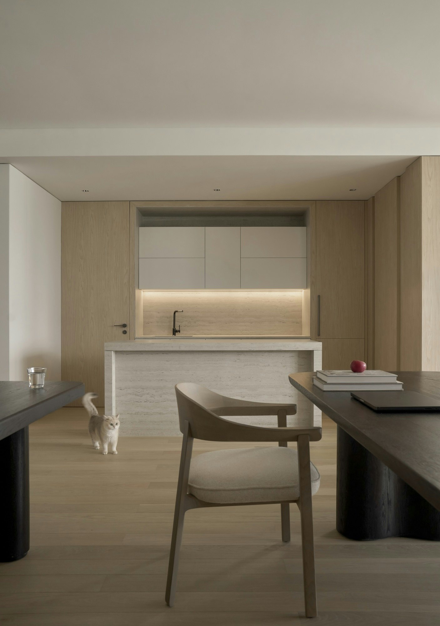 “The most remarkable feature of this residence lies in its silence: a calm that doesn’t stem from absence but from intention,” explain TQH Architects. “We created a spatial rhythm through continuity: uninterrupted planes, minimal transitions and a palette of soft, warm materials. Dekton played a key role in unifying the kitchen, pantry, bathroom, flooring and cladding into a unique and fluid experience.”