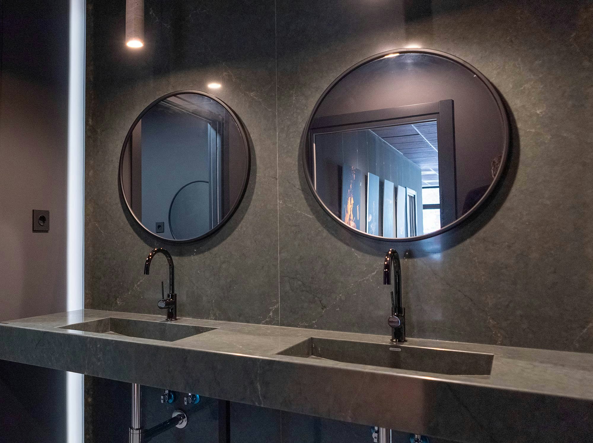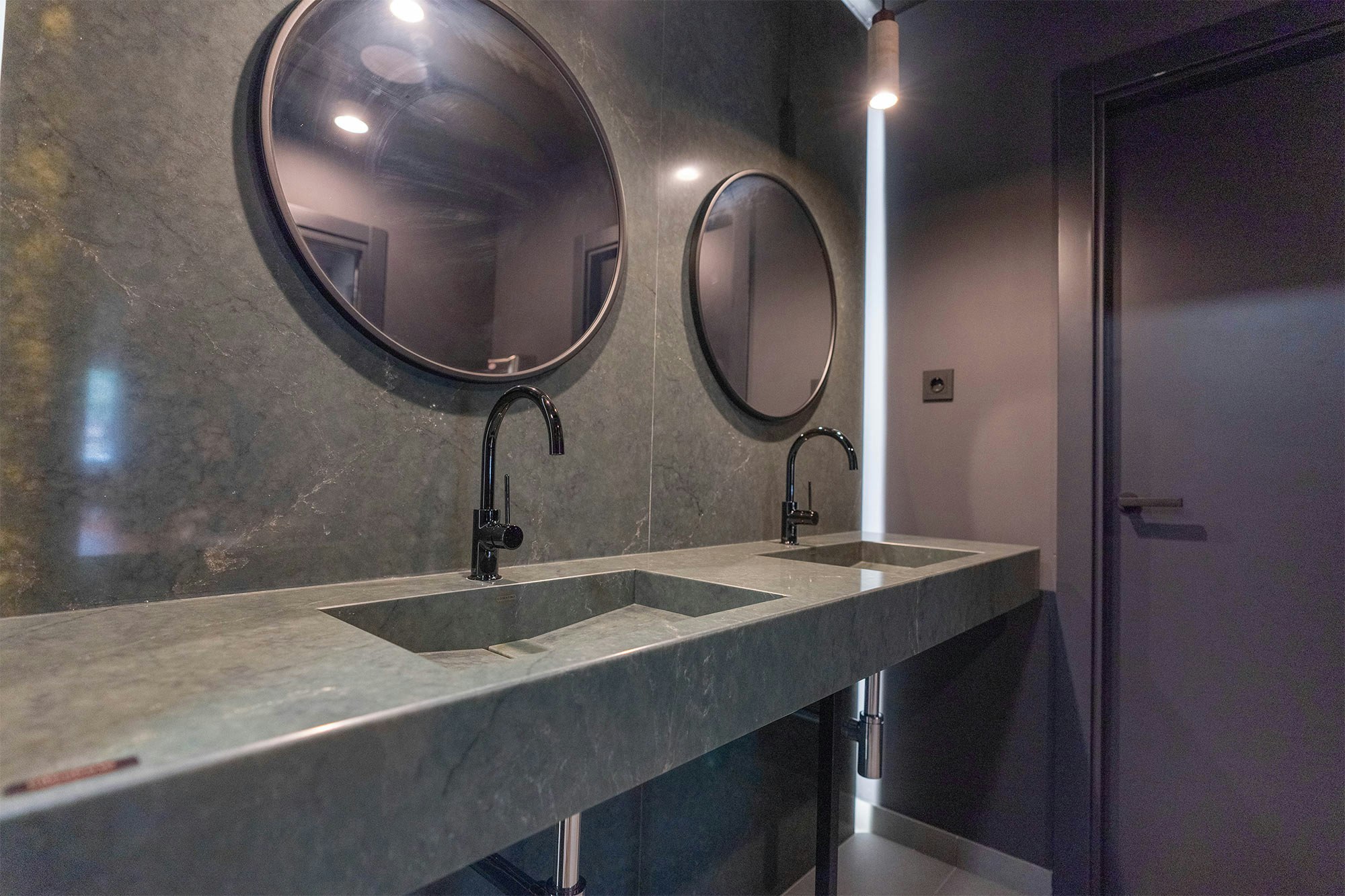 The beauty of green marble on walls and washbasins