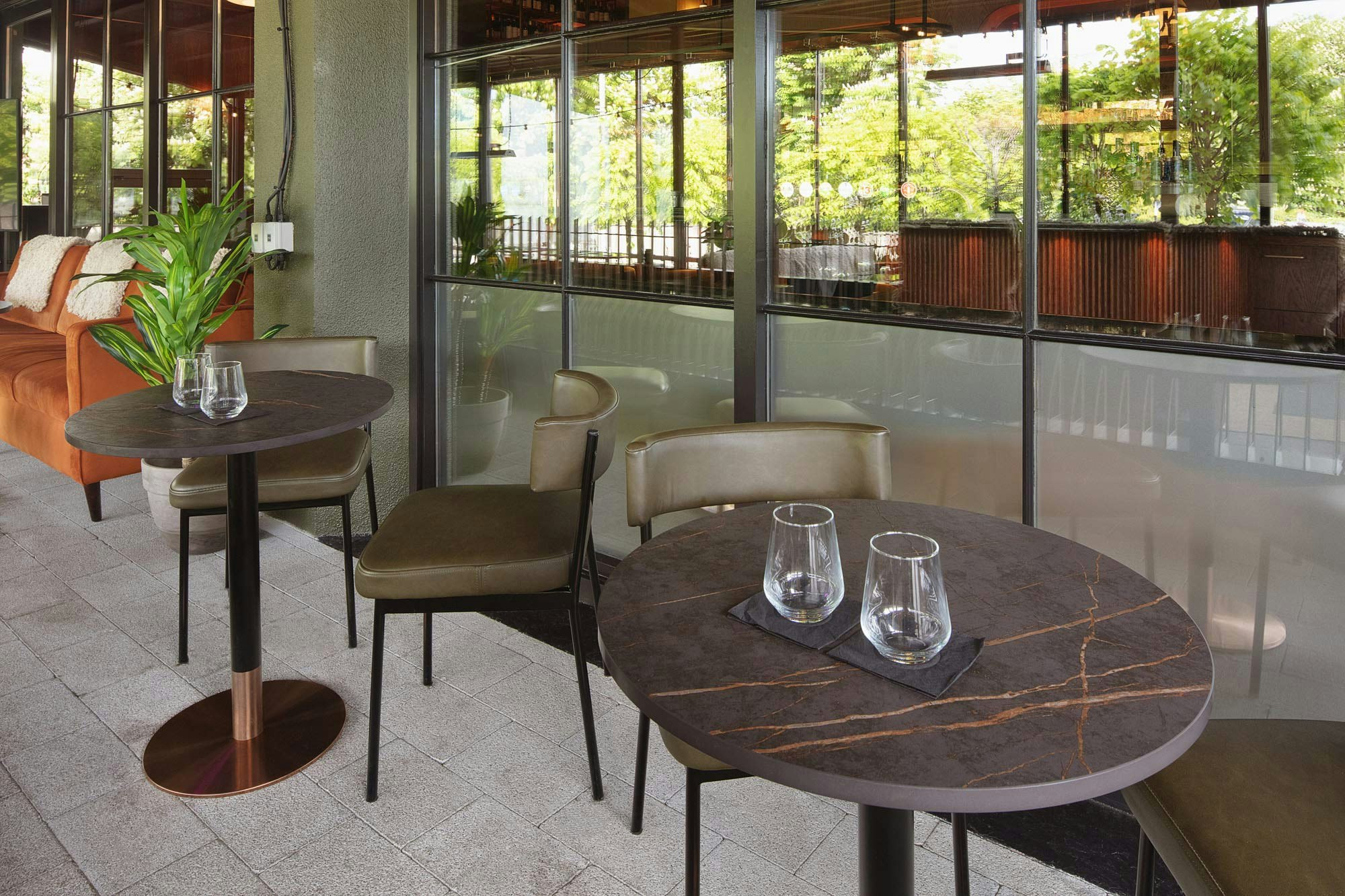 All this has resulted in a very sensory interior décor, as Kate pointed out at the outset: “We were clear that we wanted the design to distinguish all the separate areas: the terrace, the cocktail bar and the restaurant. But at the same time, we wanted all the areas to have the same feel regarding materials, such as the Dekton tables” Kate mentions – “I didn’t want each space to look different; we aimed to create a continuity that links all the spaces together.”