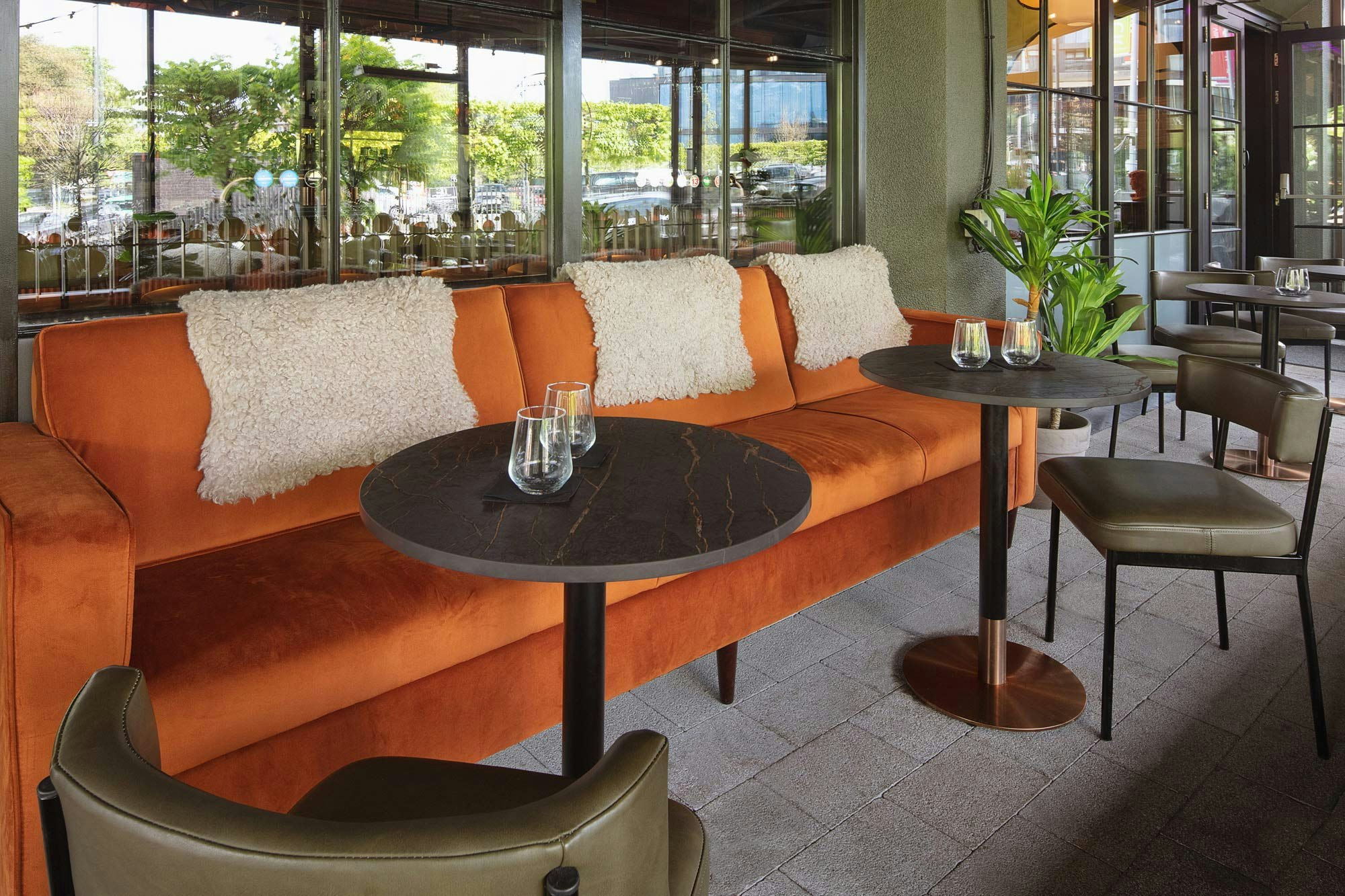 Its interior design's main inspiration comes from the scallop shell. From there, says Kate Hartley (KHD), everything else followed: the shape of the roof, the terracotta and copper tones… “Orange tones stimulates the appetite, has an exhilarating effect and indicates informality. We wanted our guests to feel relaxed and have fun".