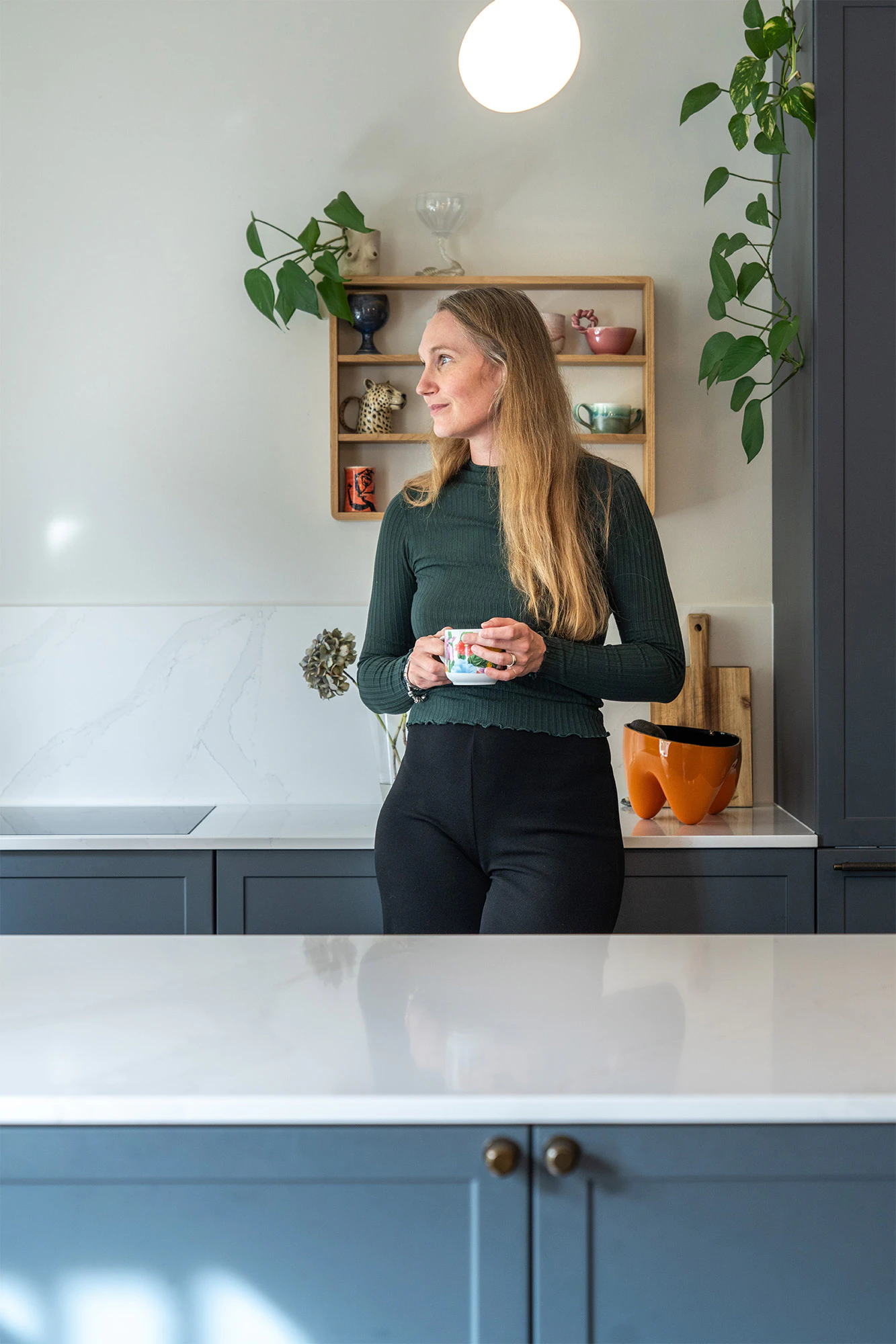 Designer and influencer Susanne Rauff, @ved.lejlighed, decided to give her cool green kitchen an elegant contrast by using Silestone Calacatta Gold “for its warm tones”. “The island is the heart of our kitchen and the area where many family activities take place, so it is really wonderful that Silestone can stand up to everything.”