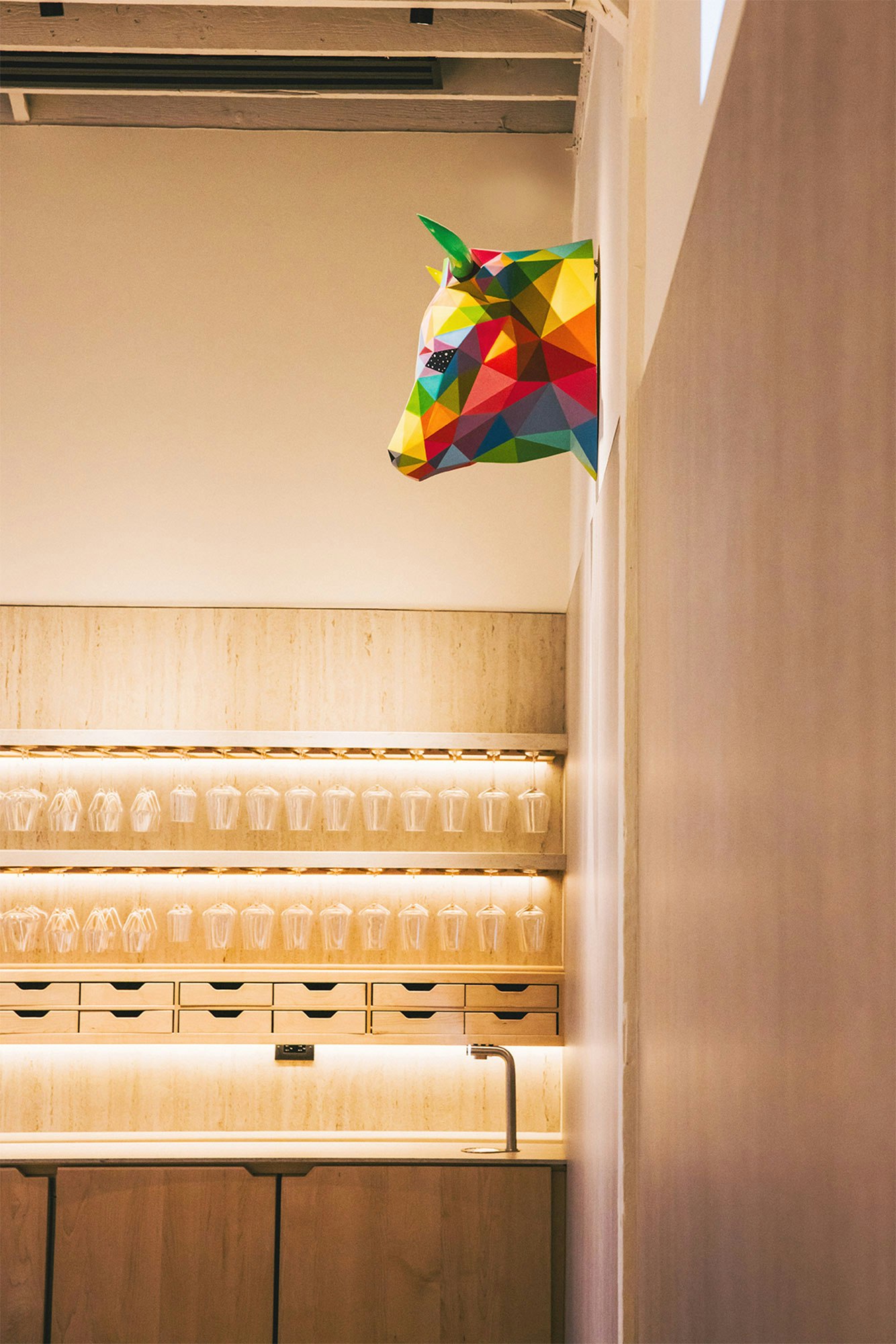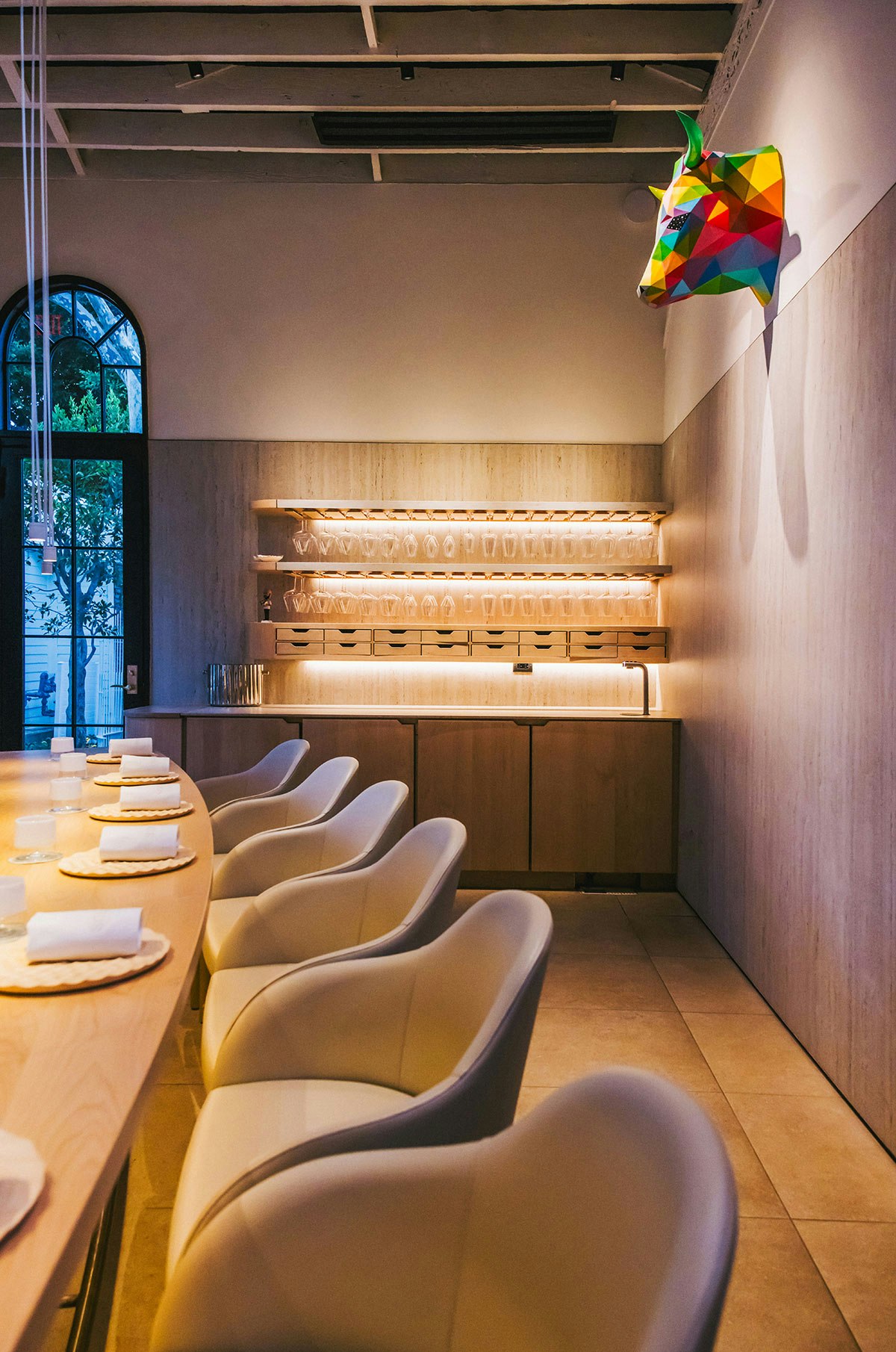 A particular emphasis was placed on noble materials like wood and stone crafted with ancient techniques to create a space that feels like home yet transports diners into an immersive experience. Art is ever-present, a reminder of human creativity and the pursuit of something greater.