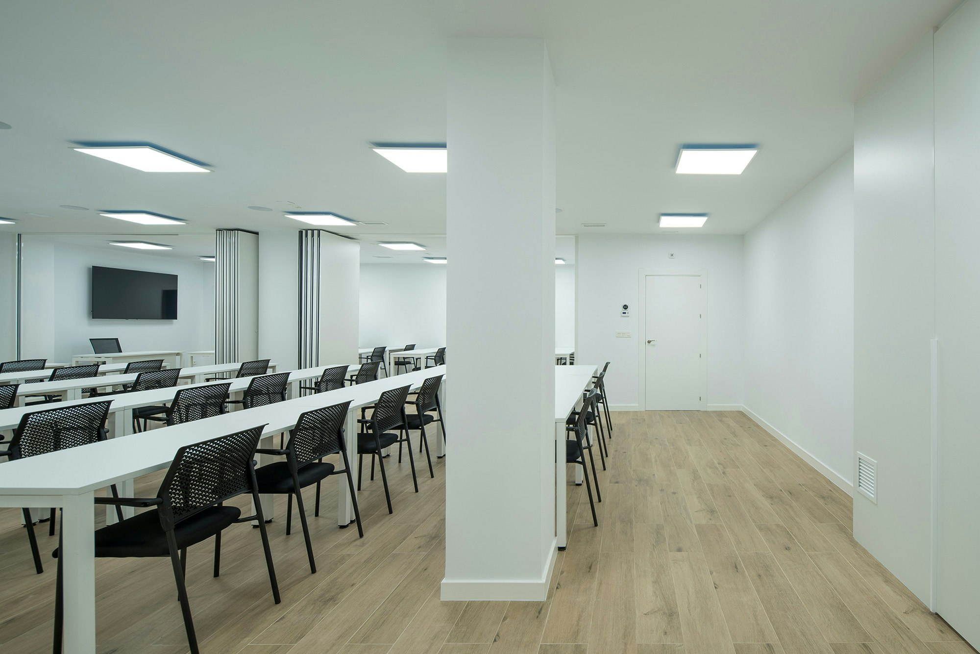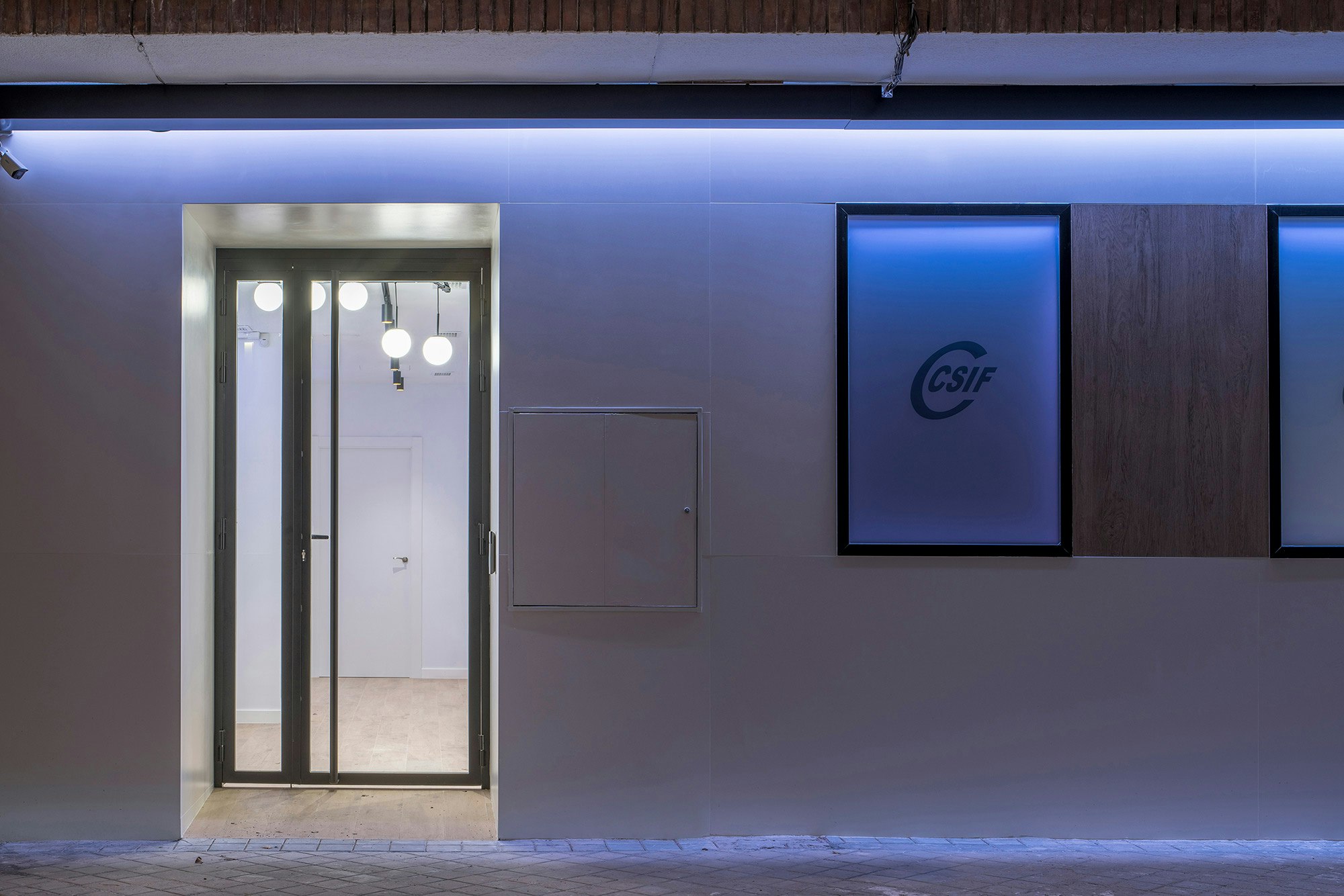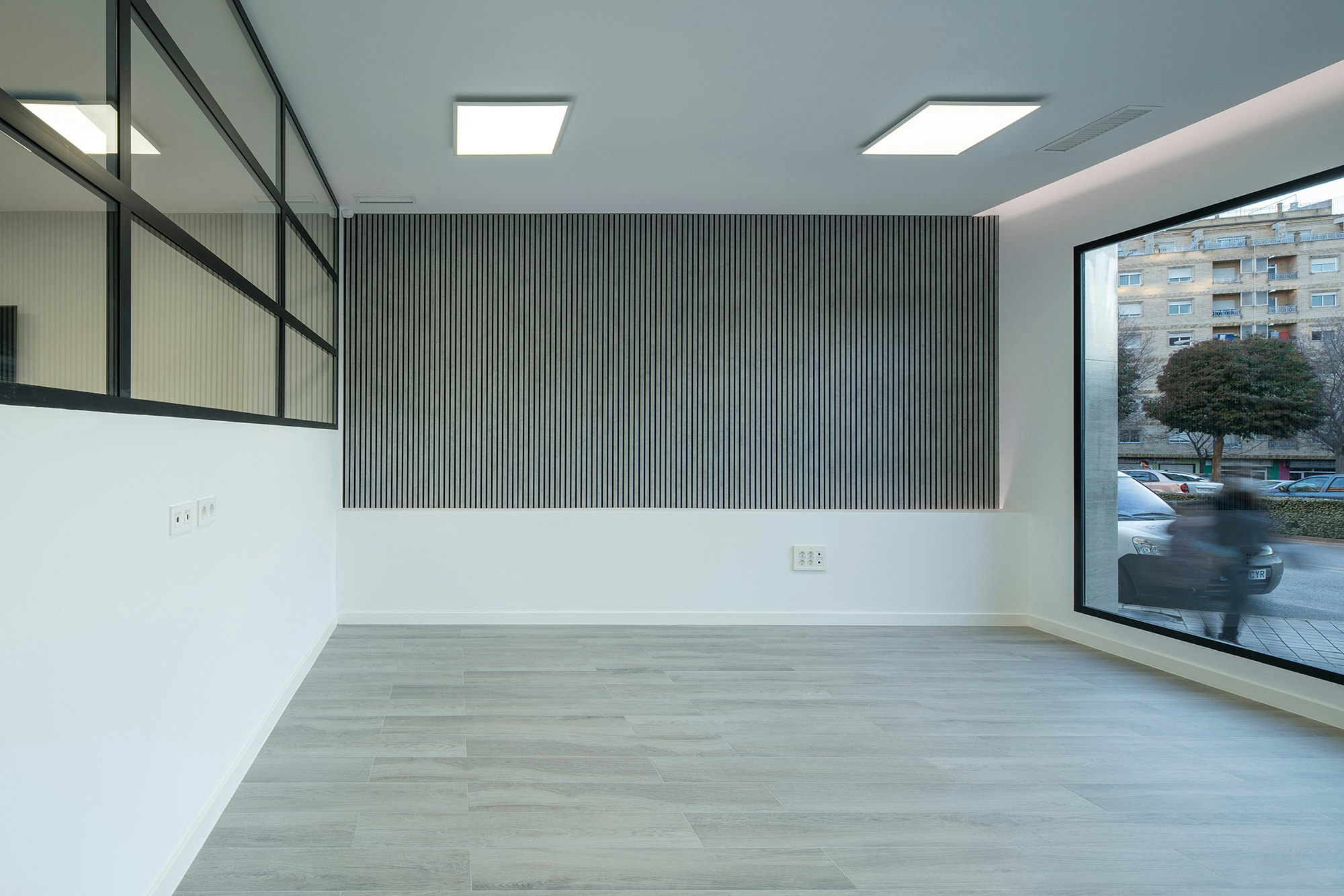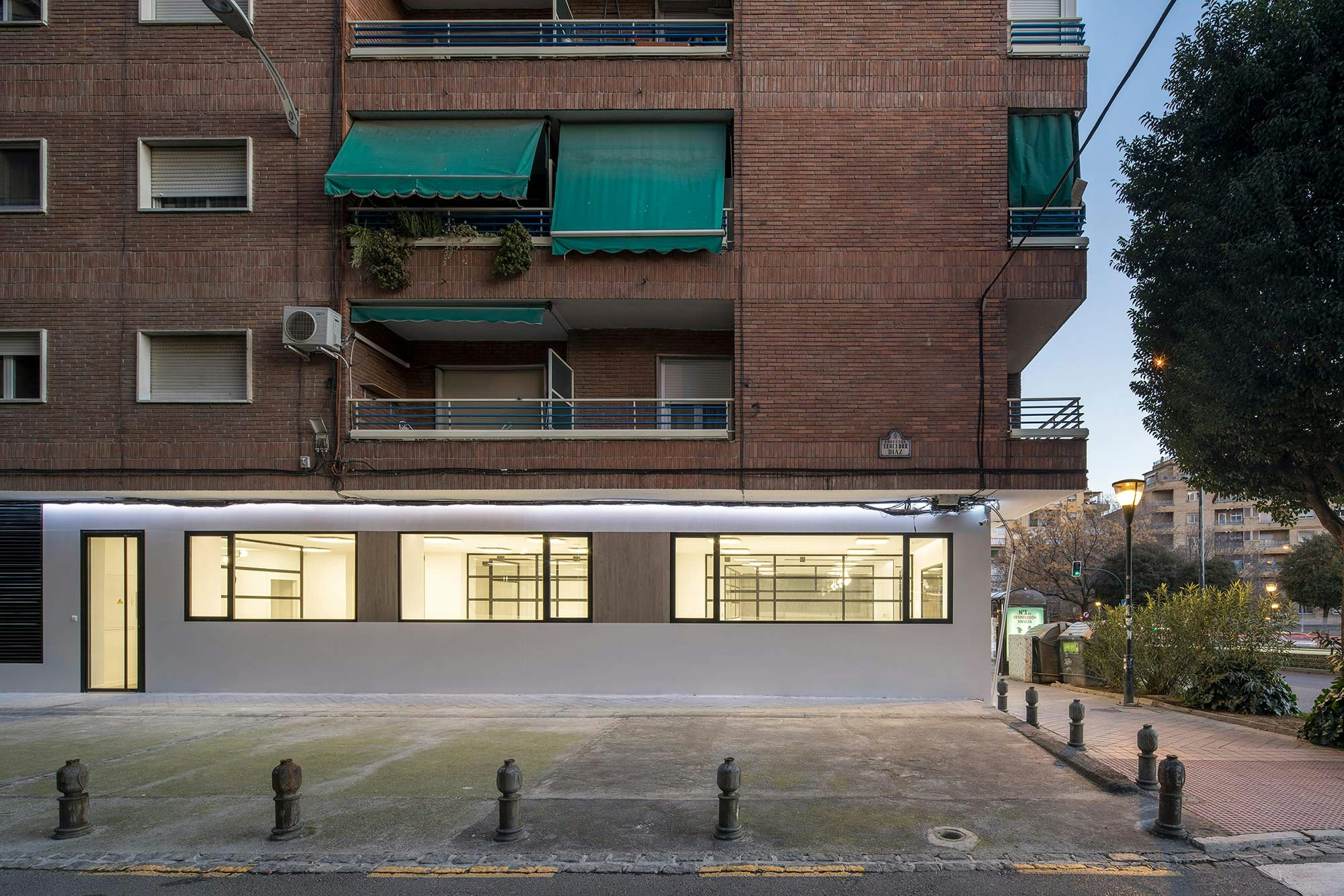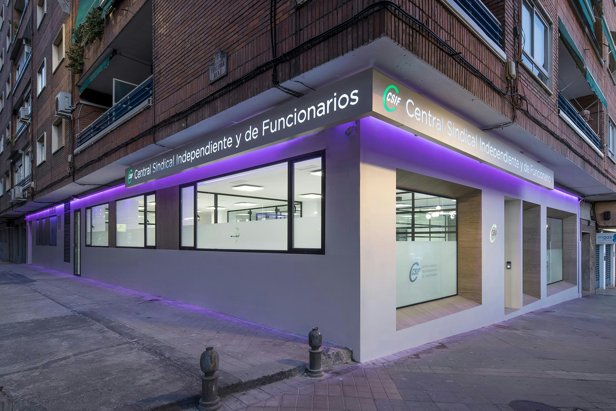 The modern offices and training rooms of the regional headquarters of CSIF (Independent and Civil Servants’ Trade Union Centre of Spain) in Granada covers almost 5,382 square feet on the ground floor of two adjoining buildings in the heart of the city centre. The flexible and versatile interiors have been designed as open-plan spaces, with plenty of glass walls and a white and ecru colour range that promote a relaxed and calm atmosphere, ideal for this workspace. A design that is seamlessly integrated with the exterior, where the architects Gallego Projects have developed a balanced façade, with large apertures allowing plenty of natural light to pass through and connecting the interior with the street.