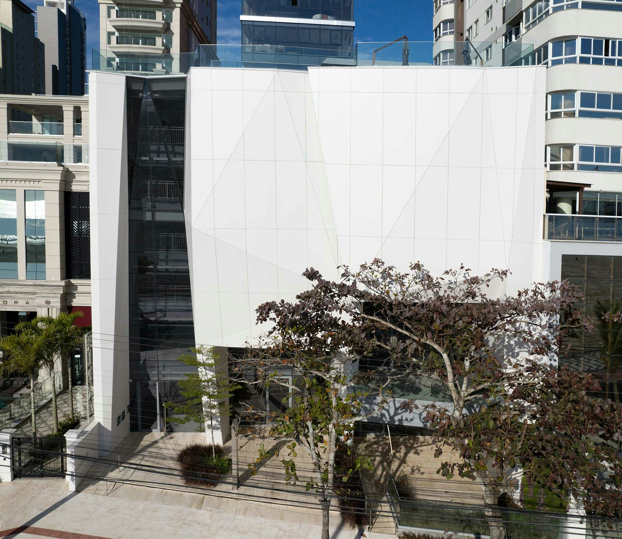 The choice of Dekton as the facade material was defined due to the versatility of the material, which allowed the execution of large plans, needs that the architectural project required to enhance the polished shape of the base. The durability and easy maintenance of the product also influenced the choice, not just thinking about creating something beautiful, but because it is functional and lasts for a long time.