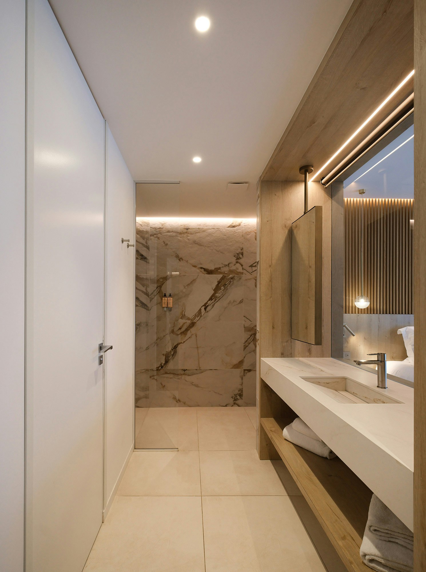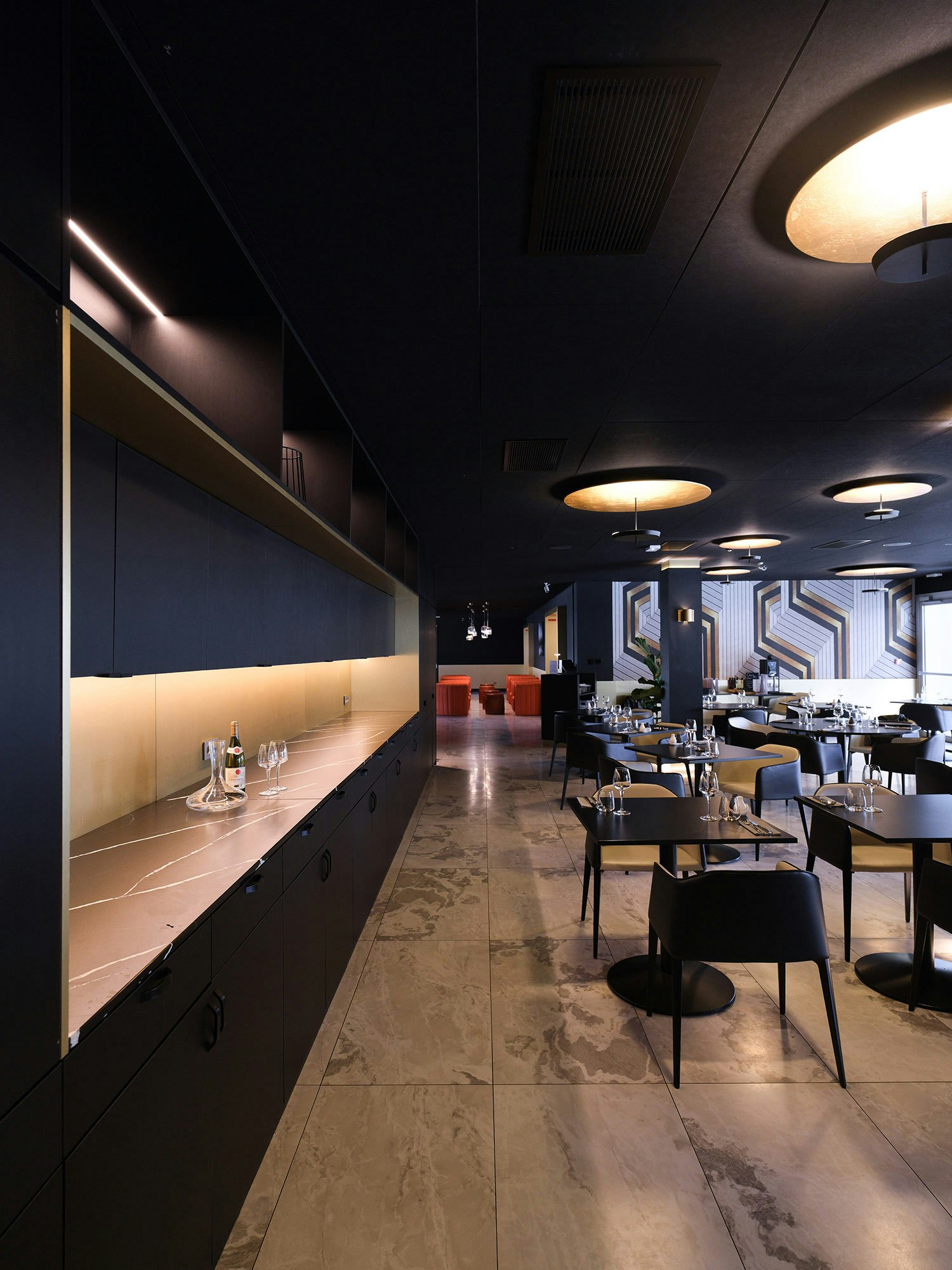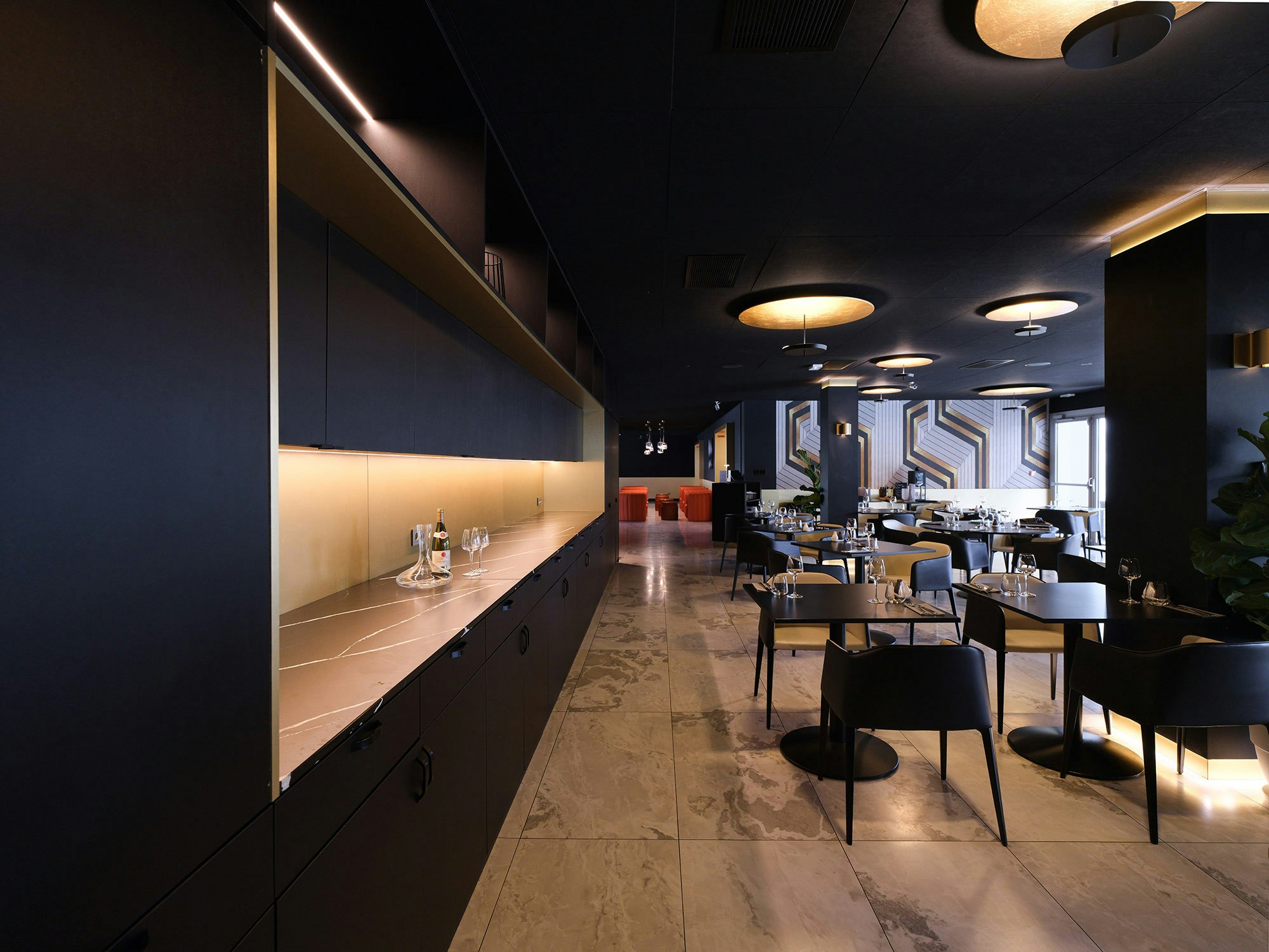 Attention to detail is also found in the hotel bar, where the Silestone Eternal Marquina is featured and brings a touch of sophistication. This elegant material, while offering a contemporary design, has the advantage of being easy to clean, ensuring impeccable service at all times.