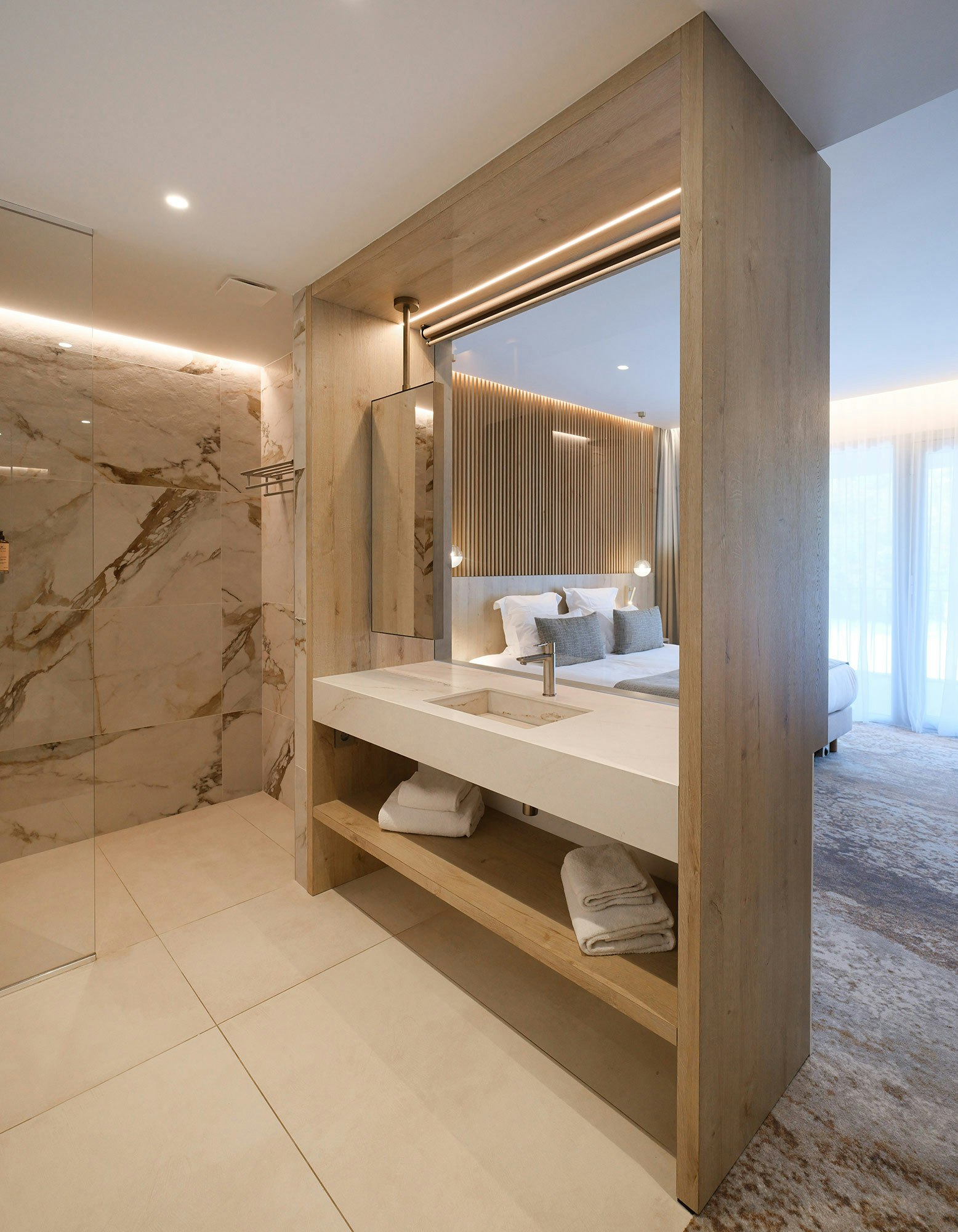 The story of La Villa Castellane begins with a vision: that of creating a refuge where refinement and well-being meet harmoniously. This vision is taking shape thanks to the expertise of the Atelier Xy studio created by Audrey Marasse & Didier Le Guen, this studio is a true reference in the field of interior design. Driven by a passion for excellence and innovation, Studio Atelier Xy brought this vision to life using exceptional materials such as Dekton and Silestone as well as cutting-edge techniques.