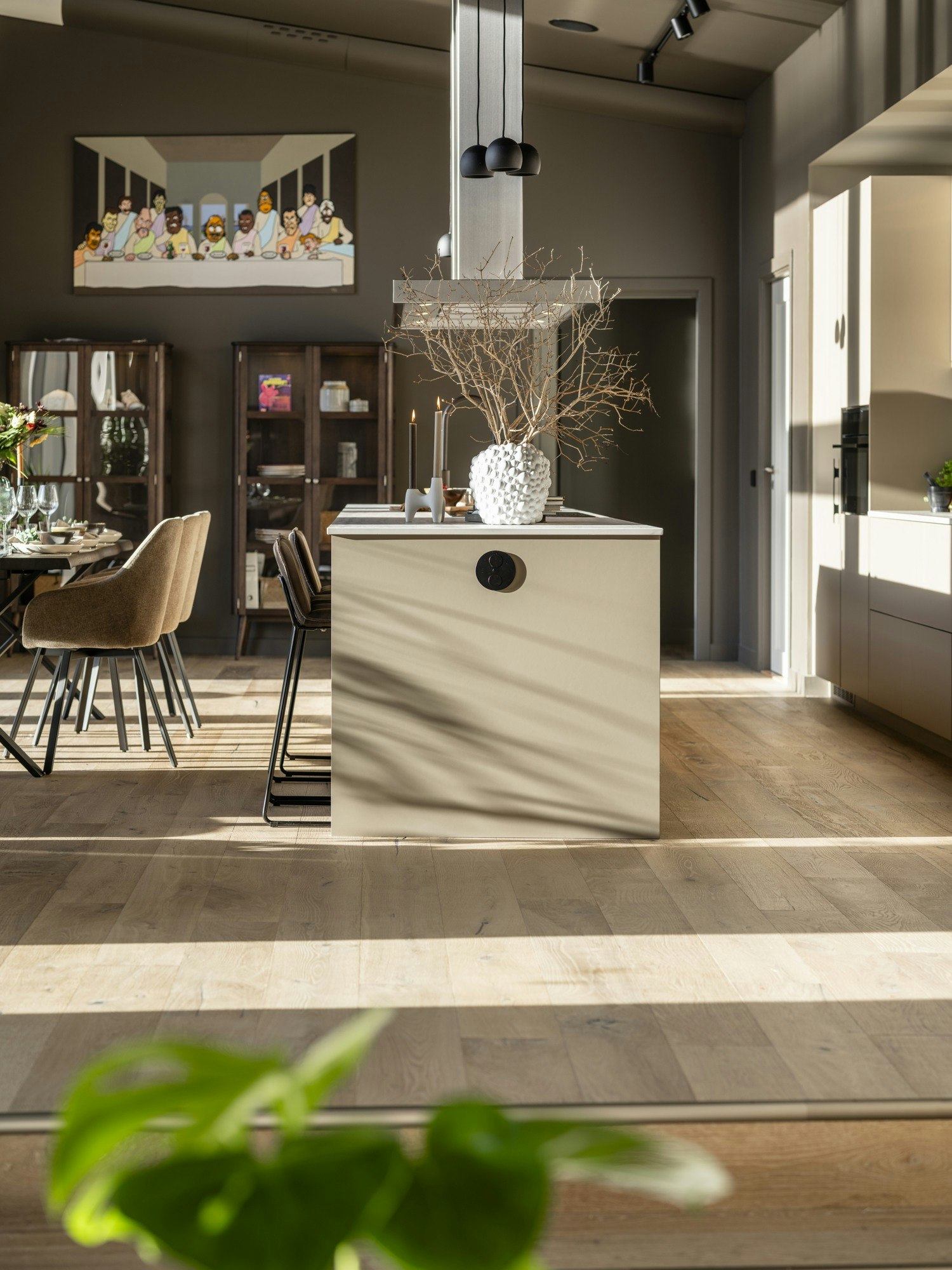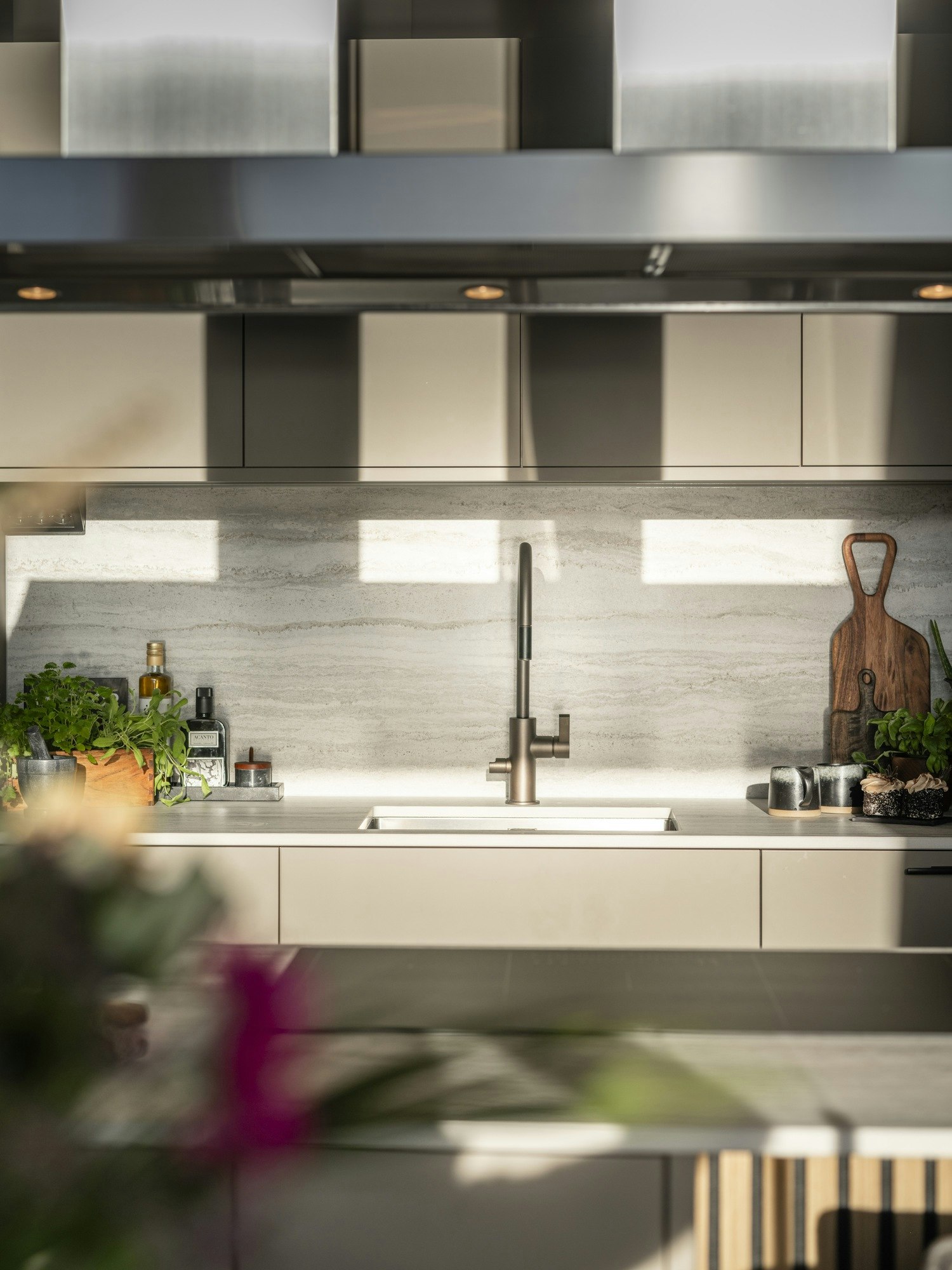 Marko was clear from the start when choosing the furniture: he fell in love with the beige FENIX finish from Ballingslöv, a classic matt tone that brings visual serenity. The designer describes it as “a classic colour and durable furniture… with a unique silky matt finish that, with its straight lines, creates a calm and understated impression.” Alongside Electrolux appliances, the kitchen was ready to combine design with plenty of culinary activity.