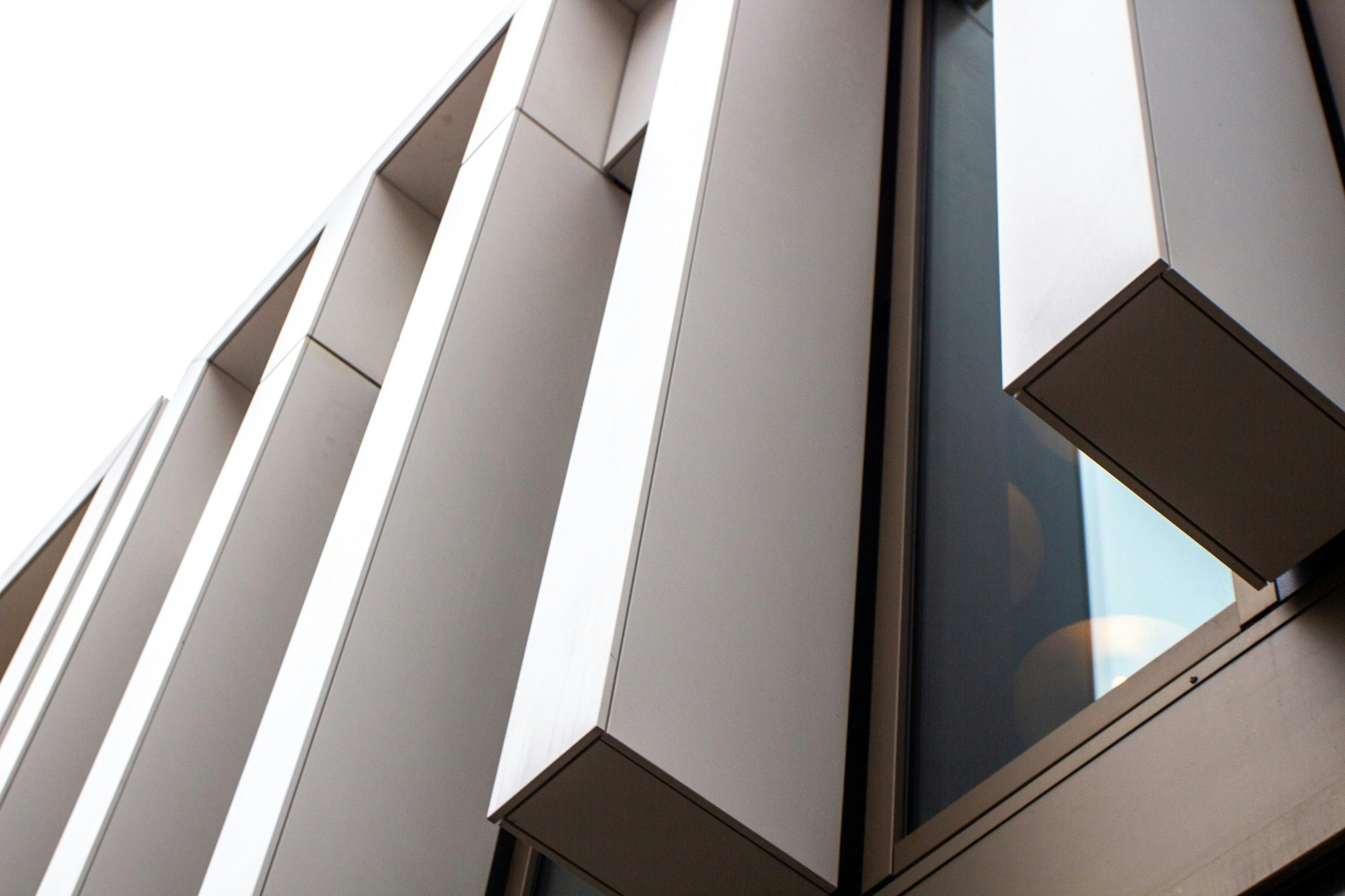 The most striking architectural and decorative feature is the subtle interplay of horizontal and vertical lines on the façade, along with the twisting of vertical elements that scatter the visual rhythm outward into the city. This design was inspired by post-war buildings, characterized by a rhythm of orthogonal elements carefully detailed.