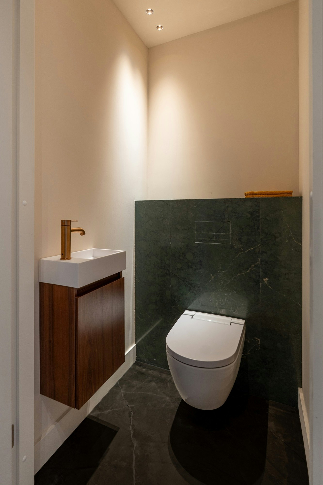 The interior plan was designed integrally from the start, including lighting and custom solutions. By designing materials, lighting, and layout simultaneously, a home has been created that combines warmth, depth, and a high-end appearance.