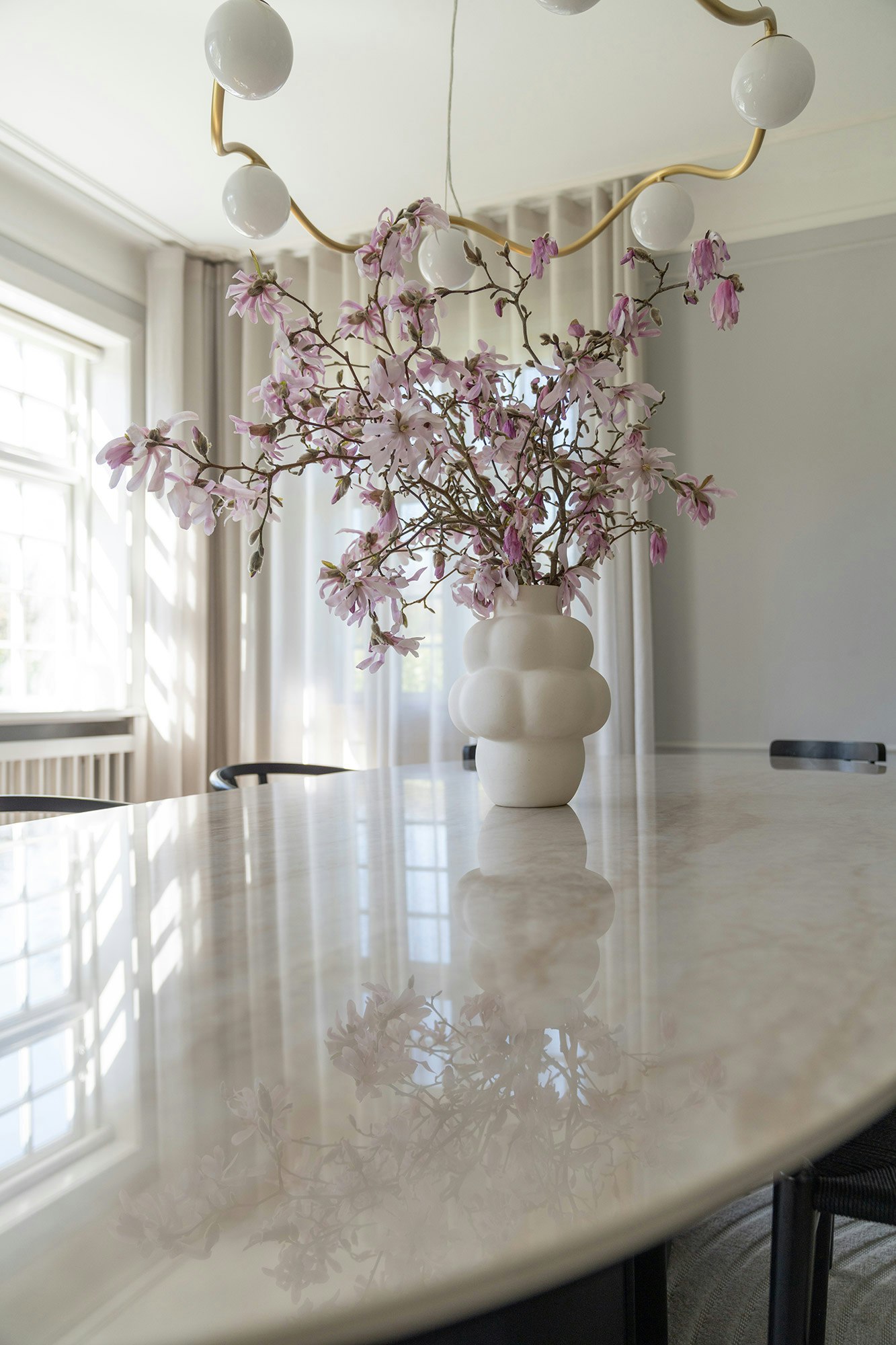 Creating a new atmosphere in the bright dining room was Christine Egholm's starting point when she got the idea to update her beautiful, black-lacquered dining table with the characteristic plinth from the Danish design company, Skovby - and she succeeded.