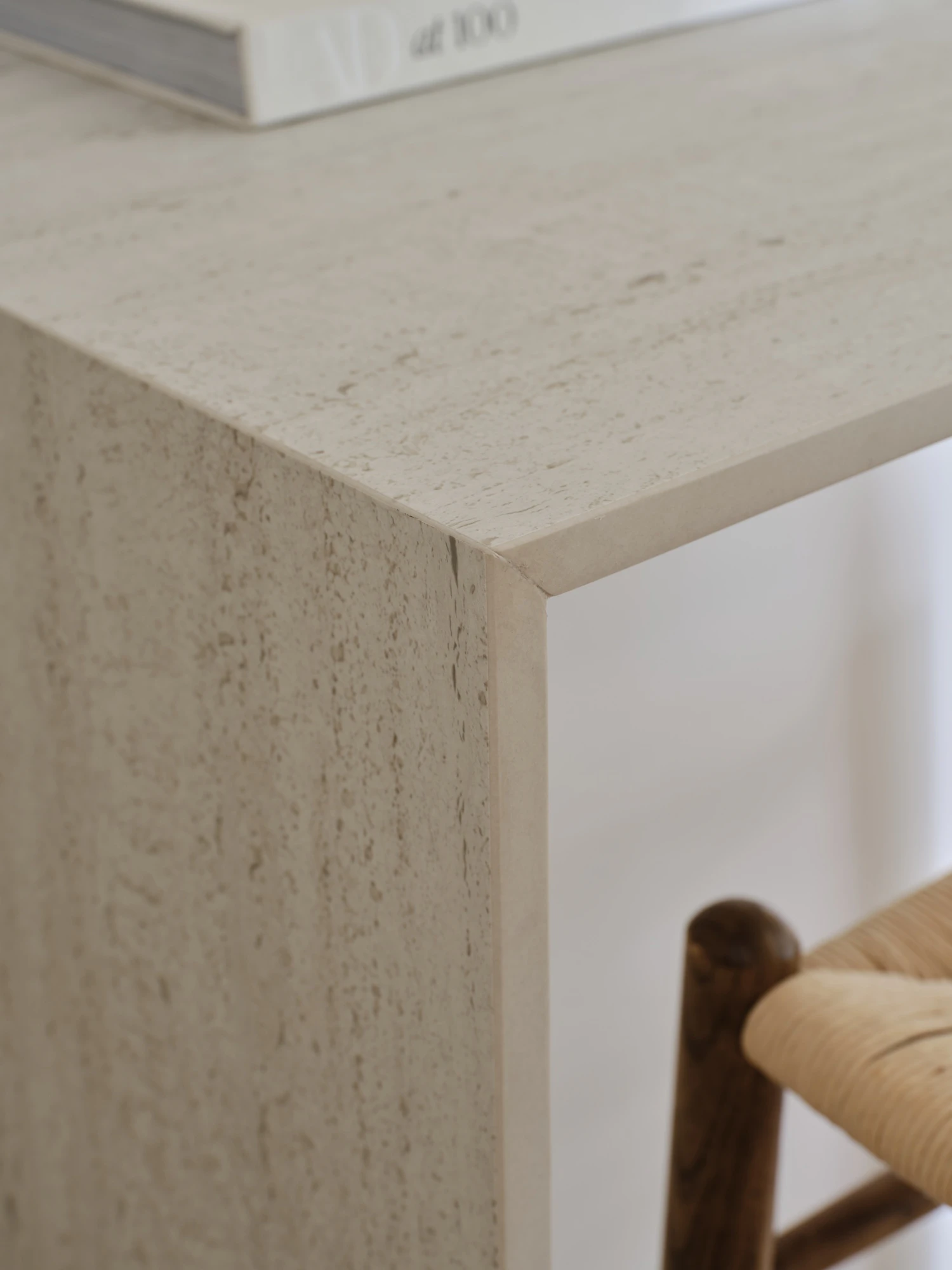 In the kitchen, DKTN Marmorio becomes the main feature, used on worktops and surfaces. Its marble-like appearance with soft veining and warm look introduces a lighter feel to the overall design, visually balancing the finishes used in the bathrooms.