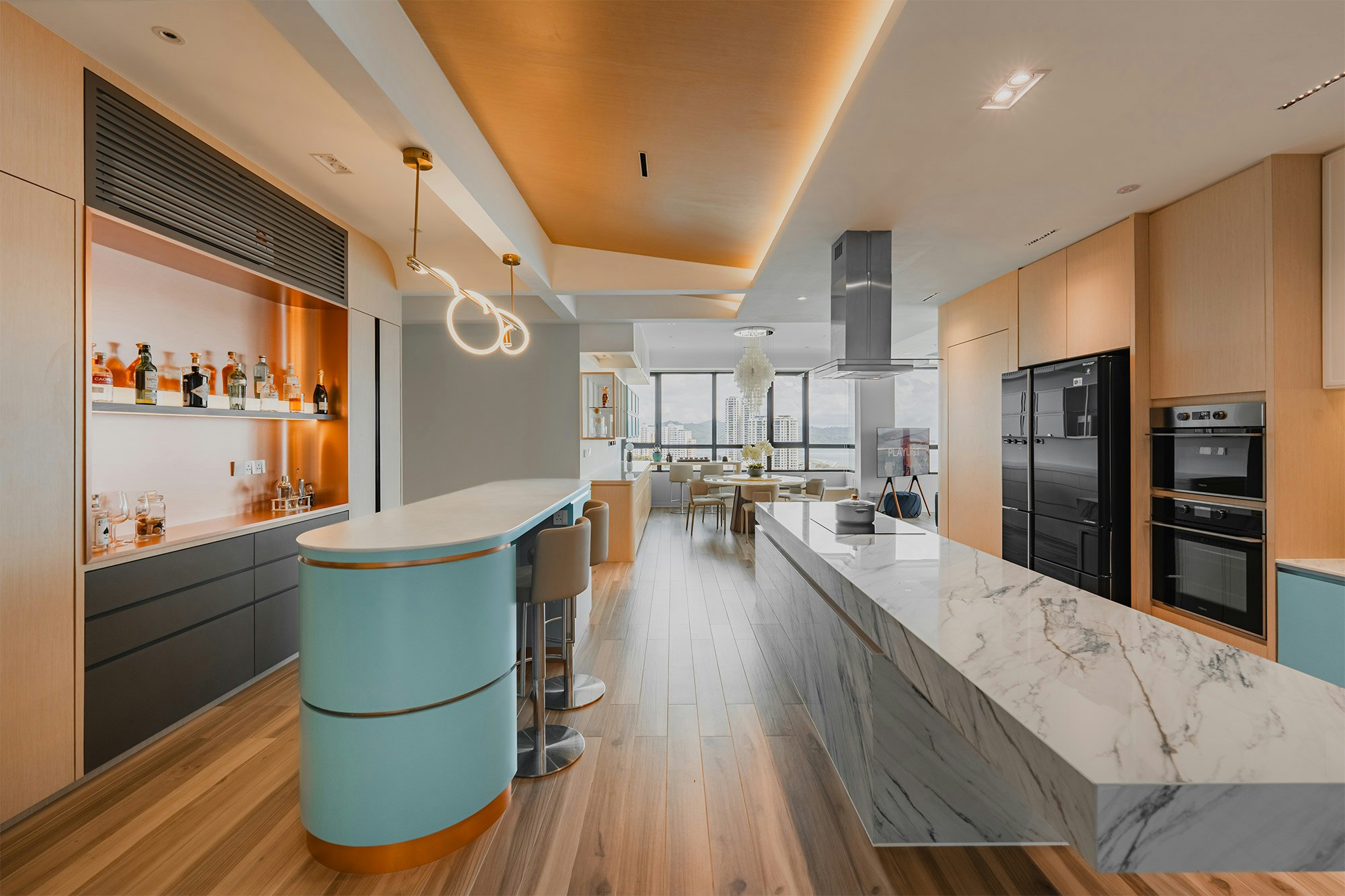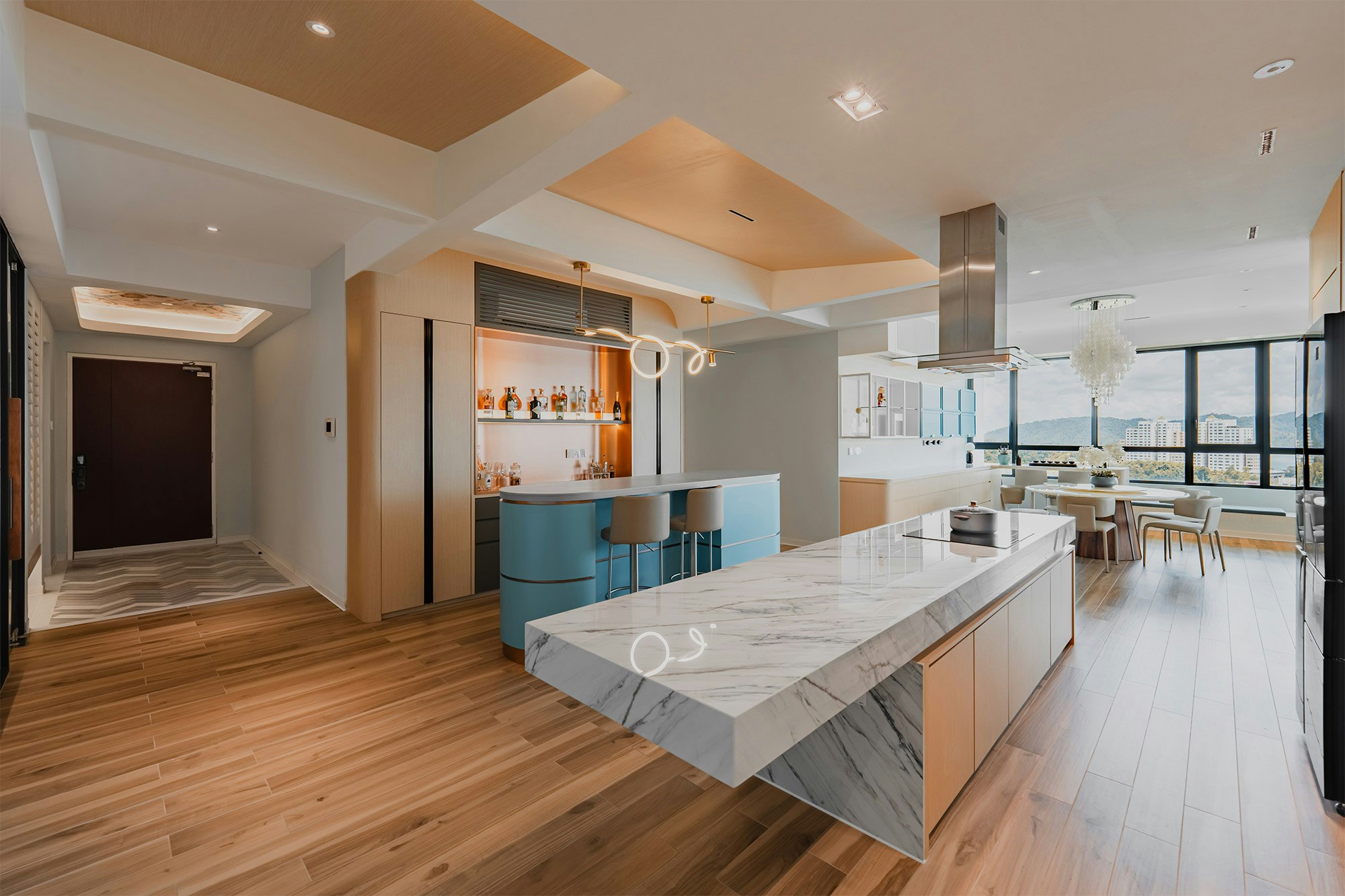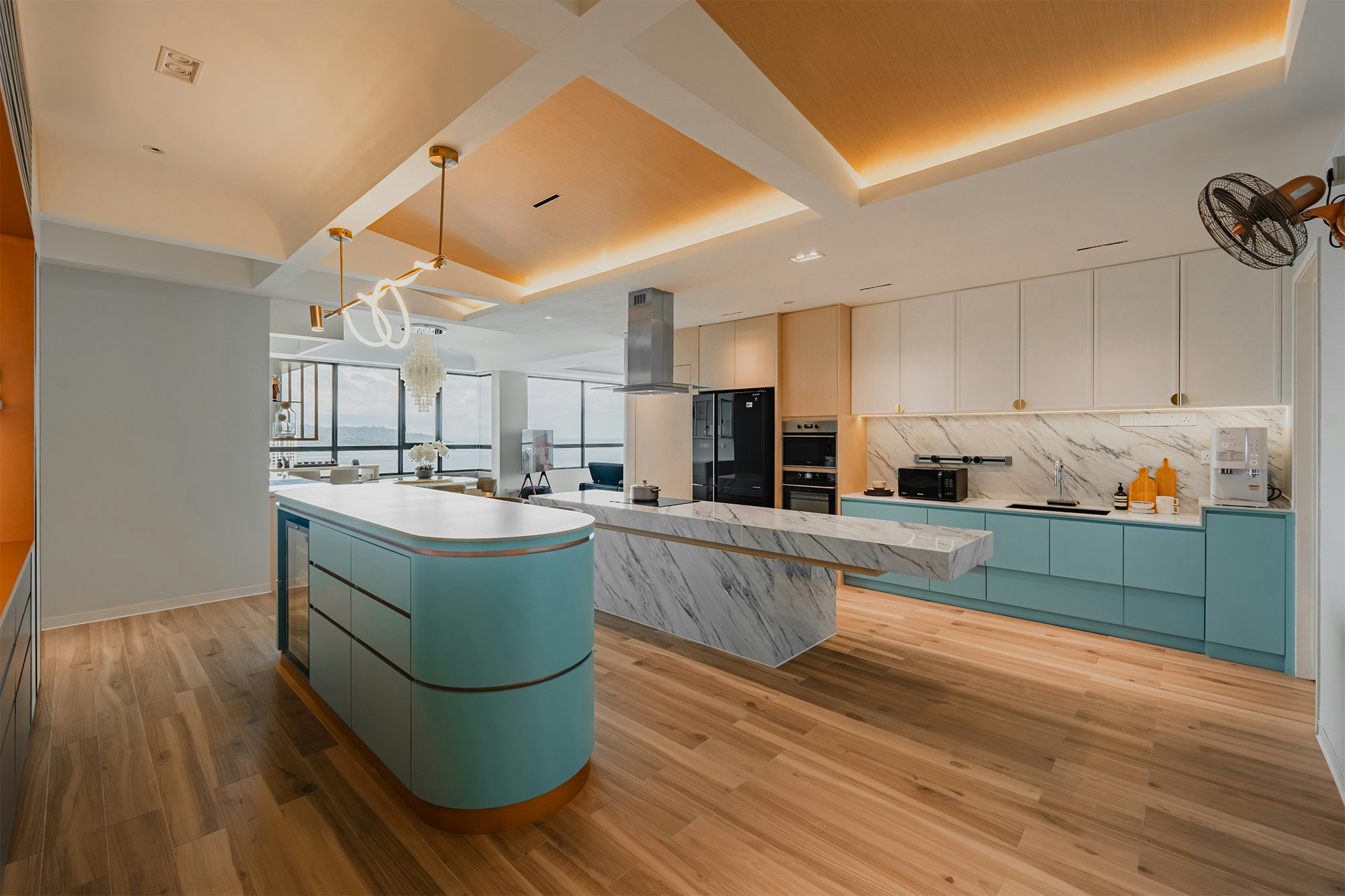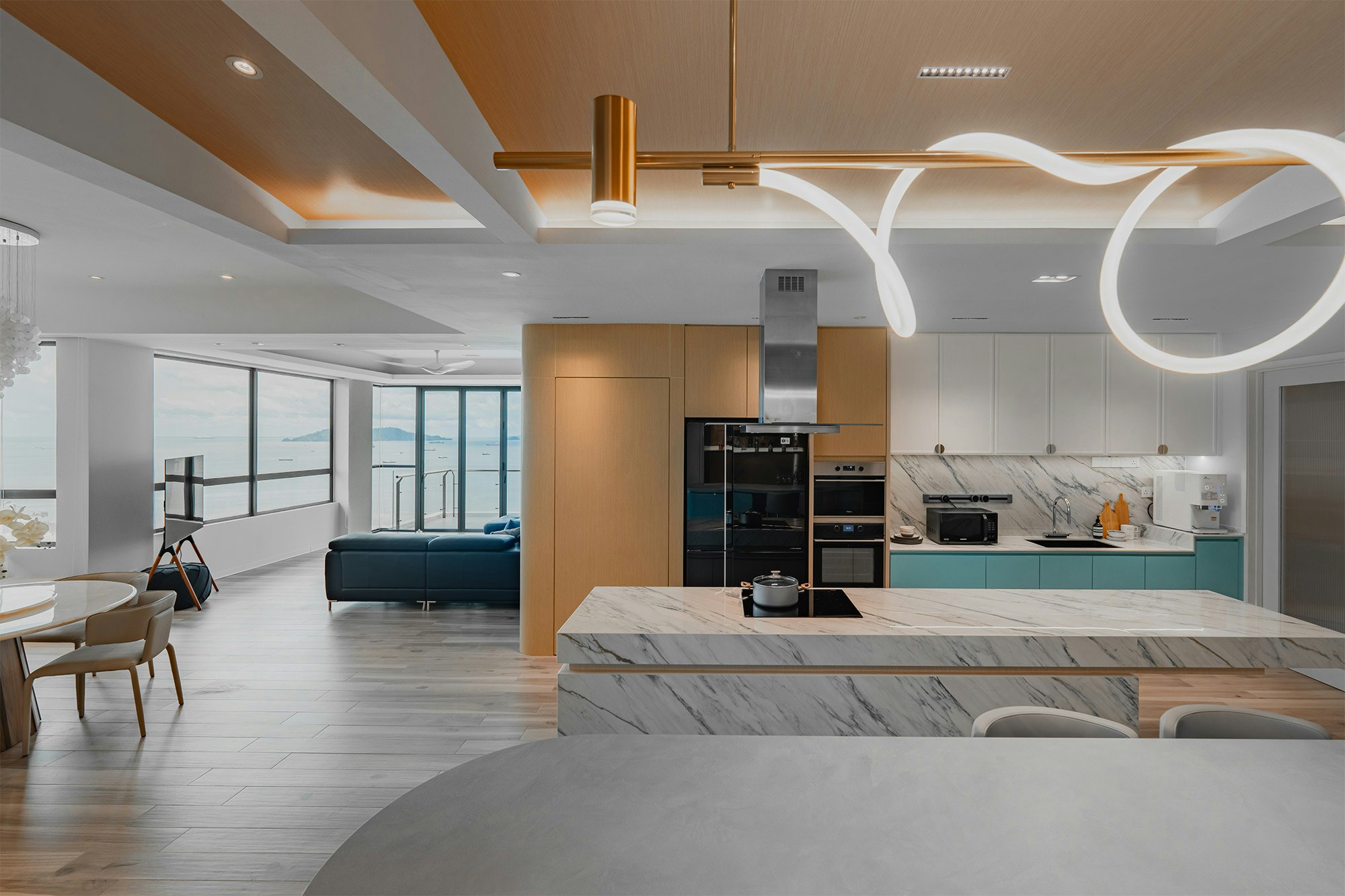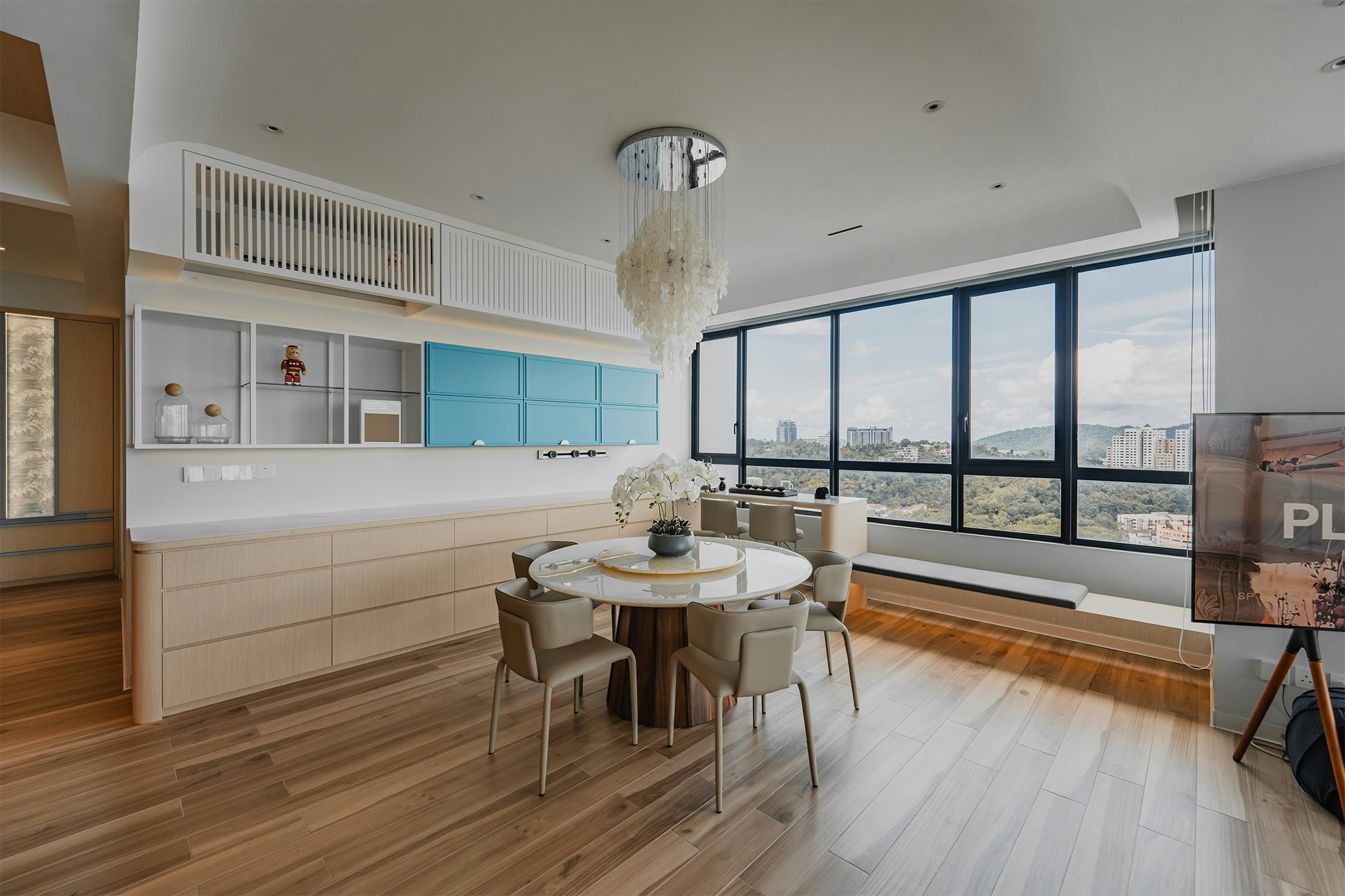 A marine sanctuary where the tranquillity of the ocean meets the charm of chinoiserie. That’s how the designers of MOM Designer House define their latest project: a flat by the sea in the city of Kota Kinabalu (Sabah, Malaysia). A project with a style that blends Asian tradition with the relaxed vibes of the sea, “integrating into the space touches of fantasy that celebrate both cultures”.
