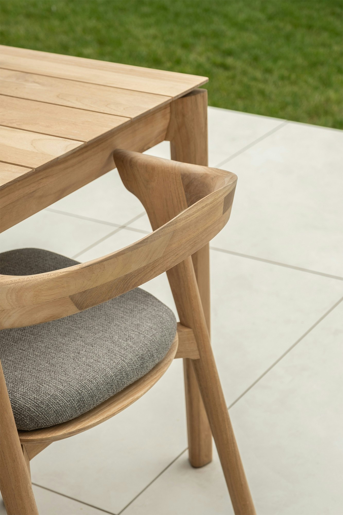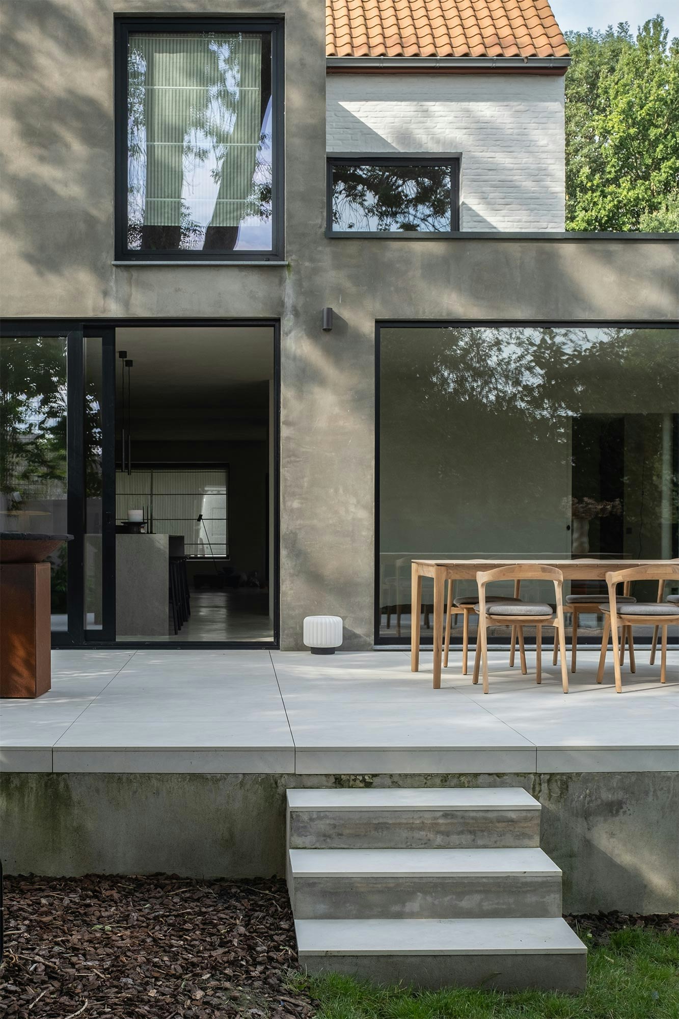 For the outdoor flooring around her home, Sofie chose Dekton Albarium, a light and fresh color that harmonizes with the natural elements of her garden and the modern architecture of the extension. The 50m2 of Dekton tiles give the outdoor space a serene, timeless look.