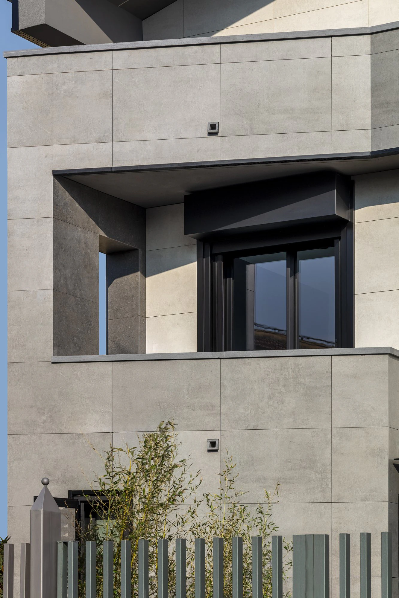 On the building's envelope, Dekton Kreta takes on a particularly significant role. Thanks to its excellent mechanical properties, resistance to UV rays, freeze-thaw cycles, abrasion, and stains, as well as its non-combustible nature, it becomes an ideal solution for contemporary façade projects.