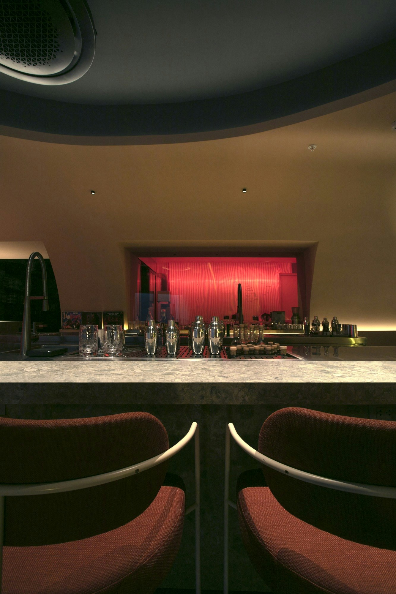 The space avoids the usual bar iconography. No exposed bottles or visible brands: instead, pieces crafted by local artisans are part of the service.