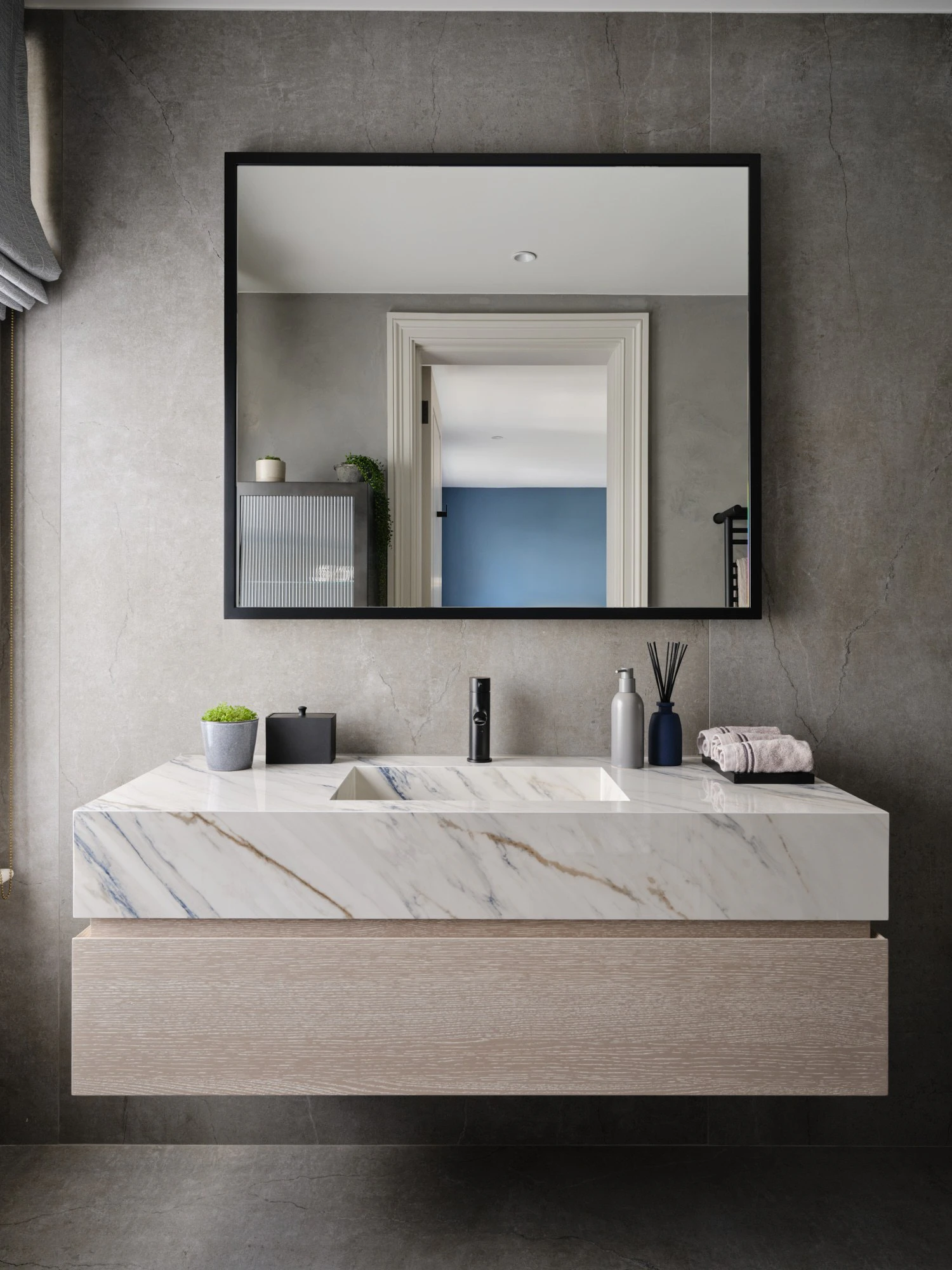 The use of Dekton ensures wear-resistant surfaces that are easy to maintain and suitable for wet and high-traffic areas, while Sensa introduces the beauty of natural stone with protection designed for everyday life. This combination allows the home to function without ever compromising on a polished and cohesive appearance.