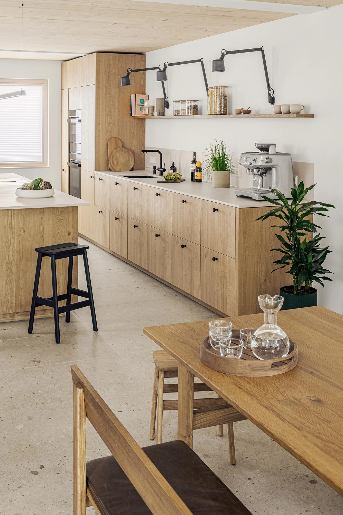 „Die Qualität und der Besuch im Showroom von Cosentino waren der entscheidende Faktor“, erklären sie. Das Ergebnis ist ein eleganter und taktiler Raum, der zum Leben einlädt. Denn ja, in dieser Küche wird gekocht, gespielt, Hausaufgaben gemacht und Kindergeburtstage gefeiert. „Sie ist sehr robust, leicht zu handhaben und vor allem für uns als junge Eltern sehr kinderfreundlich. Wir haben keine Sorgen und sogar kleine Partys in der Küche veranstaltet.“