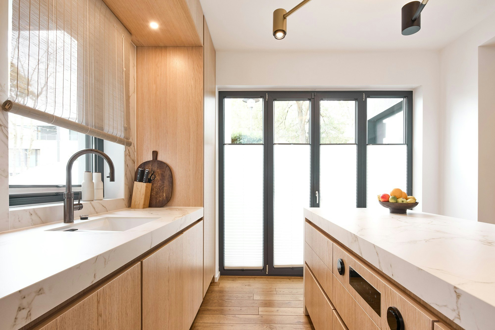Eine offene Küche, in der das Material im Mittelpunkt steht