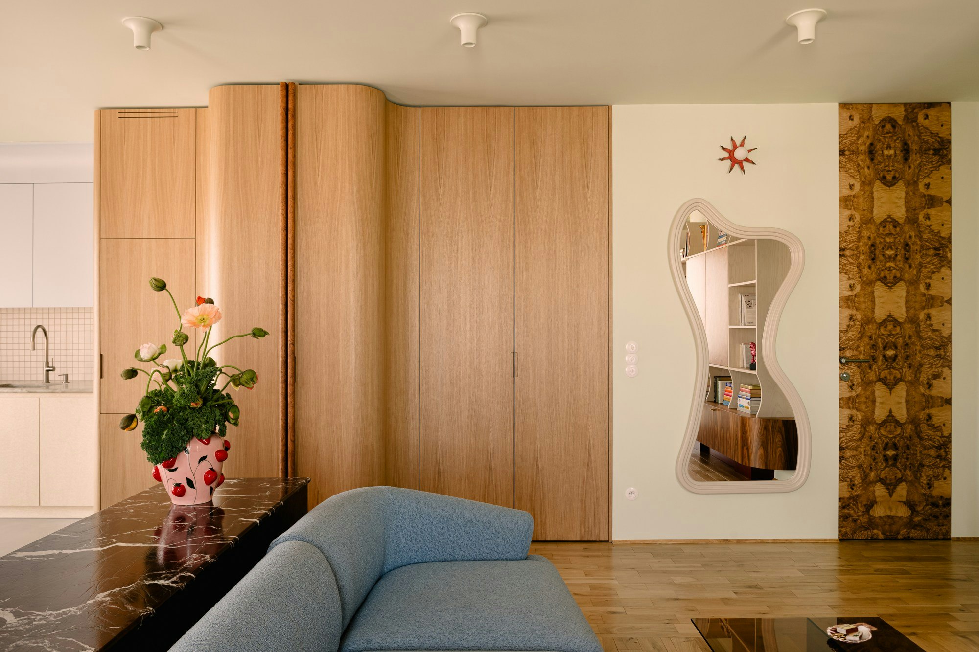 "Throughout the entire conceptual process, Michał personally inspected every stone – this allowed us to find a common language around textures and colors, while also introducing personalized and timeless elements into the interior," adds the architect.