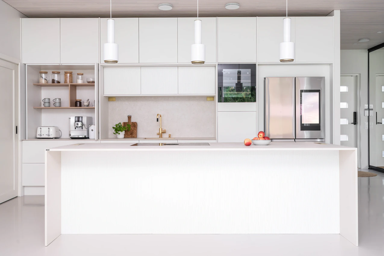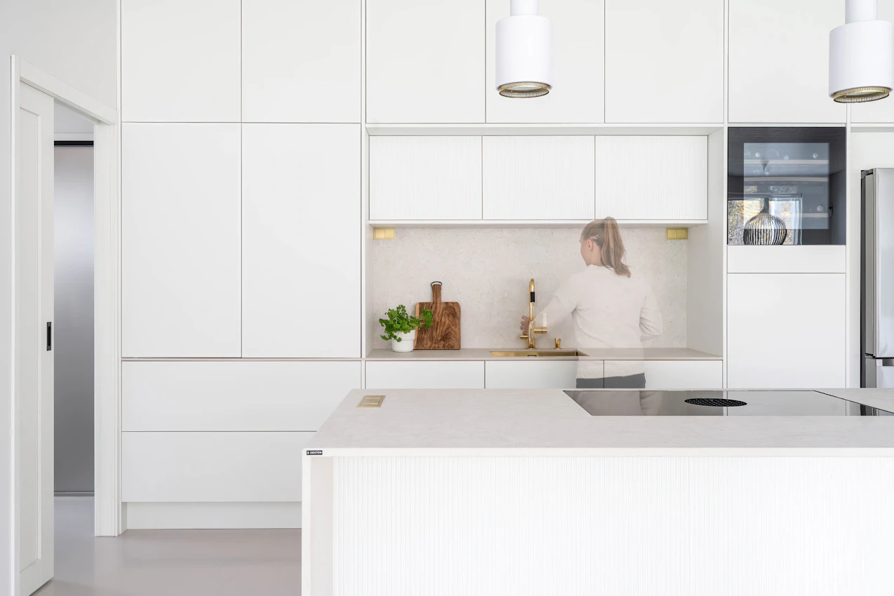 Dekton Nebbia as the foundation of a refined and welcoming kitchen.