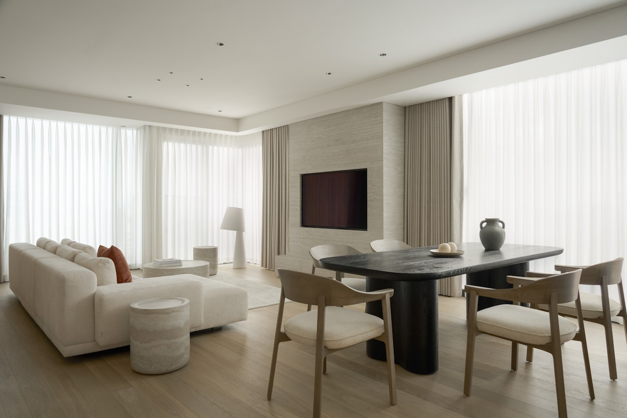 Relaxed luxury in a designer apartment with stunning city views.